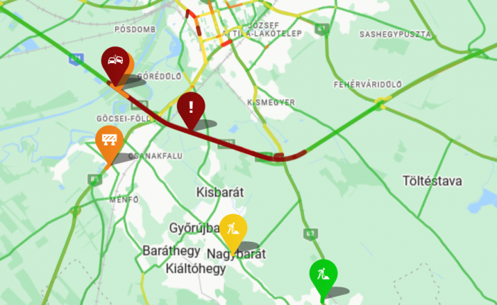A forgalom egy sávon halad. A torlódás meghaladta a 6 kilométert. Aki teheti, válassza az 1-es főutat!- jelentette az Útinform nem sokkal pénteken este kilenc óra előtt.