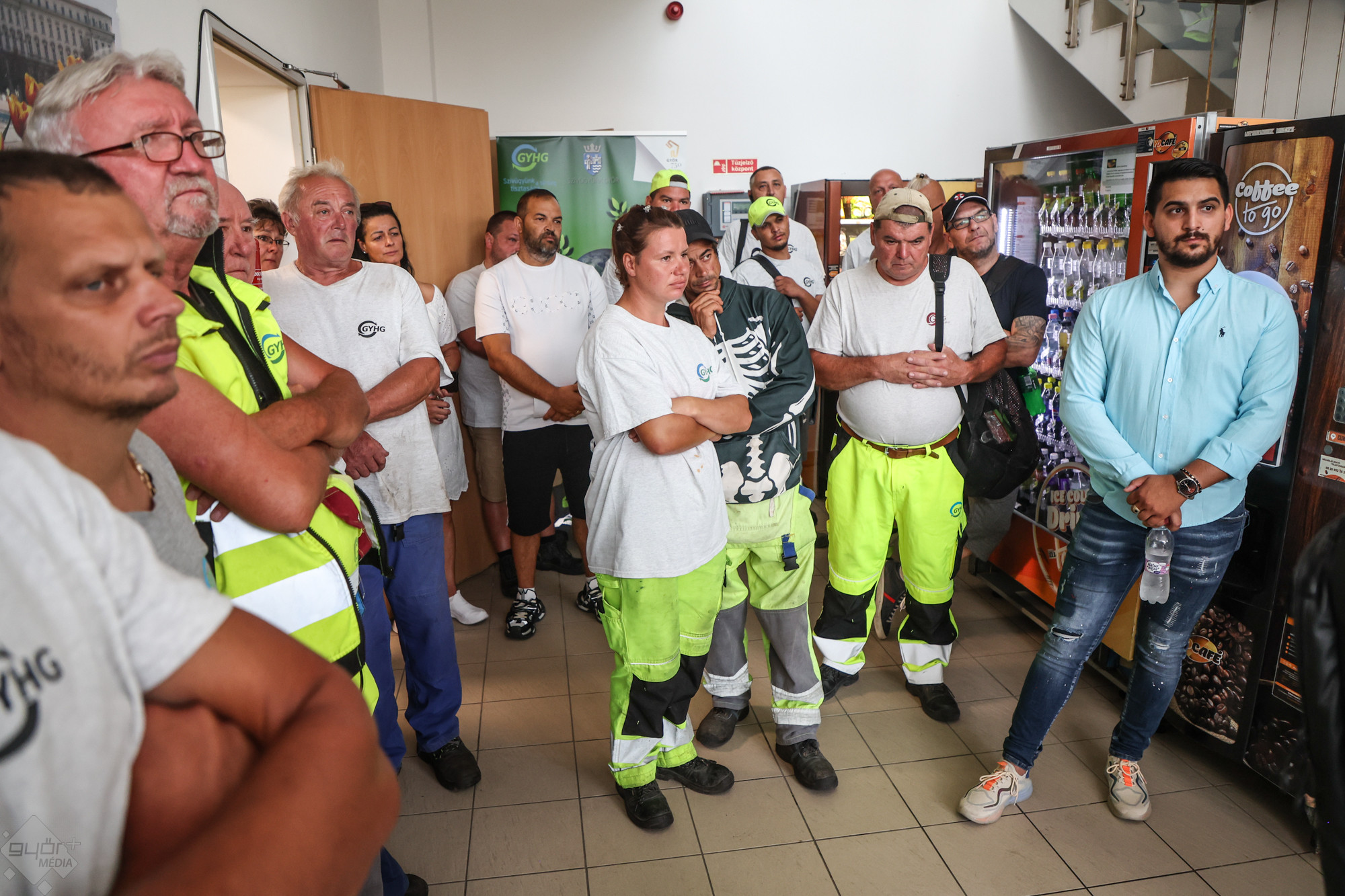 Félhavi jutalmat kaptak a GYHG Győri Hulladékgazdálkodási Nonprofit Kft. dolgozói – ezt jelentette be a kedd hajnali munkásgyűlésen Nagy Csaba, a GYHG ügyvezetője a sashegyi központban.
