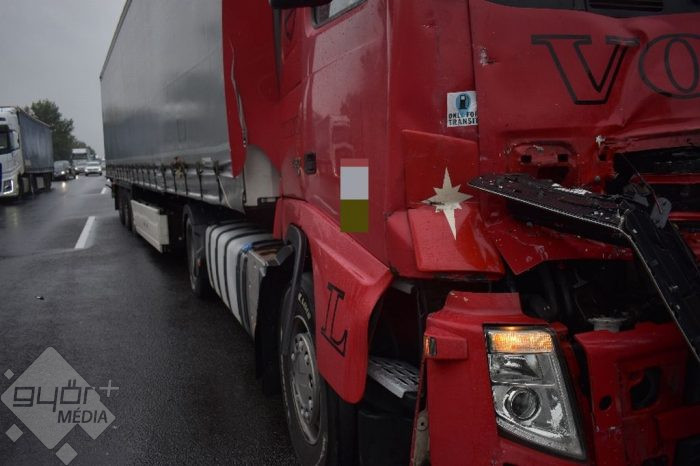 Az M1-es autópályán, Győr térségében, Hegyeshalom felől Budapest irányába közlekedett a külső forgalmi sávban egy kamion vezetője szeptember 22-én 10 óra 13 perckor – írja a police.hu. A kamionos nem tartott kellő követési távolságot az előtte azonos irányban és forgalmi sávban közlekedő, majd fékezve lassító járműszerelvény mögött, és azért, hogy az ütközést elkerülje, a kamionját balra kormányozta.