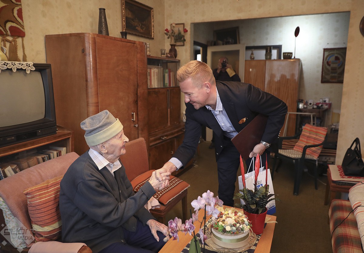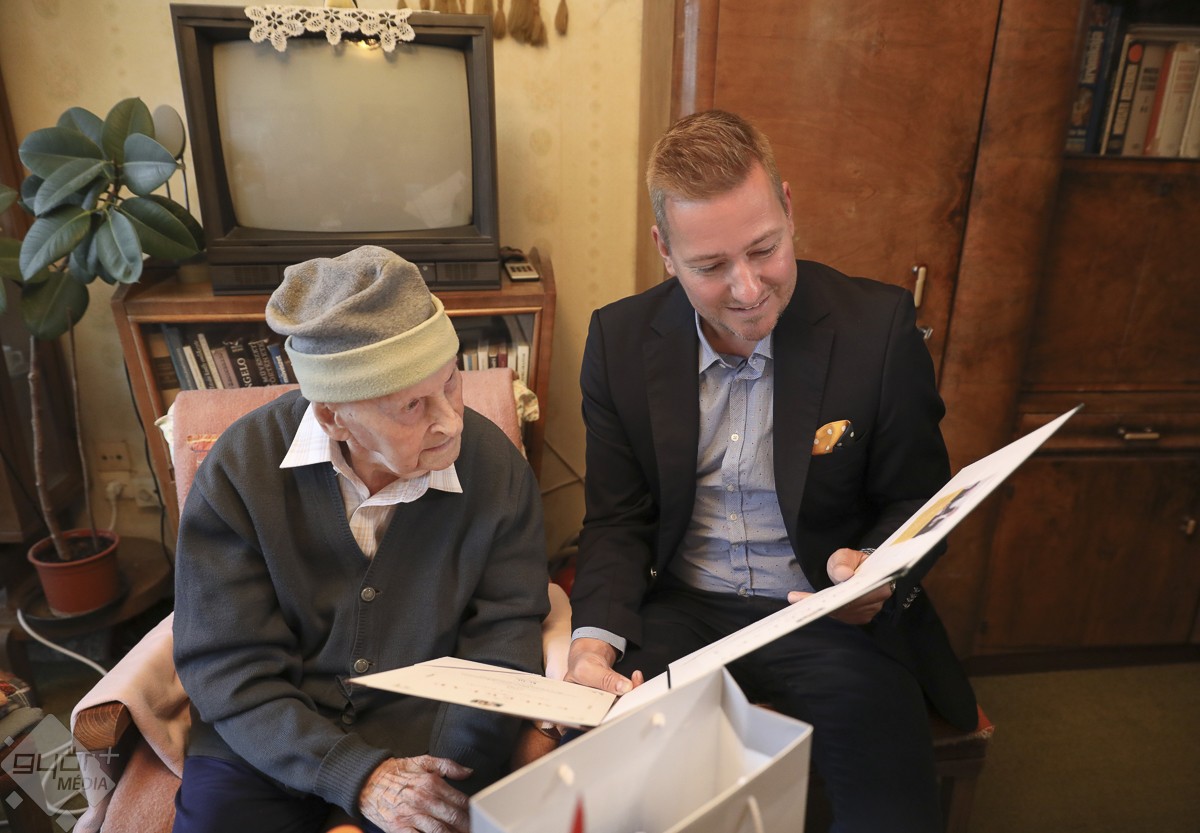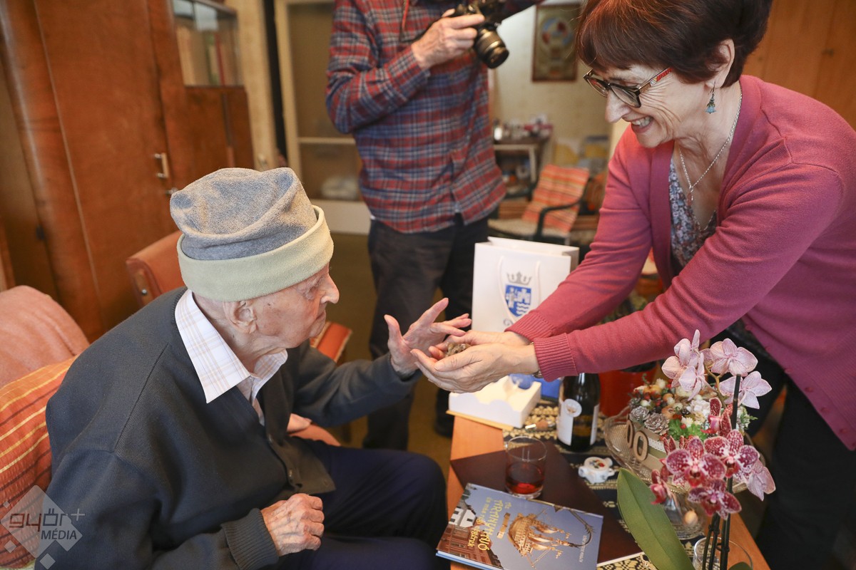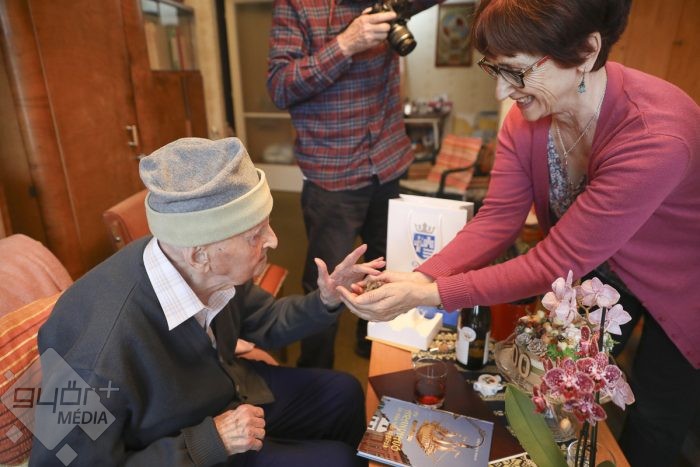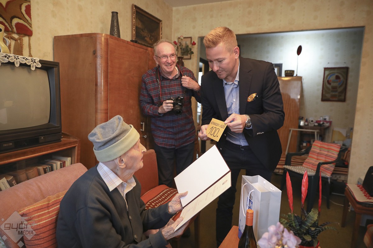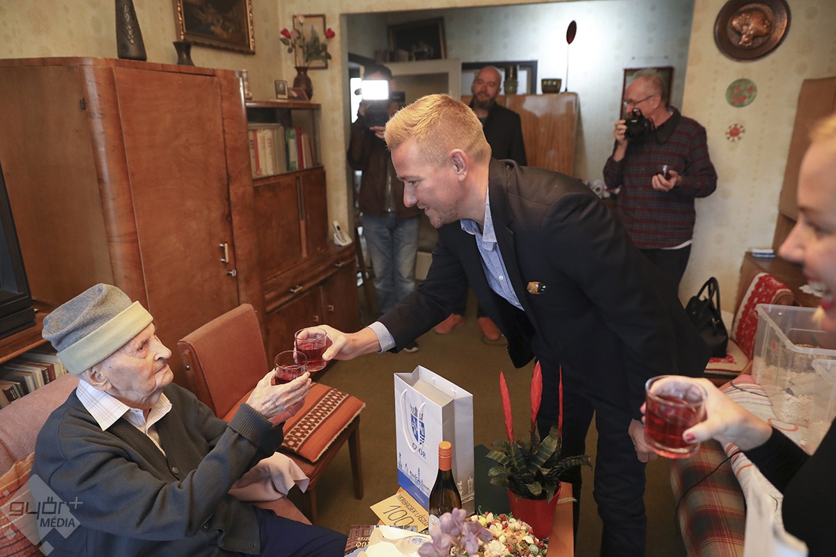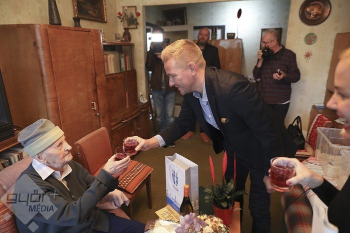 A szép évforduló kapcsán mi is koccinthattunk az ünnepelttel, aki otthonában fogadott bennünket kedden. A köszöntők sorában volt Radnóti Ákos is, a körzet önkormányzati képviselője, aki Orbán Viktor miniszterelnök oklevelét hozta el Laci bácsinak, egy ajándékcsomag kíséretében.