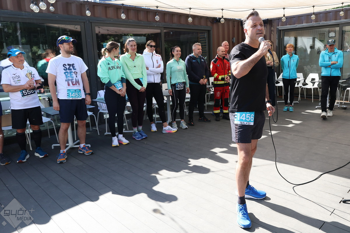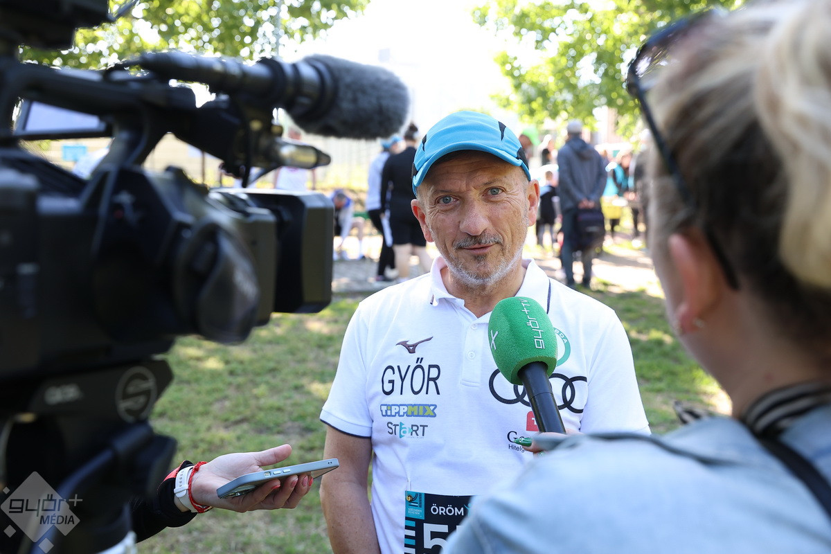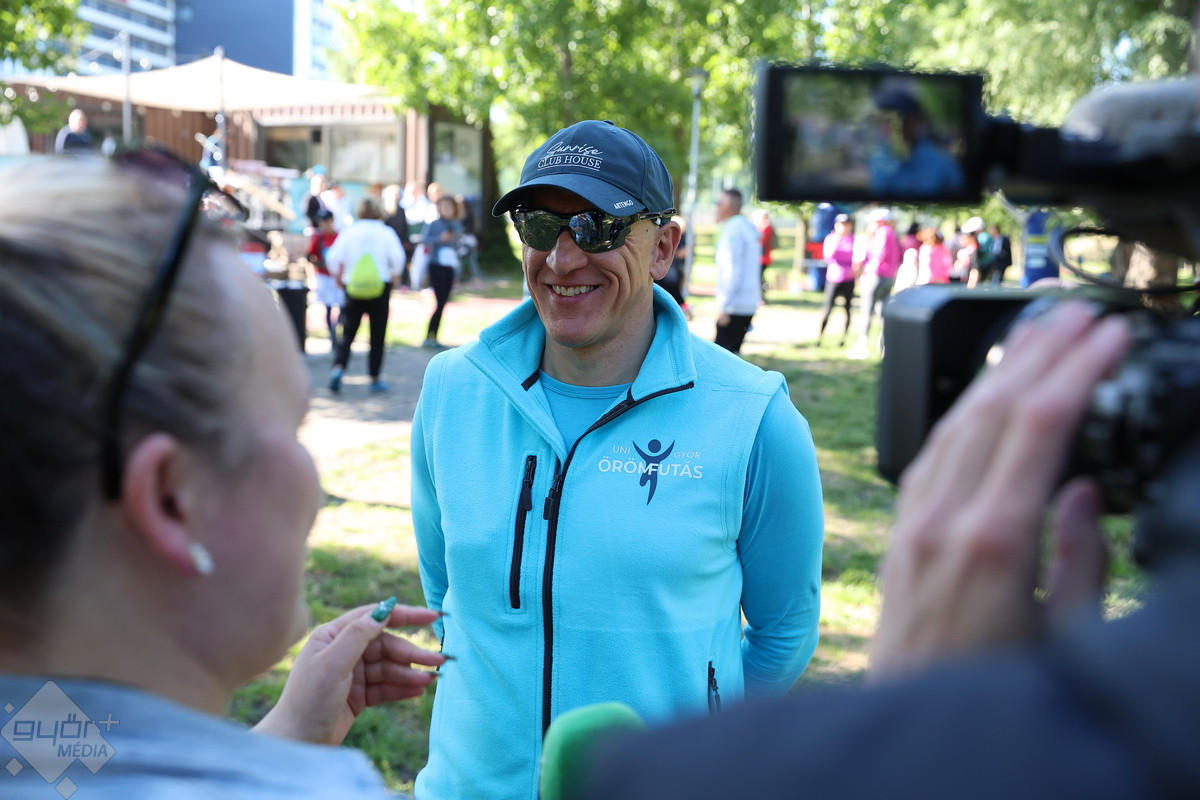A sportolás, rendszeres mozgás fontosságát hangsúlyozta dr. Szálasy László, a Győri Audi ETO KC csapatorvorvosa is, aki az Örömfutás ötvenszeres teljesítője. „Úgy gondolom, nem félni kell, hanem megpróbálni, természetesen leszámítva azokat a konkrét helyzeteket, egészségügyi problémákat, ahol szakmailag kizárható, hogy valaki fusson. De aki nem tud futni, az sétálni is tud. Ha abból indulunk ki, milyen fontos a mozgás, ha valaki eljön, és csak 5 kilométert sétál, mert az ízületei nem bírják, az is sokat tett. Aki viszont csak fél, próbálja ki magát, hiszen itt el lehet indulni öt kilométeren – én is úgy kezdtem a futást, belesétáltam, majd maraton lett a vége. Egy a fontos: az elkötelezettség és az, hogy nem szabad feladni”.