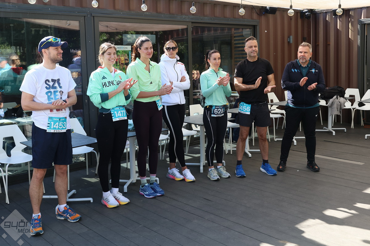 Azon már meg sem lepődünk, hogy Nagy Balázzsal is találkoztunk, hiszen a Győri Nemzeti Színház színművésze szívesen vesz részt a város futóeseményein. „Először Szálasi Laci barátom, a doktor úr szólt, hogy örülne, ha csatlakoznék a kezdeményezéshez. Nyilván tudok róla, mivel folyamatosan futok Győrben és környékén, többször találkoztam szombat délelőttönként a futókkal. Elképesztően jó ötletnek tartom, mert abban hiszek, hogy mindenki mozogjon, mindegy hogy mit, milyen tempóval” – emelte ki Nagy Balázs, aki a rajt előtt még dalra is fakadt a részvevők örömére.