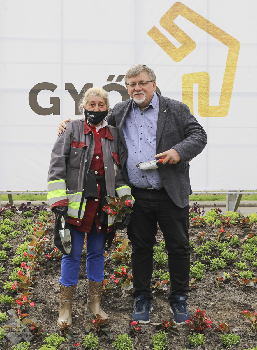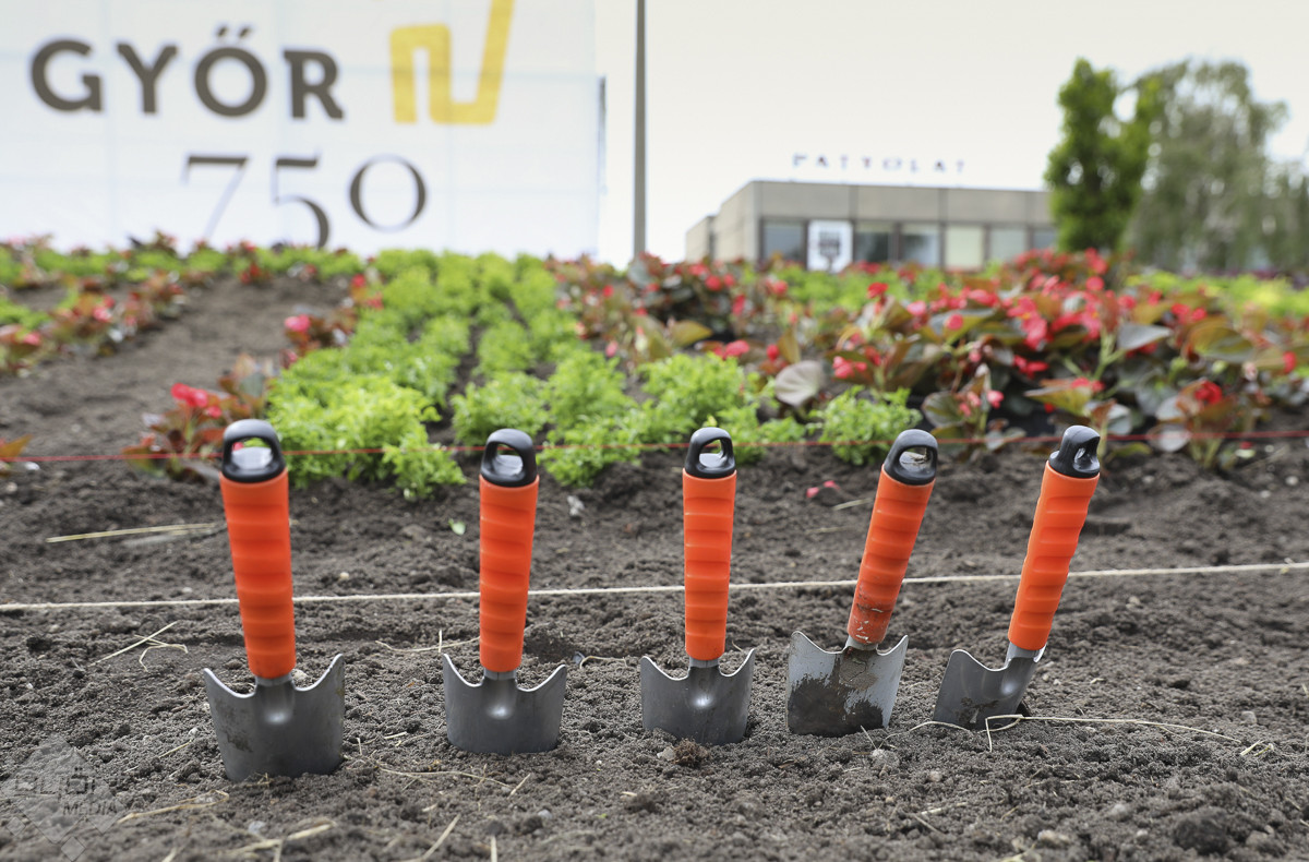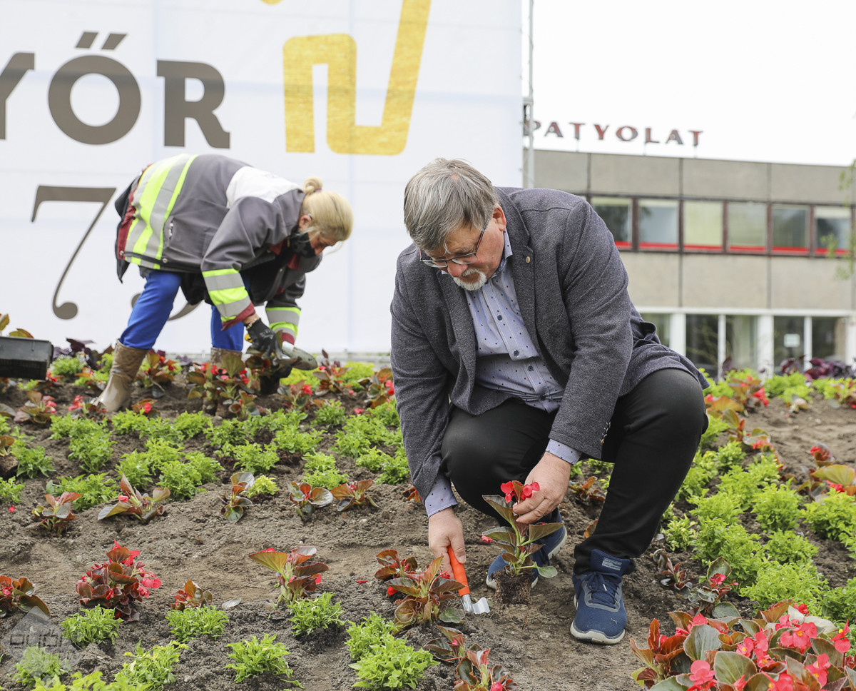 „Fontos év számunkra az idei, amikor Győr királyi várossá válásának 750. évfordulóját ünnepeljük. Ennek tiszteletére az idén a frekventált helyen lévő ágyás virágai is ezt a számot mintázzák.” – mondta a virágok elültetésekor Dr. Dézsi Csaba András. A polgármester hozzátette, zajlik a város virágosítása, amibe a Győr-Szol Zrt. mellett a lakosság is kiveszi a részét. Mint mondta, a meghirdetett lakossági virágosztásra minden eddigit túlszárnyaló igény érkezett. Hozzátette, a járványidőszakban előtérbe került a kertészkedés, a környezetszépítés, amely jó hatással van a lelkünkre.