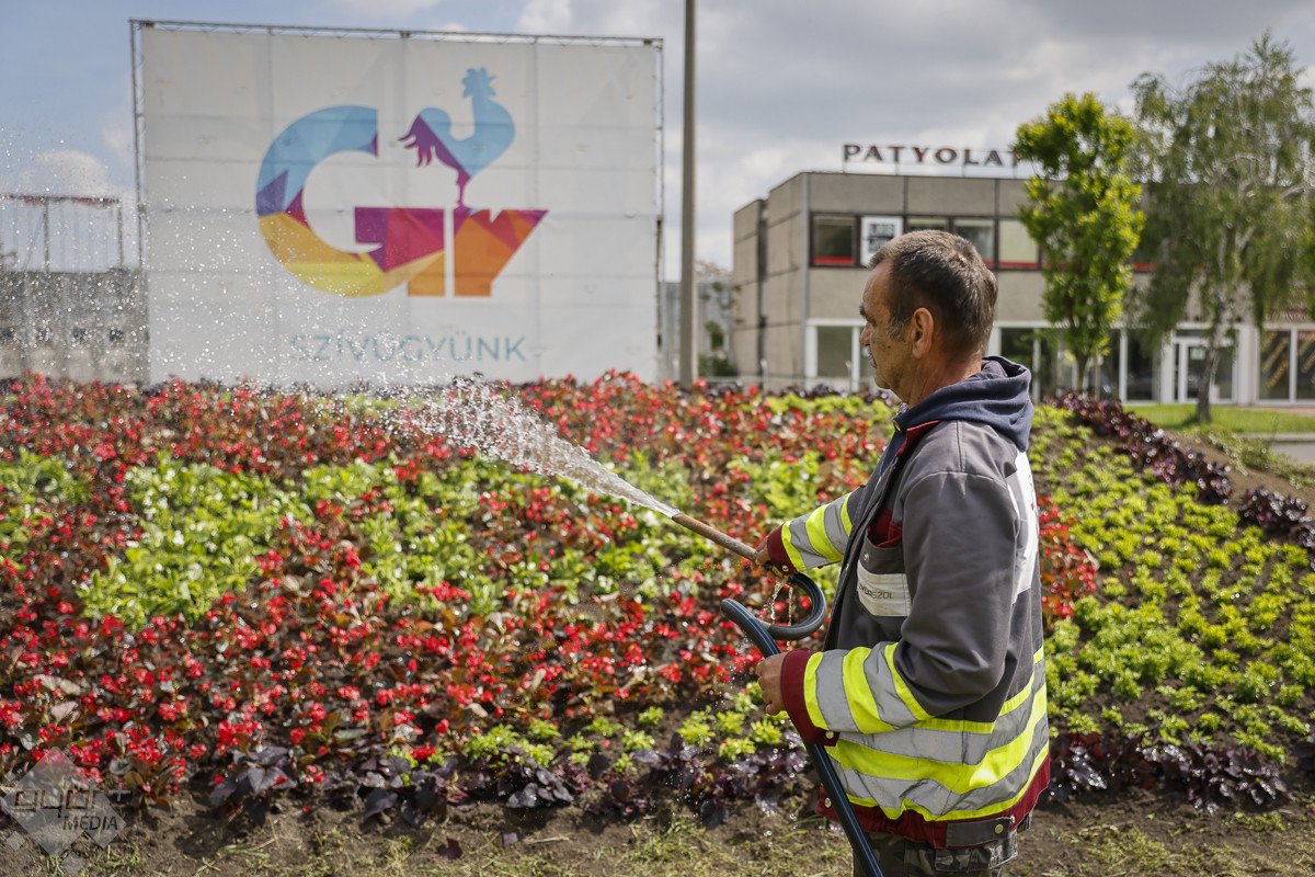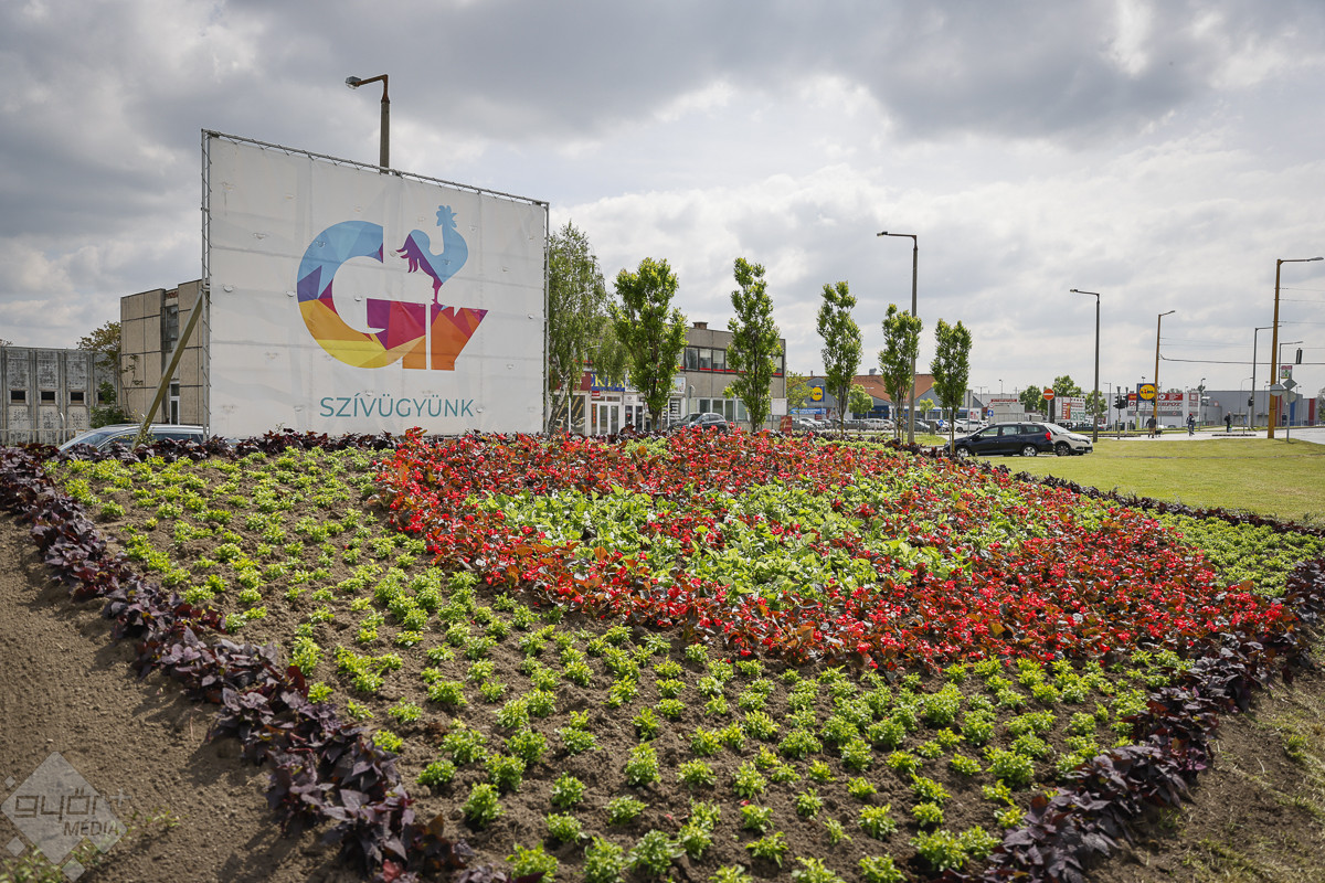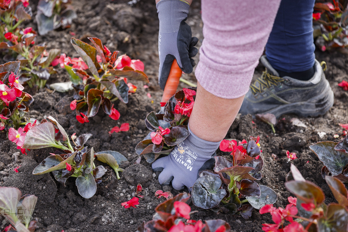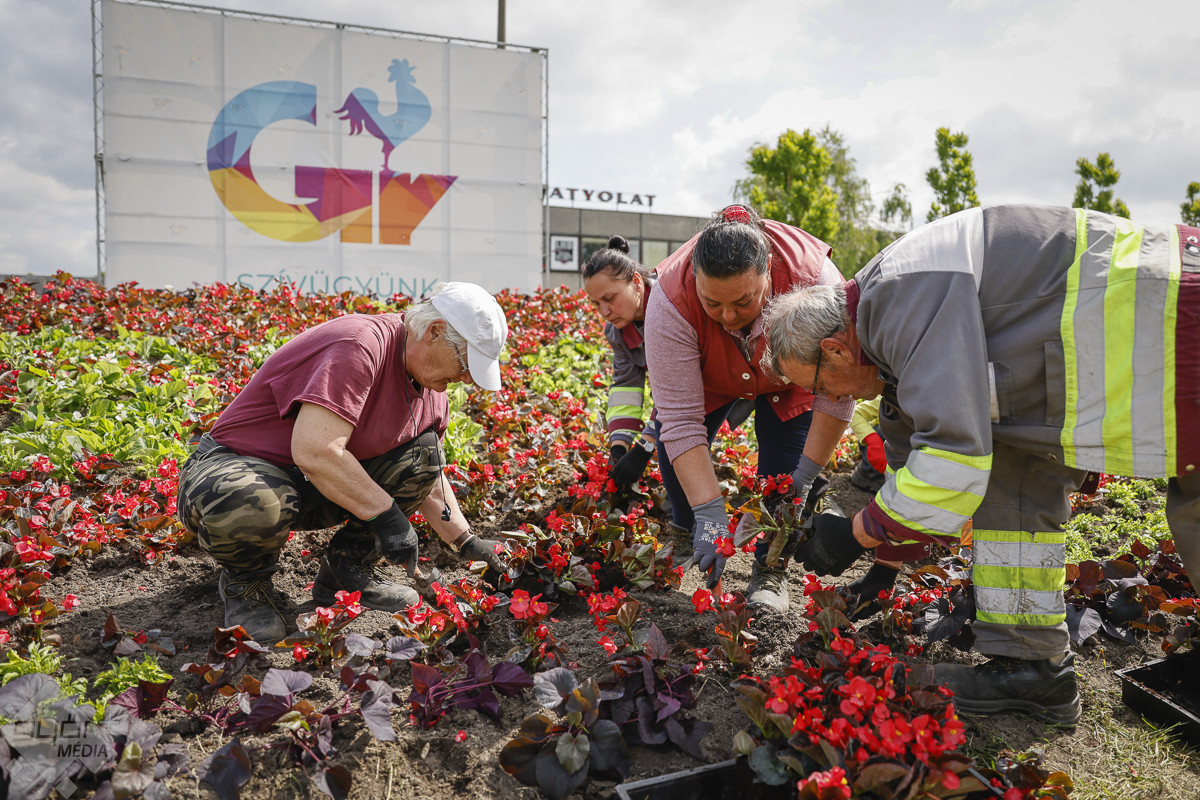 A Mártírok úti ágyásba összesen 400 díszburgonyát 1400 piros és fehér begóniát, és 1200 darab papagájfüvet ültettek el hétfőn a Győr-Szol munkatársai.