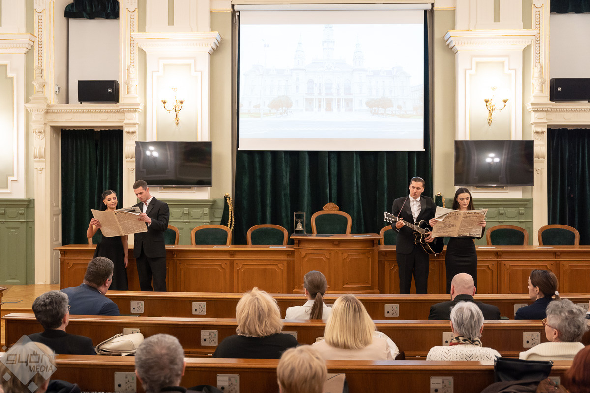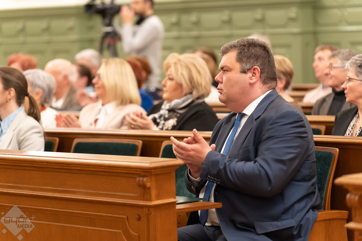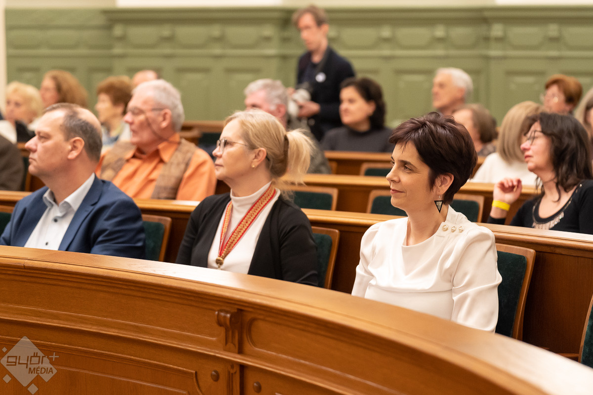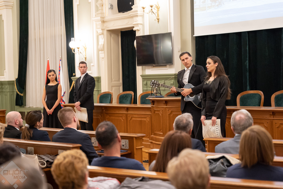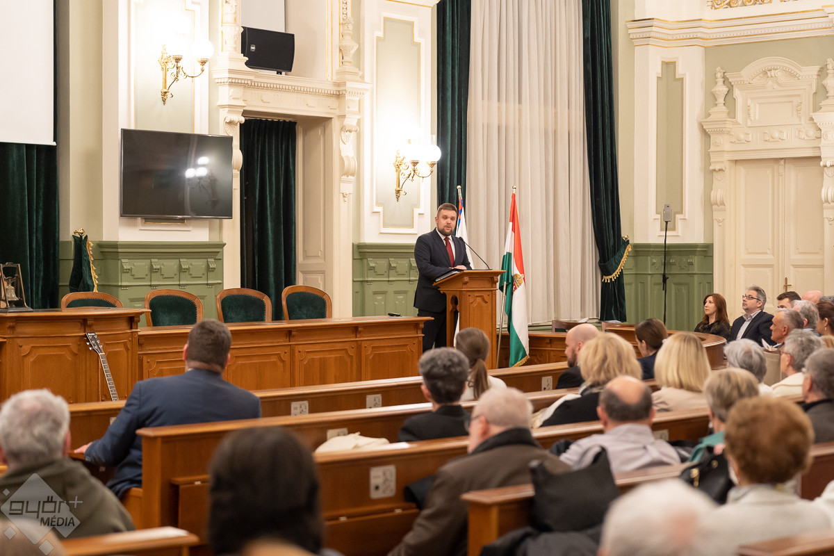 Borsi Róbert, kulturális területet felügyelő tanácsnok szólt arról, hogy a Városháza nem csupán Győr dísze, hanem identitásunk szimbóluma is, amely generációk óta őrzi és tükrözi közösségünk értékeit. Megépítése egy olyan korszakot idéz fel, amely a polgári öntudat, a közösségépítés és a fejlődés jegyében telt. 1900-ban, amikor a Városháza kapu megnyíltak olyan időszak kezdődött Győr életében, amelyben az ország ipari és kulturális központjai közé emelkedett. Az épület, mely a polgári értékek megtestesítője, ma is él, hiszen az itt dolgozók és a győri polgárok nap mint nap hozzáteszik saját történeteiket. Az itt születő döntések formálják városunkat és biztosítják, hogy értékeink fennmaradjanak a következő generációk számára is.