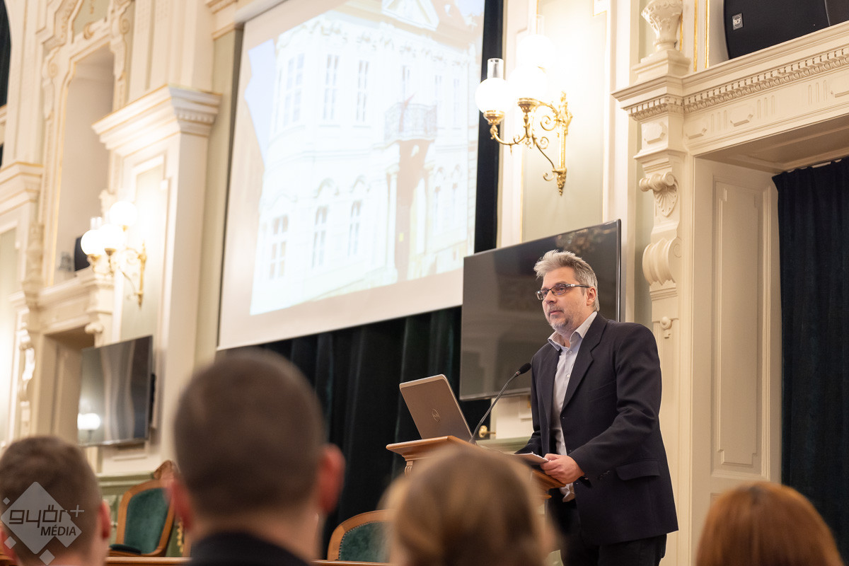 S köszöntők után az épület történetéről Bagi Zoltán Péter, a városi levéltár igazgatója tartott előadást.