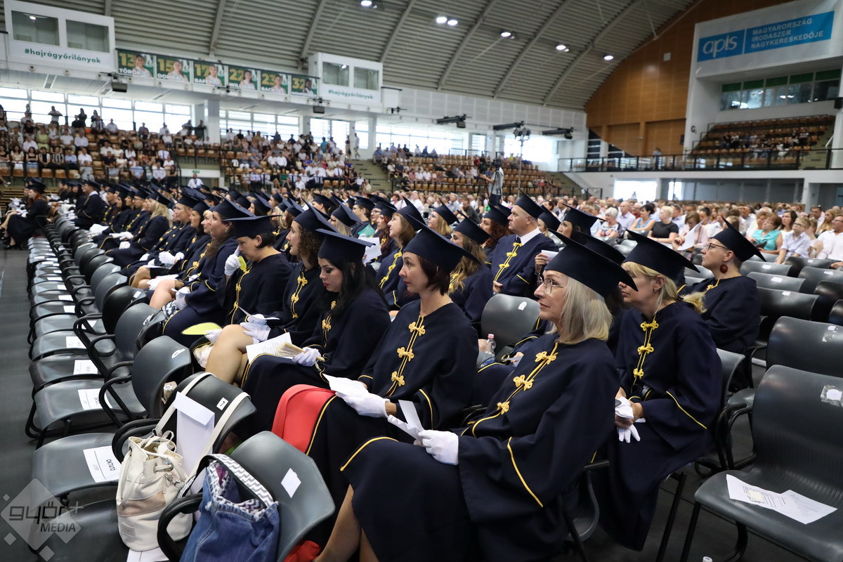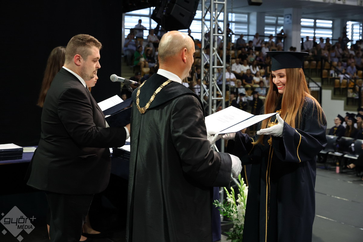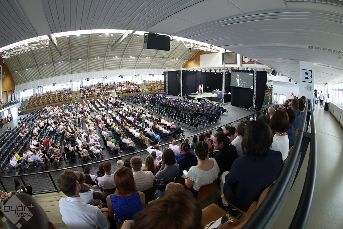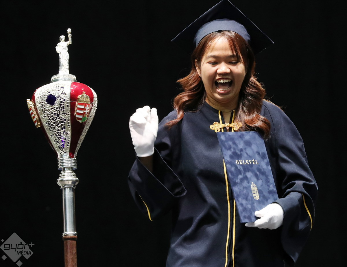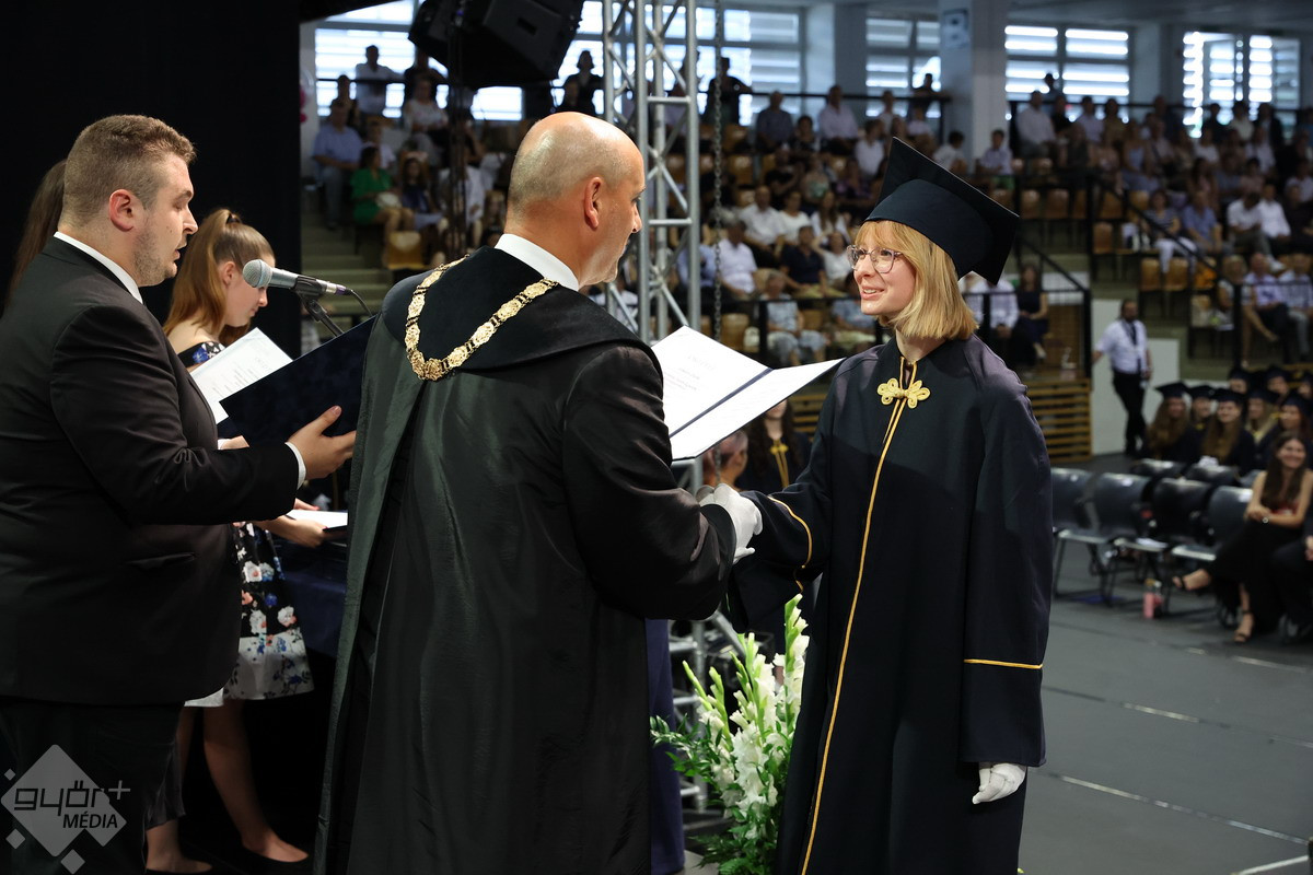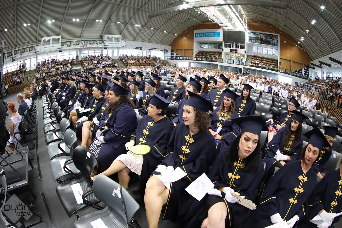 Folytatódott a diplomaosztó dömping a Széchenyi István Egyetemen, csütörtök délelőtt az Apáczai Csere János Kar, tanító, és gyógypedagógia képzésein végzett több száz hallgató vehette át jól megérdemelt tanúsítványát.