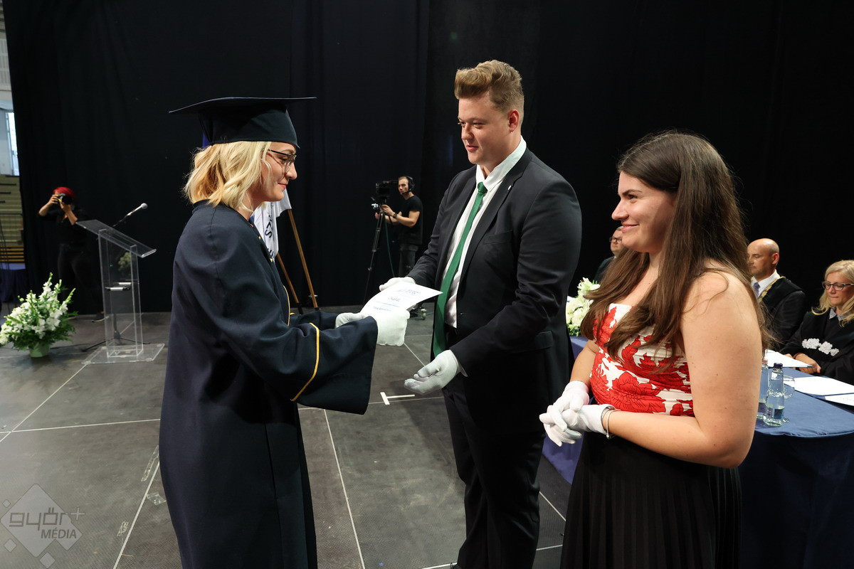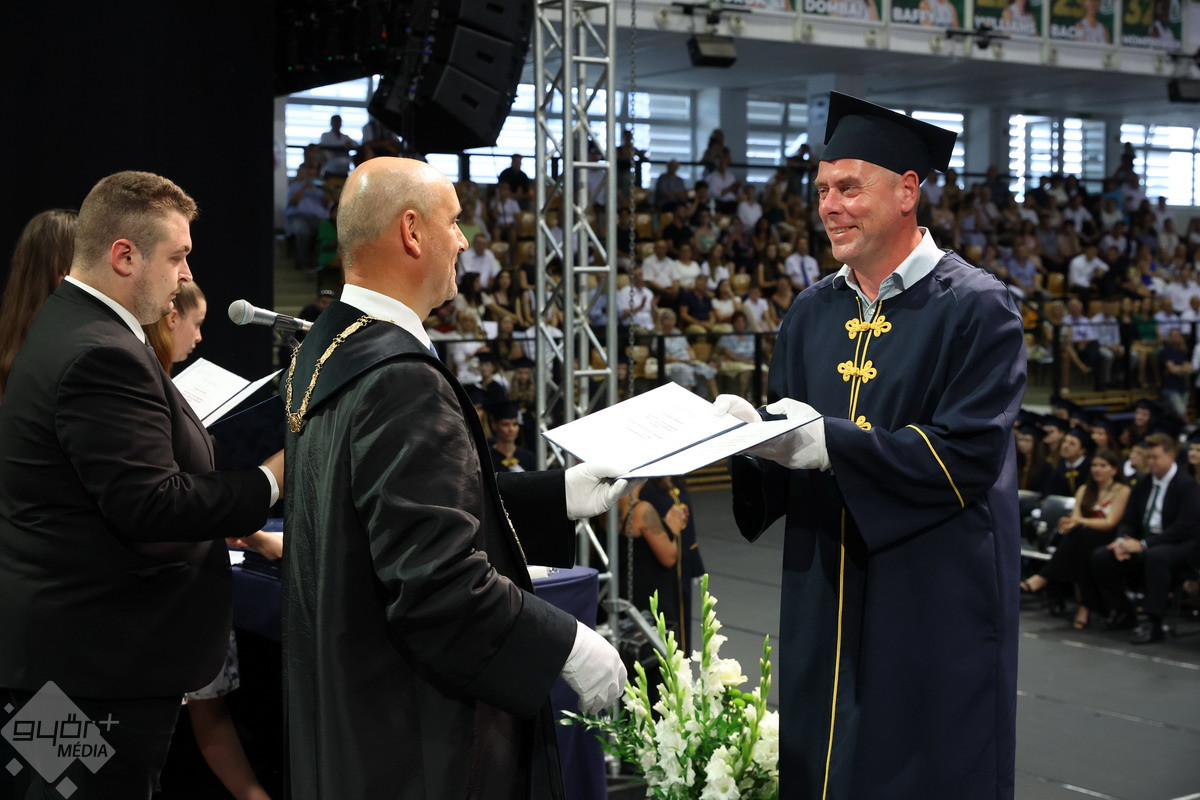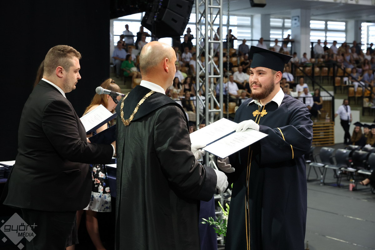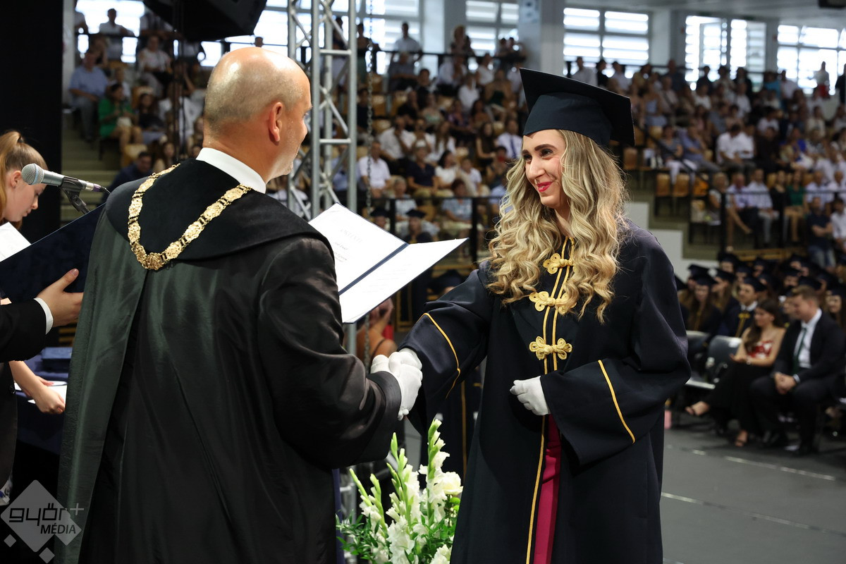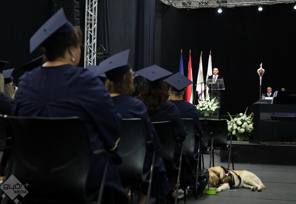 Folytatódott a diplomaosztó dömping a Széchenyi István Egyetemen, csütörtök délelőtt az Apáczai Csere János Kar, tanító, és gyógypedagógia képzésein végzett több száz hallgató vehette át jól megérdemelt tanúsítványát.