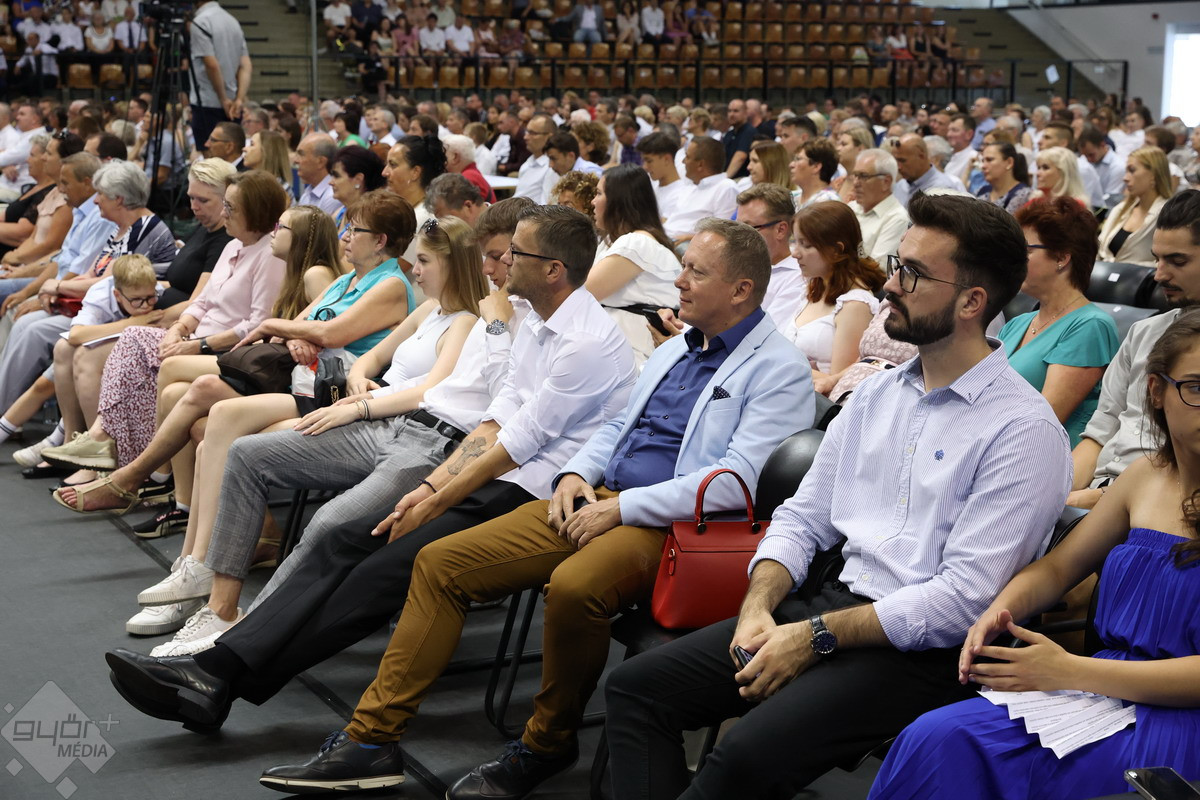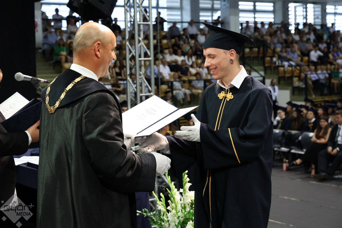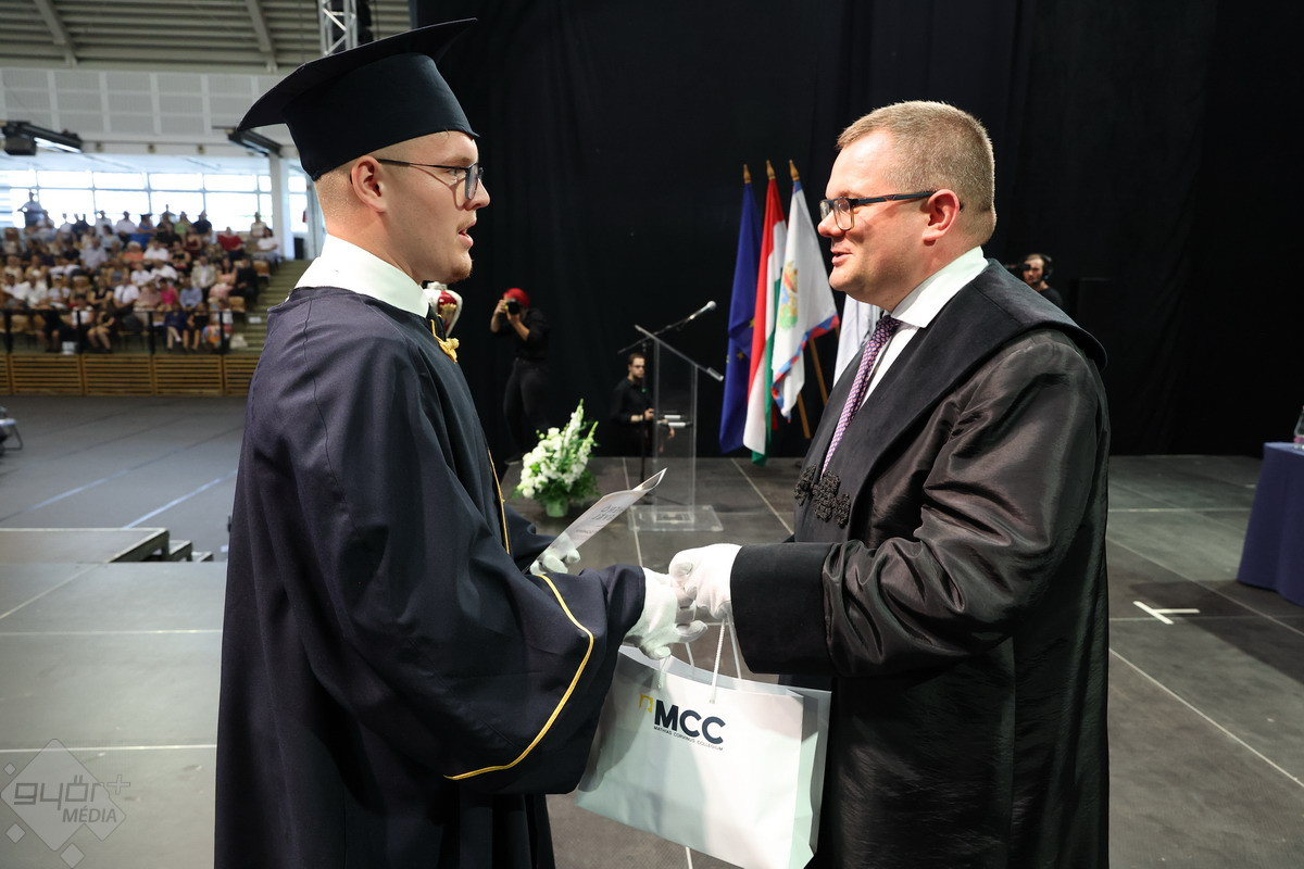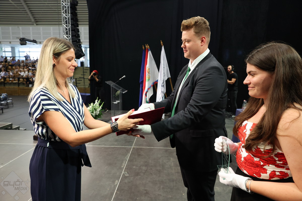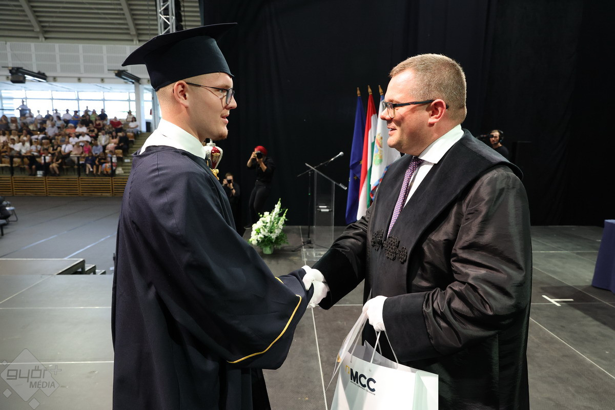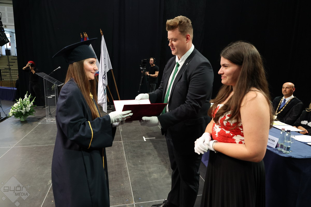 Folytatódott a diplomaosztó dömping a Széchenyi István Egyetemen, csütörtök délelőtt az Apáczai Csere János Kar, tanító, és gyógypedagógia képzésein végzett több száz hallgató vehette át jól megérdemelt tanúsítványát.