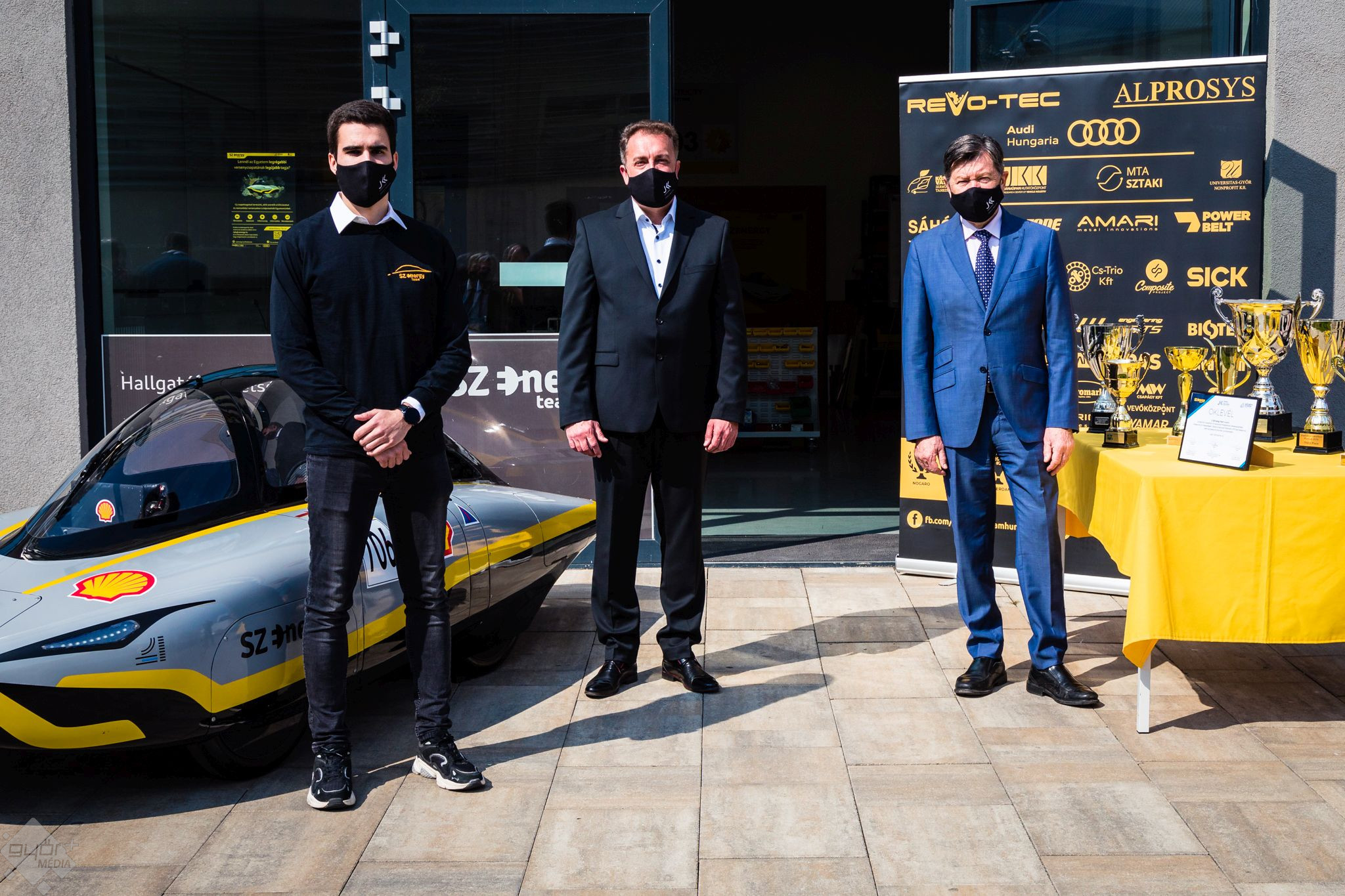 A SZEnergy tagjainak dr. Bokor József professzor, a Széchenyi István Egyetem Járműipari Kutatóközpontjának elnöke és Simon Róbert Balázs győri országgyűlési képviselő személyesen gratulált az egyedülálló teljesítményhez.