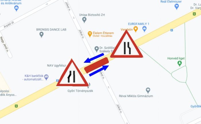 Kedd reggeltől csatorna javítás miatt lezárják a két belső sávot Győrben, a Szent István úton, a Jókai utcai csomópontnál.