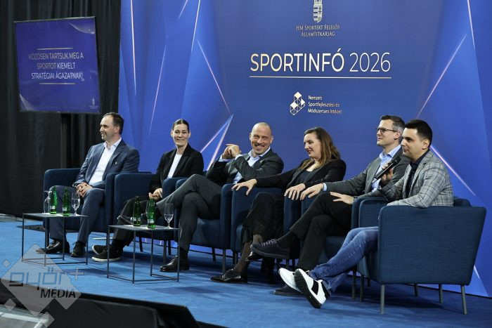 Sportinfó 2026 fórum résztvevői Dr. Schmidt Ádám a Honvédelmi Minisztérium sportért felelős államtitkár, Dr. Baji Balázs a Nemzeti Sportfejlesztési és Módszertani Intézet főigazgatója, Hosszú Katinka háromszoros olimpiai bajnok úszó, Görbicz Anita magyar kézilabdázás egyik ikonja, a Győri Audi ETO KC legendája és Barcza Attila országgyűlési képviselő voltak.