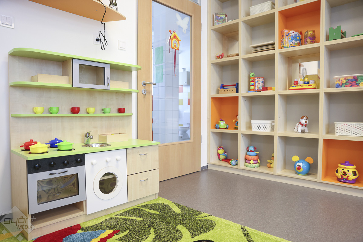 Kicsi gyermekek gyurmáznak az alacsony asztalkáknál, mások elmélyülten játszanak a színes szőnyegen. Jó ránézni a modern csoportszobákra, az apró mosdókra, a hangulatos sószobára a megújult Kassák Lajos utcai bölcsődében. Látszik, hogy minden a helyén van.