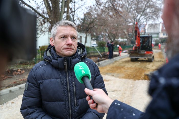 Munkaterület bejárás zajlott péntek reggel a szállingózó hóban. A polgármester, az országgyűlési képviselő, a körzet képviselői és a Győr-Szol első embere jó alaposan szemügyre vették, hogy halad a munka a Móra tér orvosi rendelő felőli oldalán.
