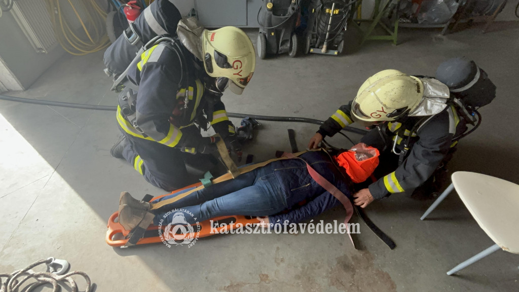 A győri tűzoltók két gépjárműfecskendővel, egy vízszállító és egy létraszerrel, valamint a füsteltávolító ventilátort szállító tehergépjárművel érkeztek ki a tűzesethez. Az egységek felkutatták és hordágyon kivitték az épületből a sérültet, majd eloltották a tüzet és a ventilátor segítségével eltávolították a füstöt a műhelyből.