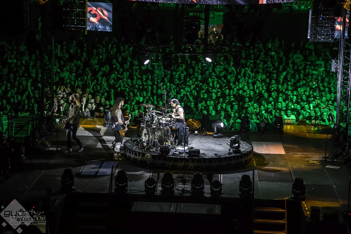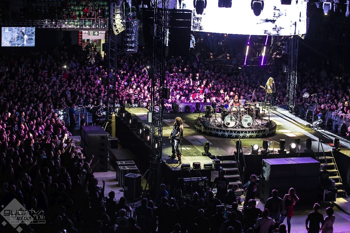 A körszínpados megoldást egyébként a magyar zenekarok közül először a Tankcsapda próbálta ki, s nekik, na meg a közönségnek is bejött, kézenfekvő volt, hogy a vidéki nagyvárosban is így lépjenek fel. A nagyon komoly technikát és felkészültséget igénylő produkció igényességét mutatja, hogy a színpadon többek között 8 mikrofon, kör alakú ledfal, a küzdőtéren pedig 4 óriási kivetítő található. Fejes professzionális és csodaszép TAMA dobszerkója szinte állandóan körbe forog, ami külön pozitívum, hiszen így a hangszert és Tomi játékát is bőven megcsodálhatják a hangszer és a rockdobolás iránt érdeklődők. Lukács Laci és Sidi pedig bejárja az egész színpadot, minden oldalnak énekelnek, mindenki felé fordulnak.