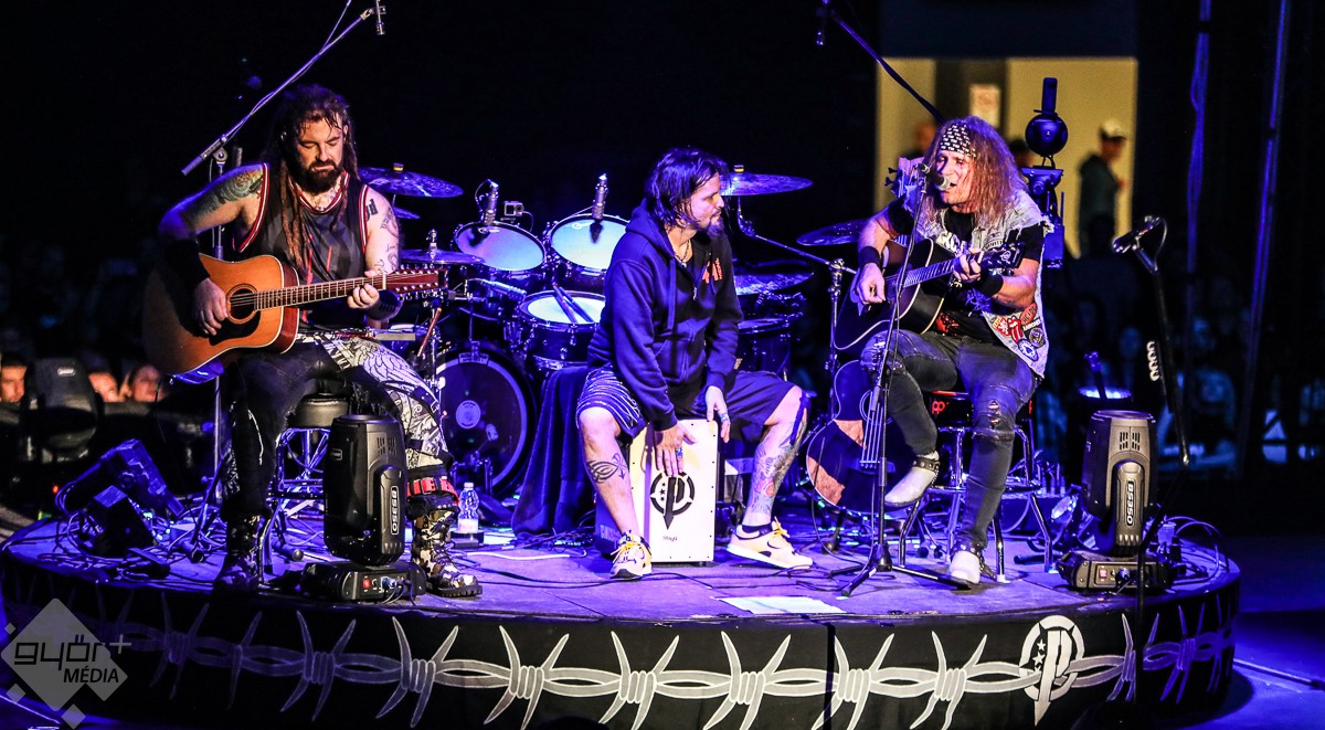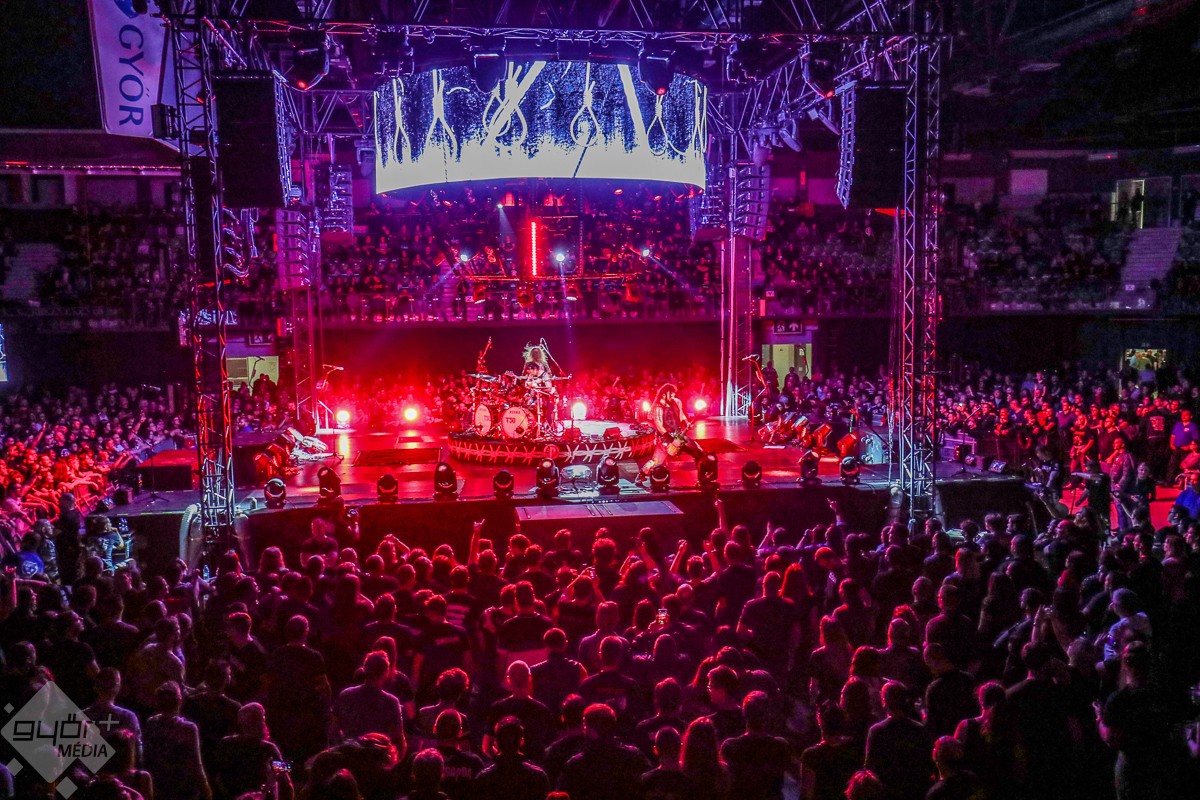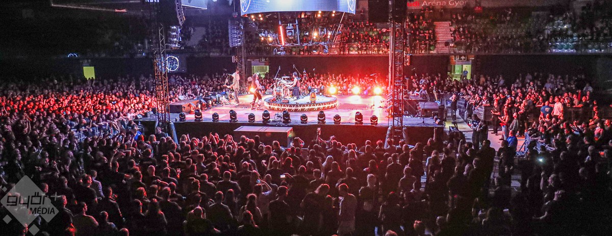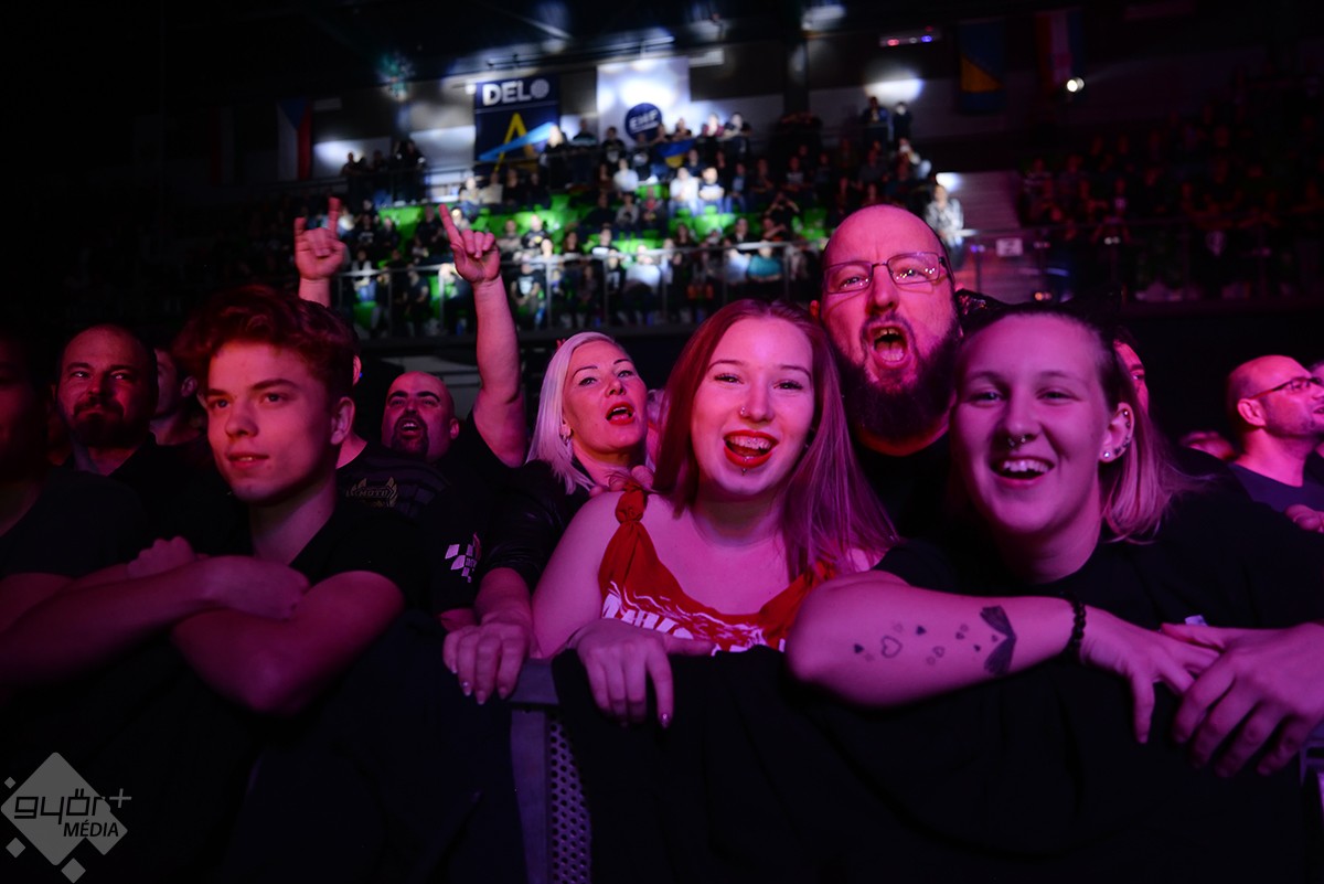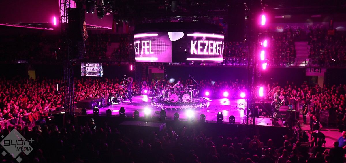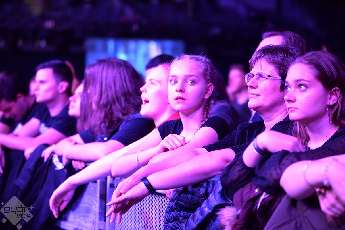 A szünetet egy videós bejátszással oldotta meg a zenekar, s ebben is, na meg Lukács Lacitól is elhangzott hogy rendkívül örülnek annak, hogy itt Győrben, a világ legjobb kézilabdacsapatának otthonában léphetnek fel. Fejes emlékezett még az egykori Ifiházra is, ahol talán még a csillárokon is lógtak az emberek, ha fellépet egy-egy nívósabb zenekar.
