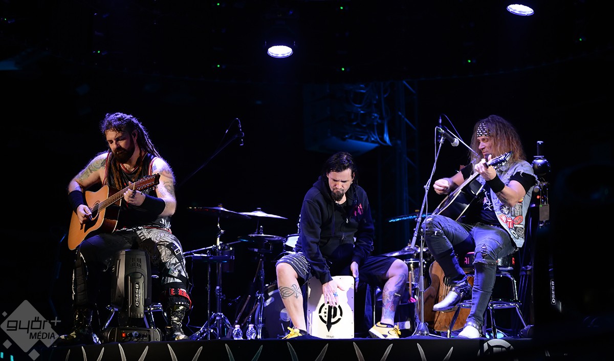 Az akusztikus blokk is jól sikerült, a közönség vette a lapot, leginkább az „Adjon az ég” új köntösbe öltöztetésénél. A „Szevasz Öcsém” is 2019-es nóta, könnyedebb rock, nyári bulizós hangulattal és Tankcsapdás pimaszsággal. Persze nem hiányozhatott a „Mennyország tourist” amit teli torokból zengett az egész Aréna, ahogy a „Köpök rátok” mára már ikonikussá vált őszinte vallomás-dalt is. A „Világ posztol” roppant elgondolkoztató, s bár talán úgy érezhetjük, a fiatalabb korosztálynak szól, minden „telefonhoz-ragadt” embernek tanulságos lehet.