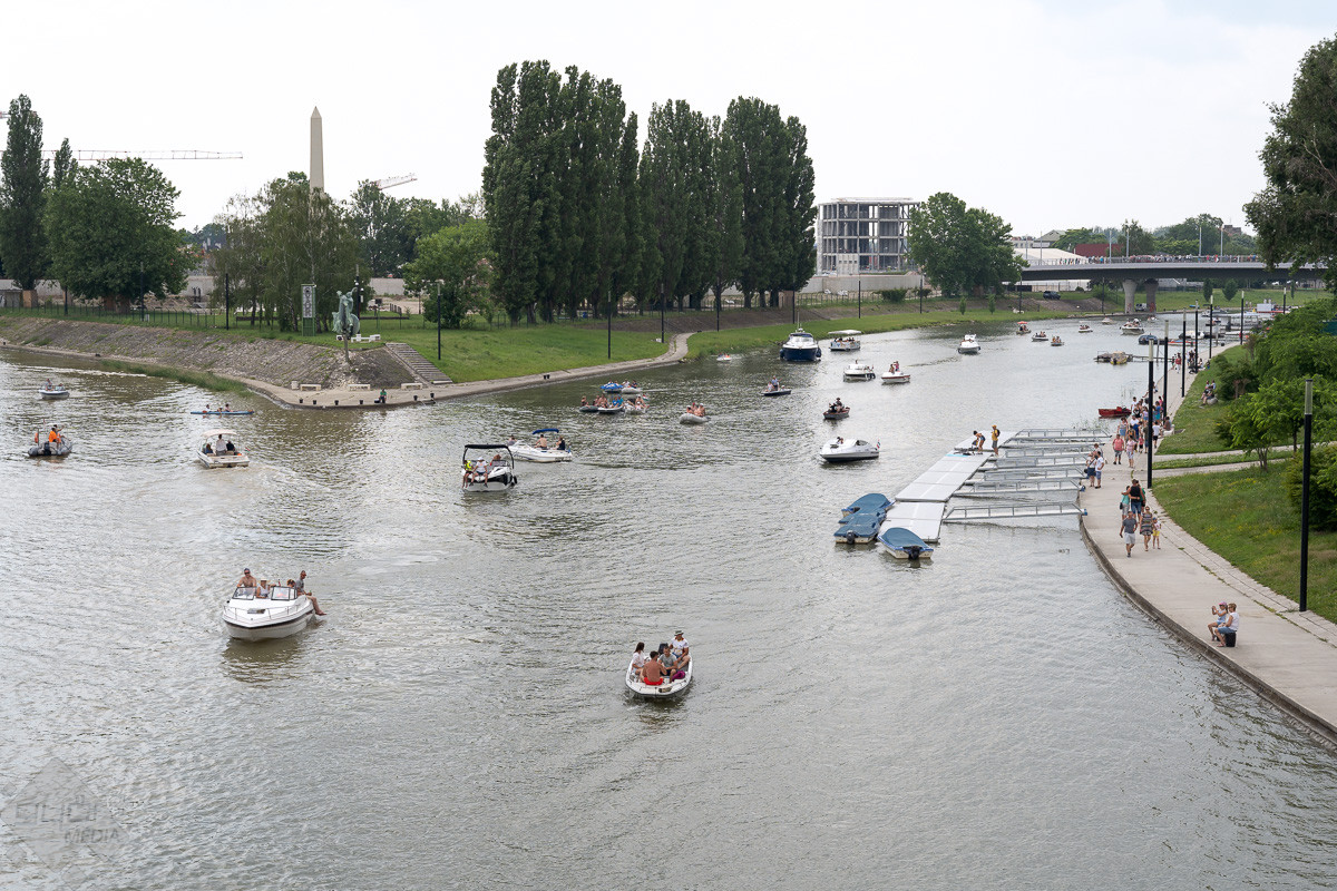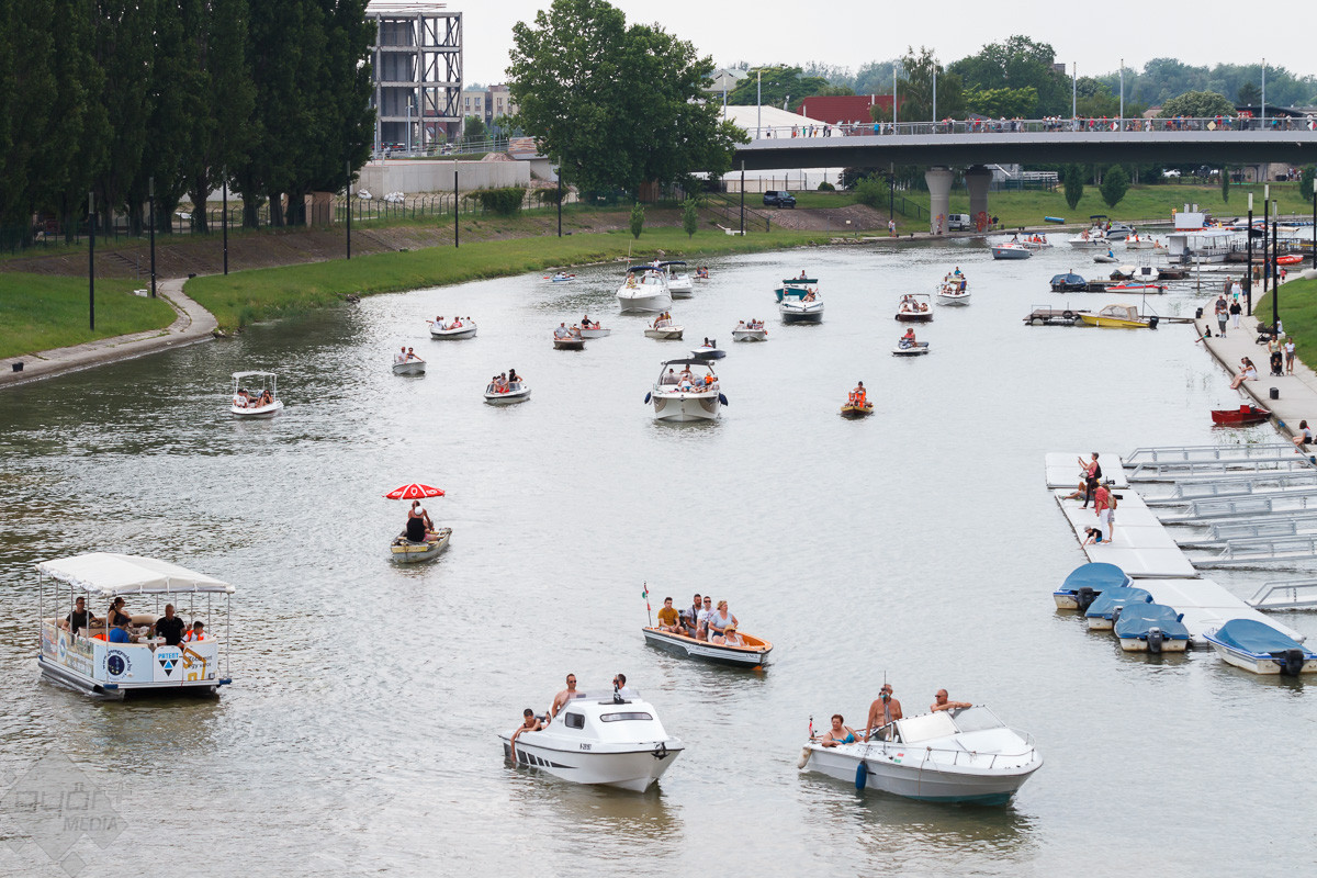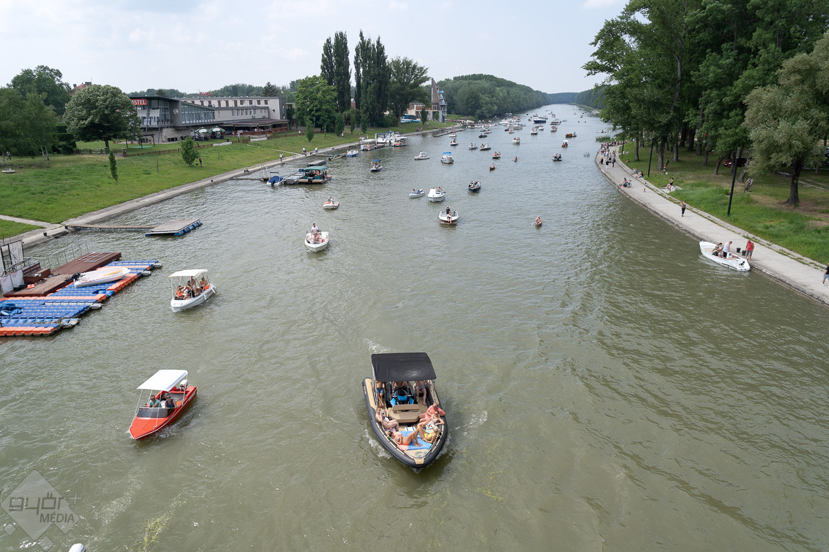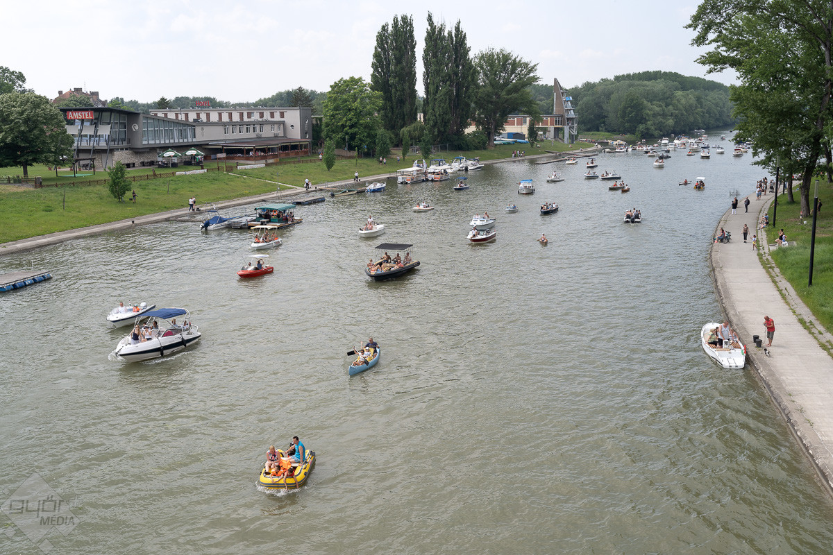 A folyók városához méltó módon nyitották meg a nyári szezont a győri és Győr környéki hajósok. Az Aranypartról induló látványos felvonulás során a résztvevők megkerülték a Radó szigetet, majd az Iparcsatornánál fordulva a Szúnyogszigetet is, ahonnan aztán visszahajóztak a kiindulási pontra. Rengetegen voltak kíváncsiak az eseményre, a sokaság a partról és az útvonalat átszelő hidakról is követte a nem minden napi menetet.