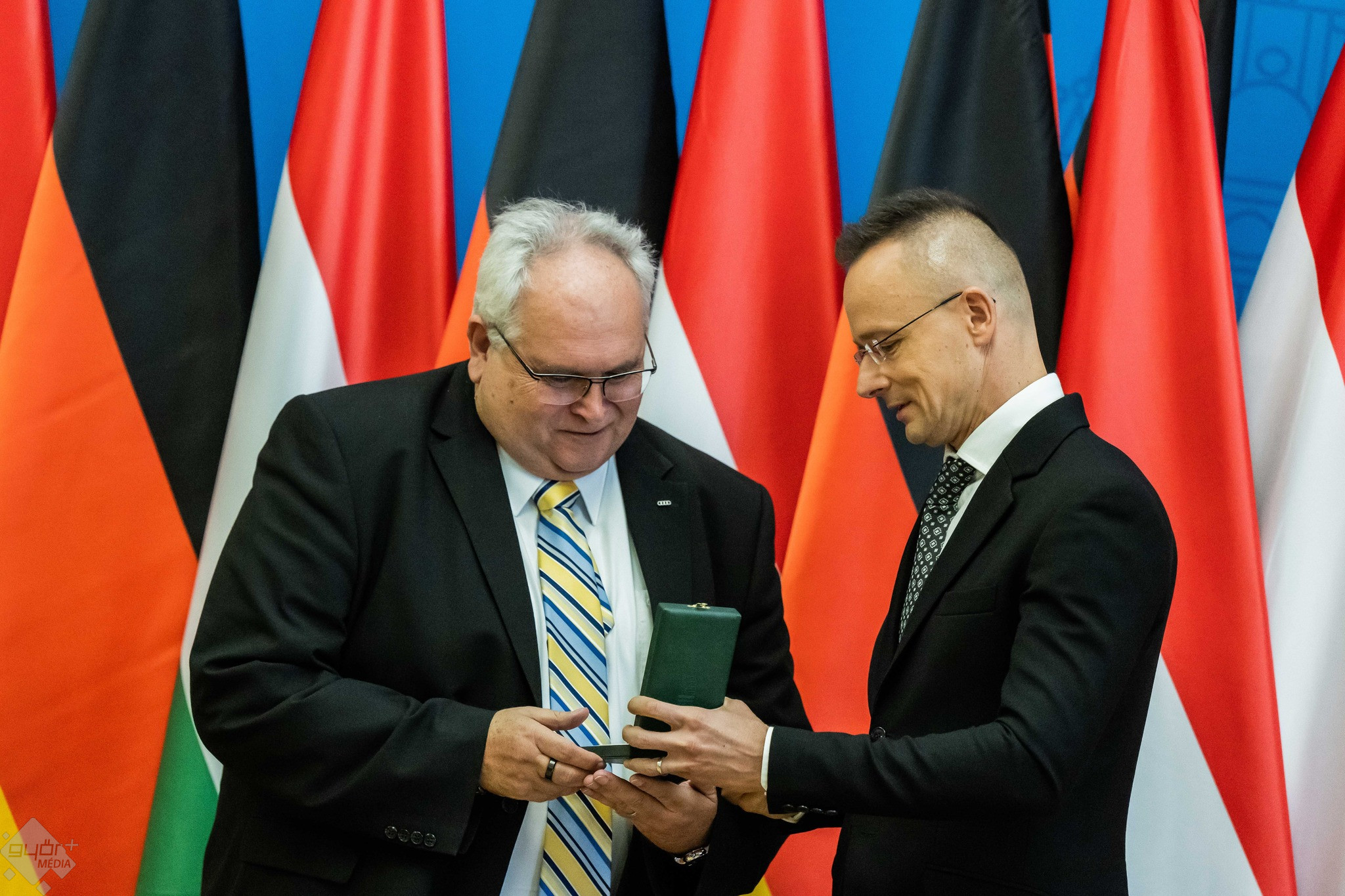 A Külgazdasági és Külügyminisztérium közleménye szerint a tárcavezető átadta a Magyar Érdemrend lovagkeresztjét az Audi Hungaria Zrt. igazgatósági elnökének a vállalat győri tevékenységének fejlesztése érdekében végzett munkája elismeréseként, továbbá a gazdaság és a felsőoktatás kapcsolatának elmélyítésében és a magyar-német gazdasági viszony erősítésében betöltött szerepe miatt is méltatta Alfons Dintnert.