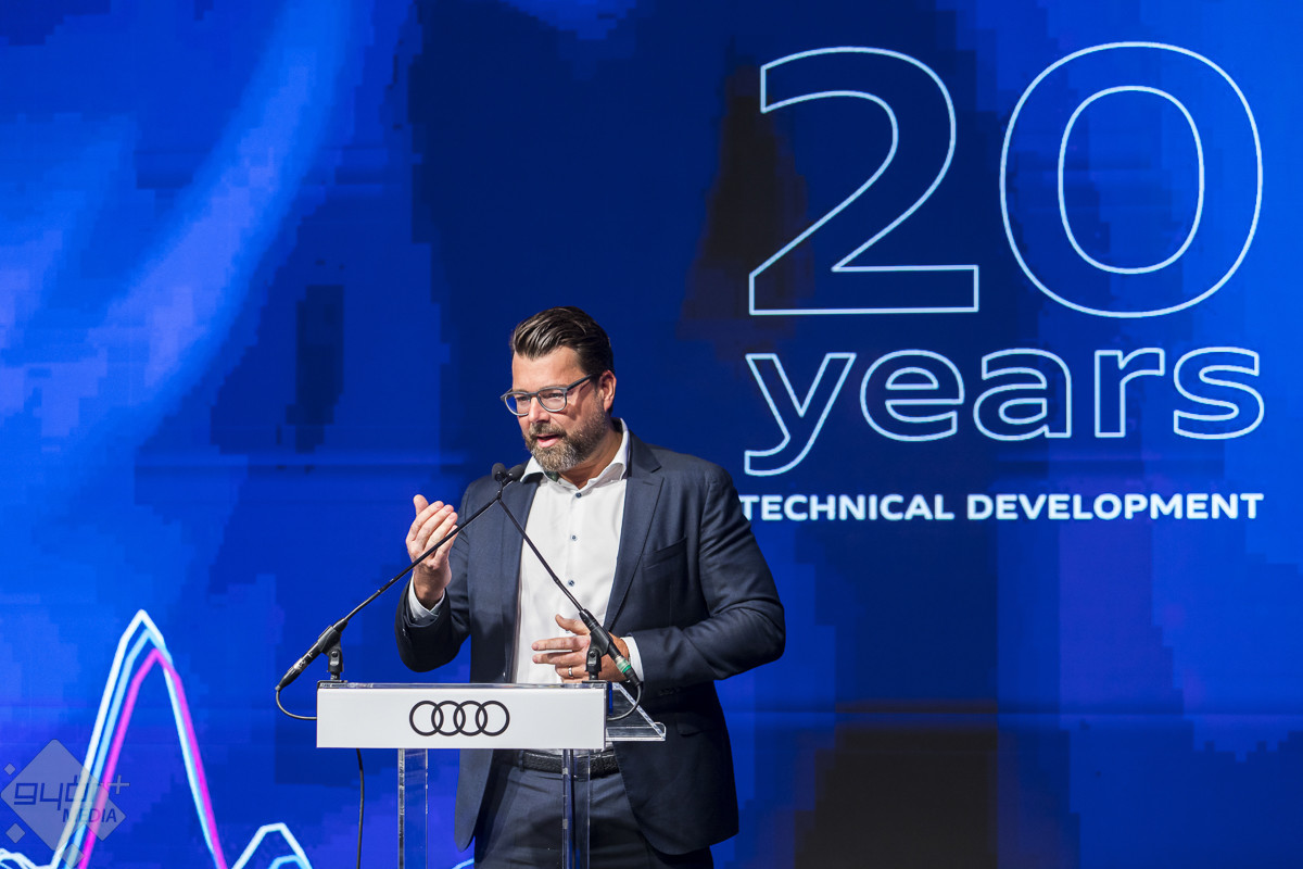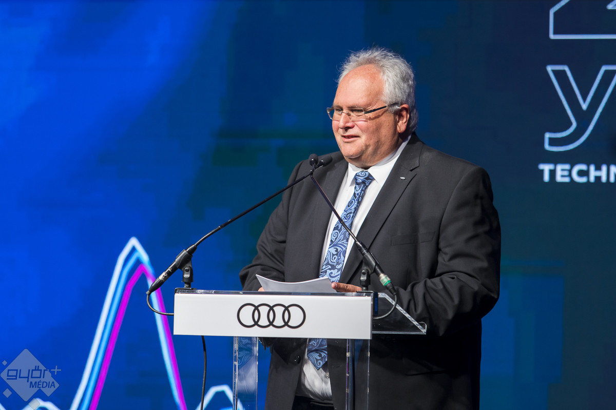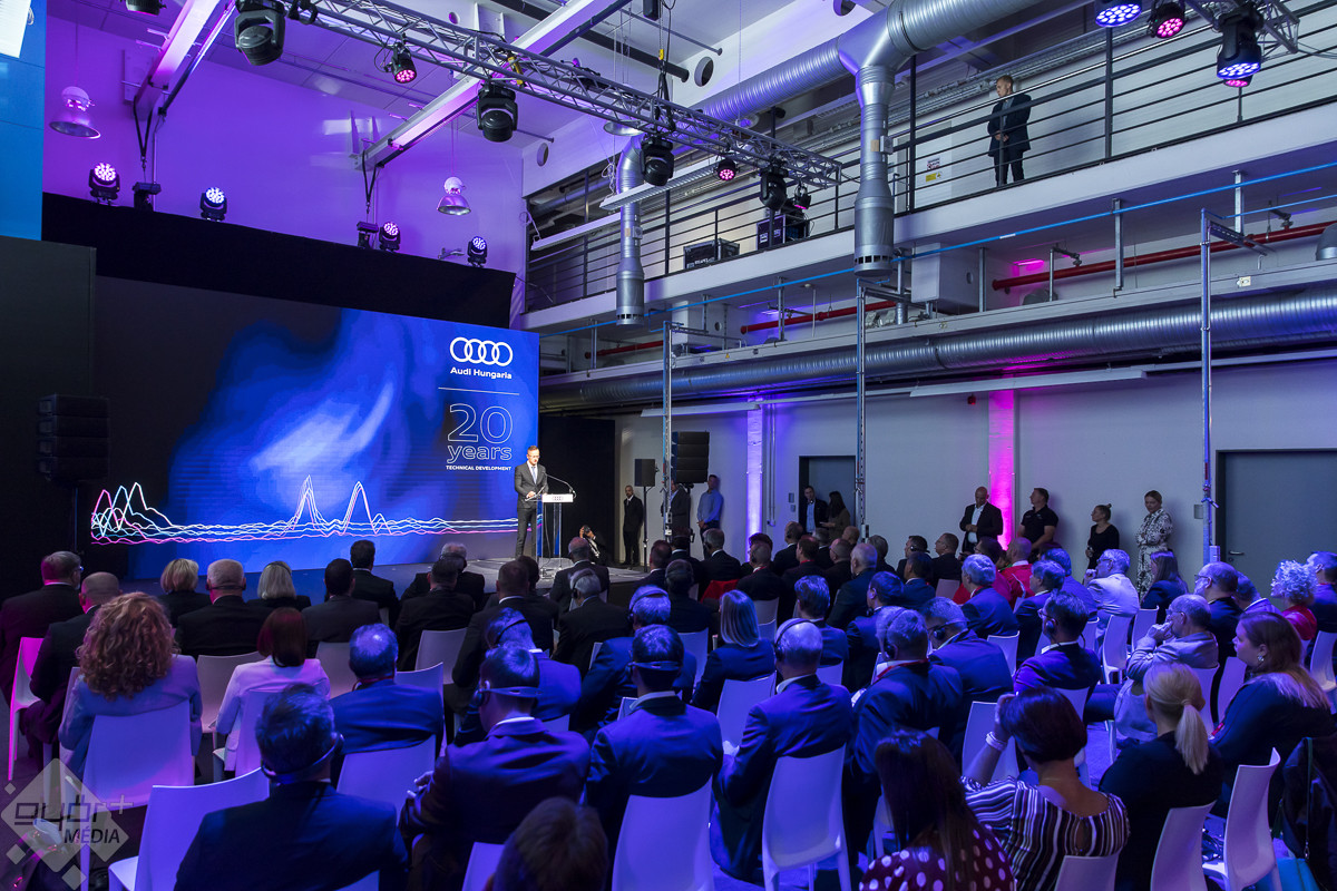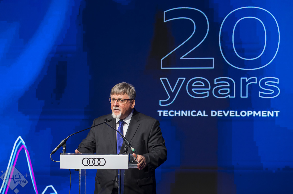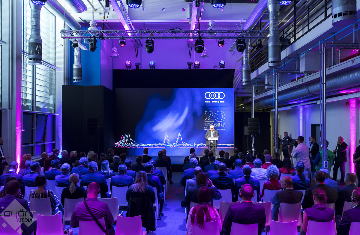 Ma tartották az Audi Hungaria Műszaki Fejlesztésének jubileumi rendezvényét. Az új, elektromobilitás által fémjelzett korszakot Szijjártó Péter, külgazdasági és külügyminiszter, dr. Dézsi Csaba András, Győr város polgármestere, Simon Róbert Balázs, a város országgyűlési képviselője, Peter Kössler, az AUDI AG termelésért és logisztikáért felelős igazgatótanácsi tagja és Oliver Hoffmann, az AUDI AG műszaki fejlesztésért felelős igazgatótanácsi tagja közösen indította el Alfons Dintnerrel, az Audi Hungaria igazgatóságának elnökével.
