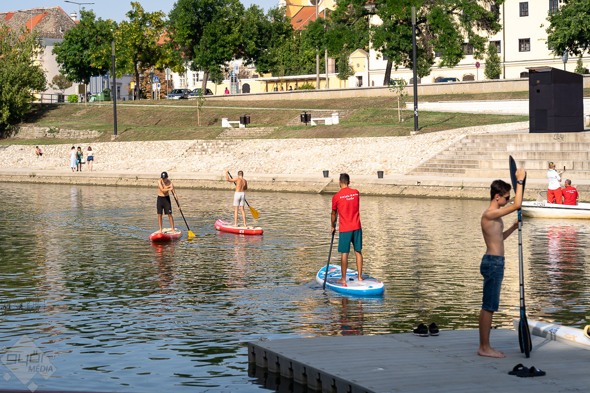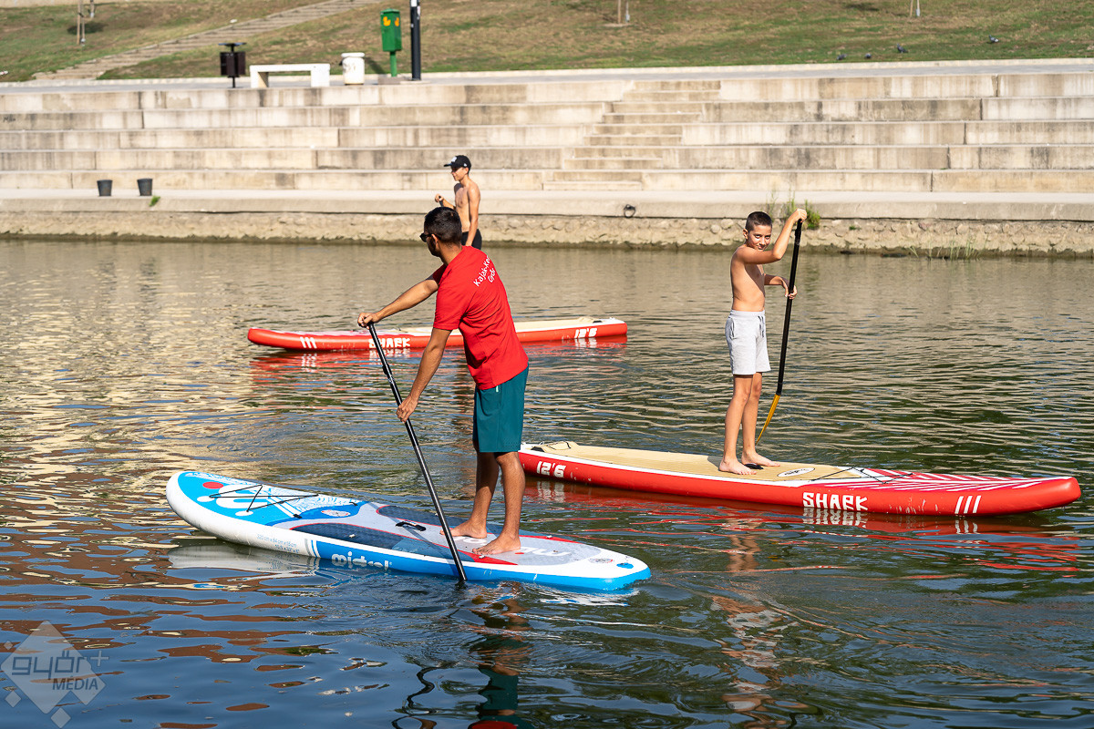 „Győr legendás polgármestere, Zeichmester Károly, a csónakázó egylet elnökeként Mihálkovics Tivadarral közösen kezdeményezte az épület felépítését, hiszen Győr a folyók városa” – idézte fel Simon Róbert Balázs a terület történelmét, mielőtt átadta a színpadot Szikora Robiéknak.