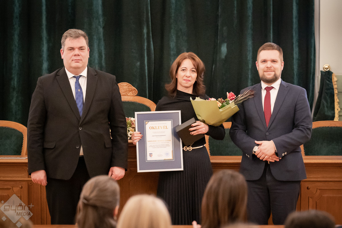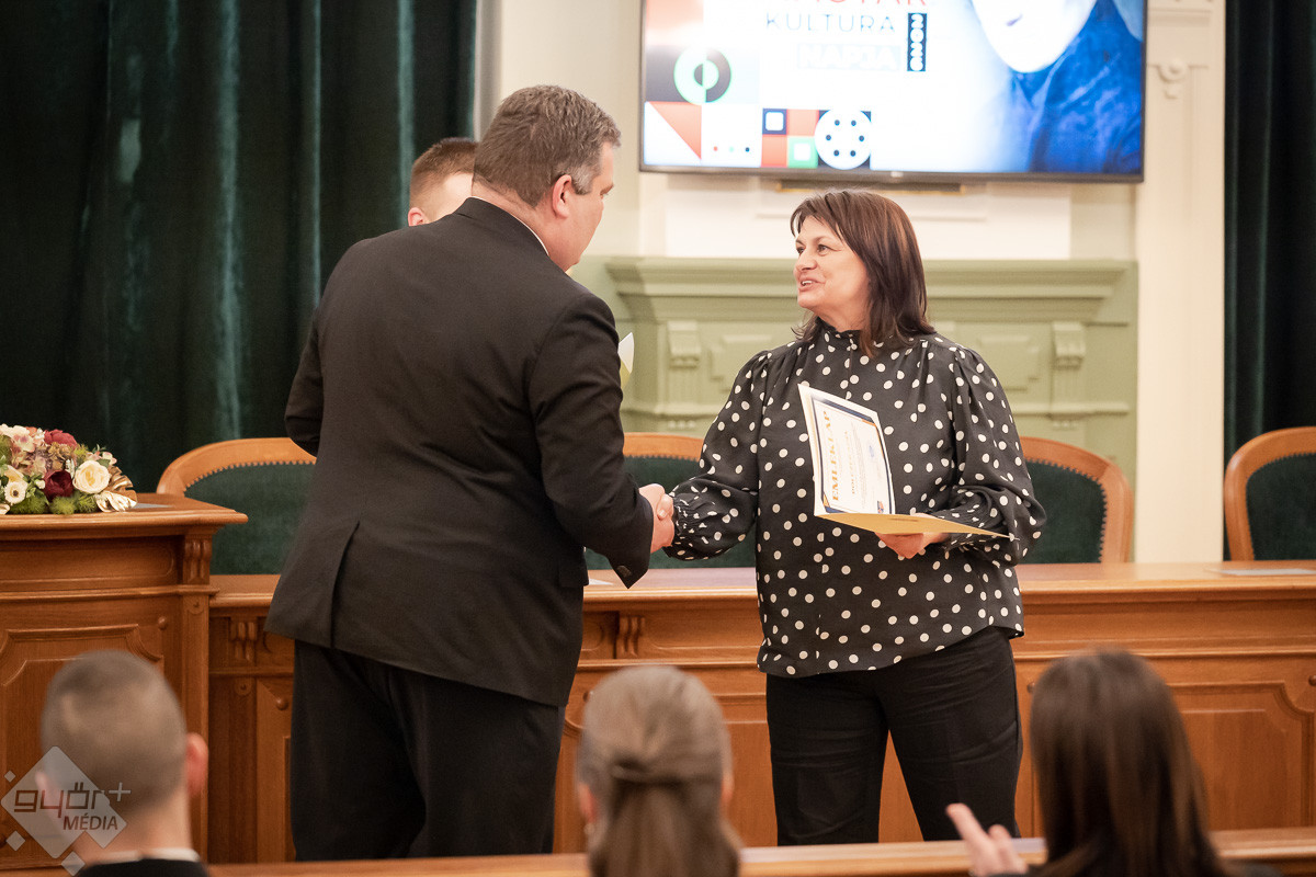 A Győr Közművelődéséért díjat Vargáné Nemesi Emma közművelődési szakember vehette át, aki a város kulturális életében végzett kimagaslóan eredményes közművelődési tevékenysége elismeréséül kapta a díjat.
