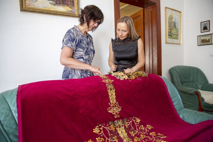 „Irtózatosan jólesett, de meg is rettentett a felkérés, óriási feladatnak bizonyult – mondta Melinda. – Az intézmény jelentőségéhez méltón a tervezői munkámmal szembeni legfontosabb elvárásként azt fogalmaztam meg, hogy a Nemzeti Színházban a textilek közvetítésével legyen képes „jelen lenni a lélek”. Ezt úgy lehetséges optimális módon elérni, ha a textiltörténetünk kiemelkedő tárgyi emlékeire és a Kárpát-mendence 60 különböző tájegységének mintakincsére támaszkodó motívumrészek kézi hímzéssel kerülnek fel a függönyre. Az elhivatott asszonyi teremtő erőt megmutatva valamennyi hímzést az adott tájon élő, vagy onnan származó hímzőasszonyok végzik. A nagyszínpad függönye tehát végigutazik a Kárpát-medencén” – hangsúlyozta az alkotó.