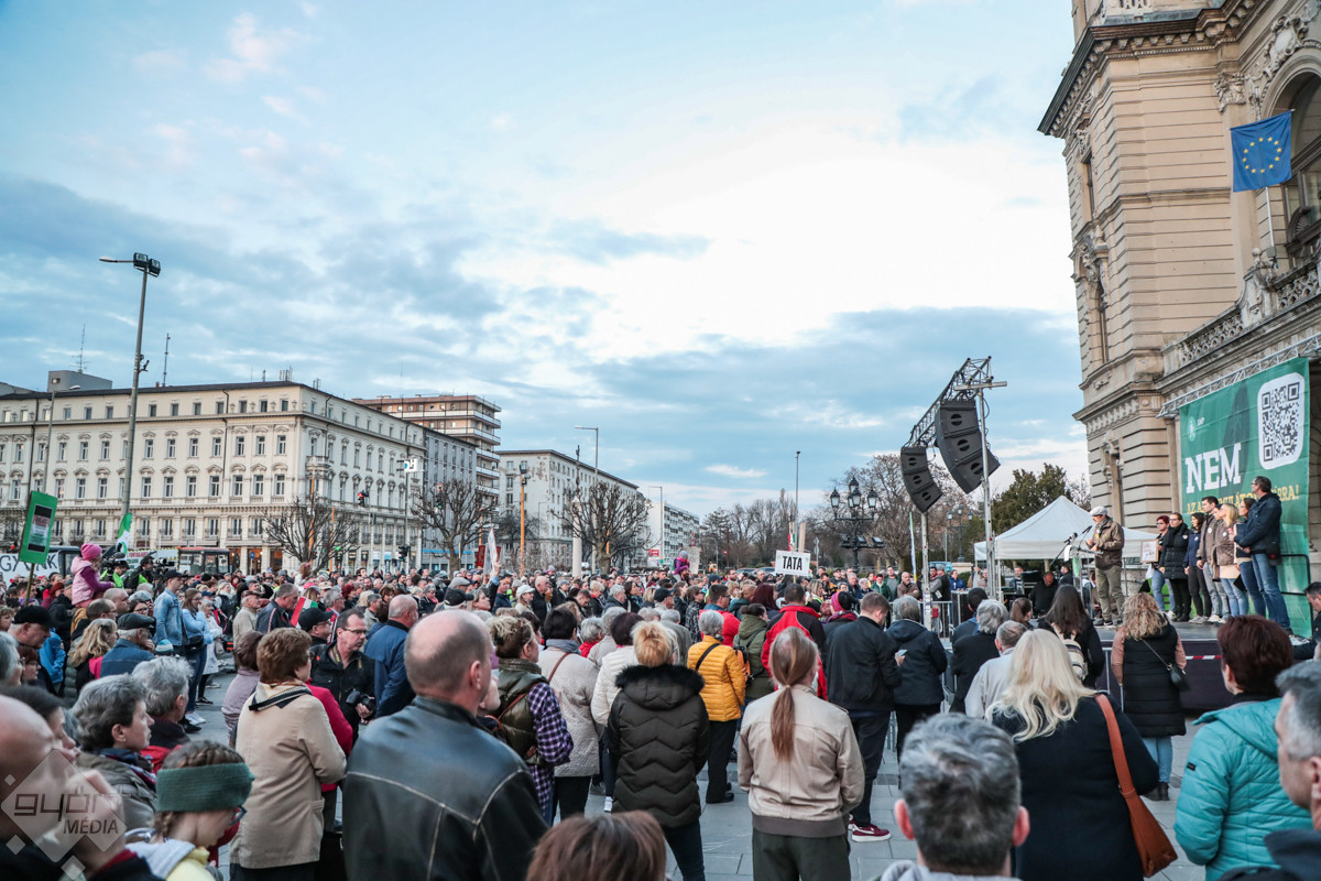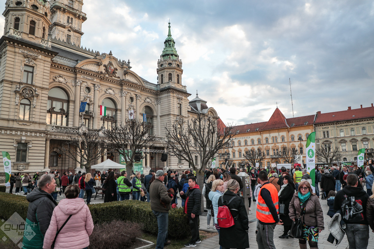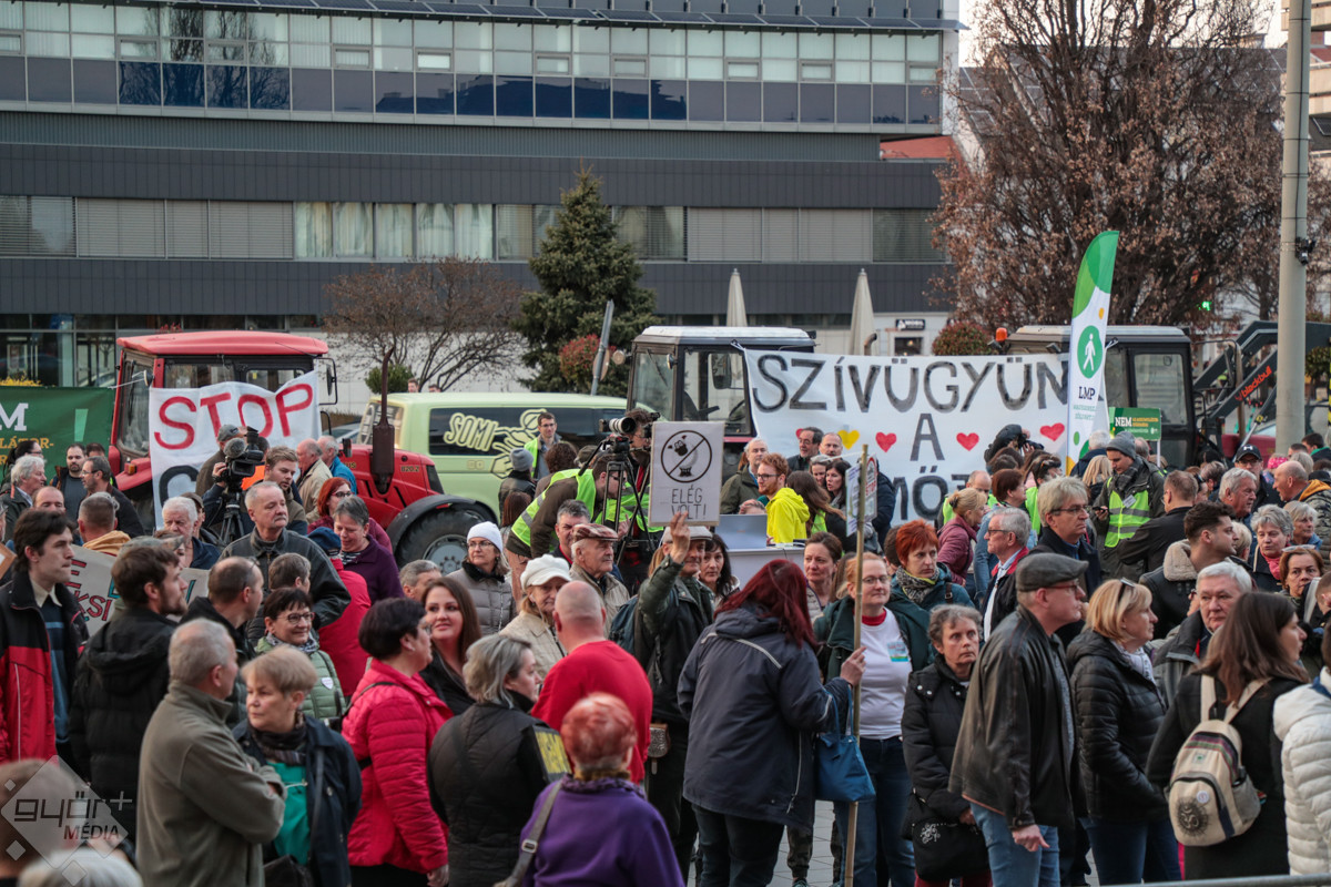 Volt annak valami egészen különös bája, hogy az ipari park bővítése ellen hétfőn este tüntető győrszentivániak vezető aktivistái felvonultak a színpadra, és mindvégig a civil erőről és a civil összefogásról harsogtak. A háttérben pedig, kifeszített óriási transzparensen a rendezvényt szervező LMP népszerűsítette önmagát.