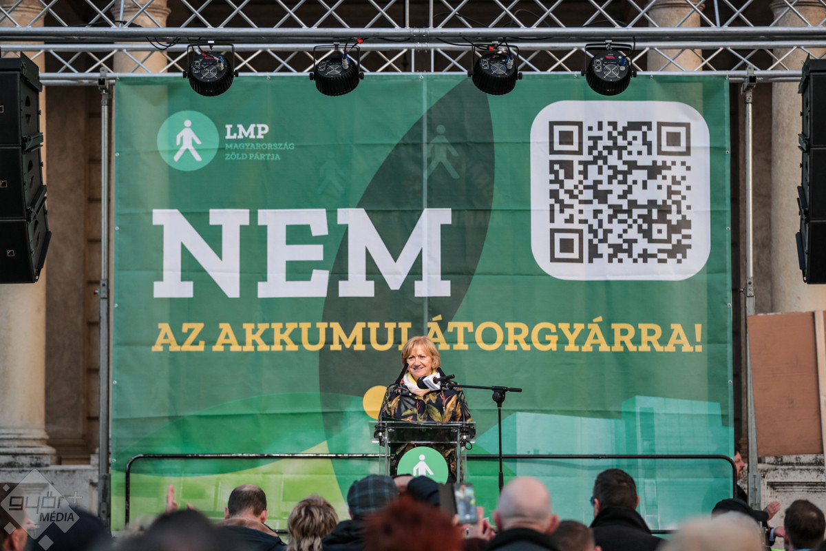 Az LMP nevében az érintett városokat végighaknizó Schmuck Erzsébet elmondta szellemesnek gondolt jelszavait. Hogy mi nem leszünk akkumulátorgyarmat. Meg hogy az akkumulátort nem lehet megenni. Miért, vajon e figyelmeztetés nélkül hallgatósága szerinte akkumulátort vacsorázott volna?