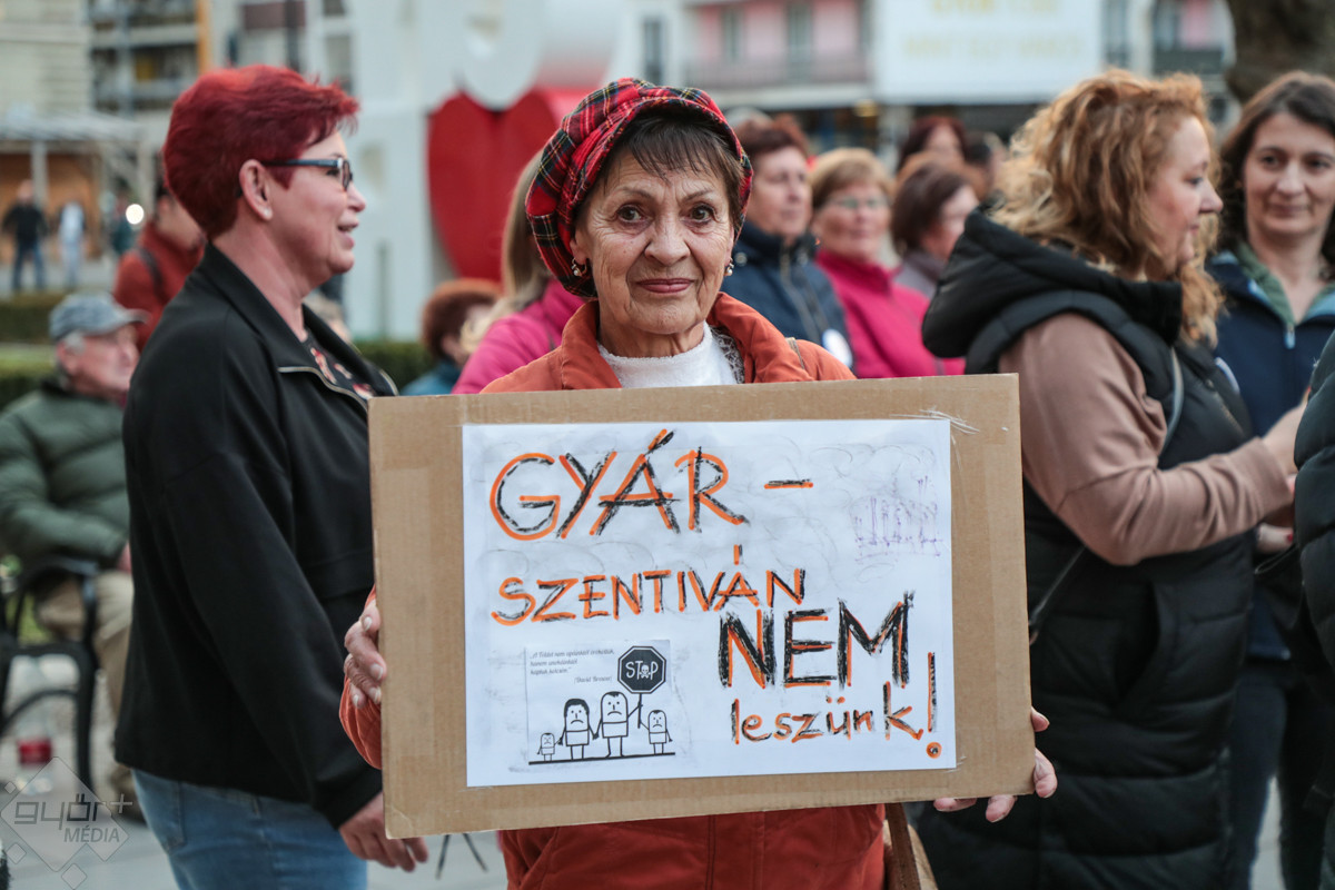 A felszólalók először akkumulátorgyárat nem akartak. (Az iparkamara megyei elnökén kívül egyébként senki nem mondta, hogy Győrszentivánon akkumulátorgyár épül.) Utána, már az ipari park bővítése ellen is tiltakoztak, akármi is épülne ott. Nem kell nekünk ipar sem, mert lehet, hogy Győr most iparváros, de korábban mezőgazdasági és kereskedőváros volt, hangzott el.