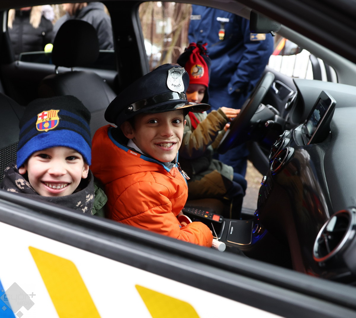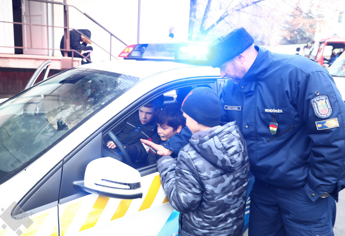 A szirénázós megérkezés után bárki beülhetett az autókba, megszólaltathatta a “nínót”, végül pedig ajándékokat is kaptak mindhárom szervezettől az otthon lakói.