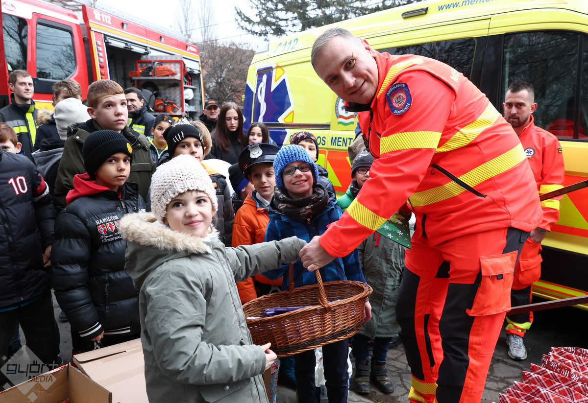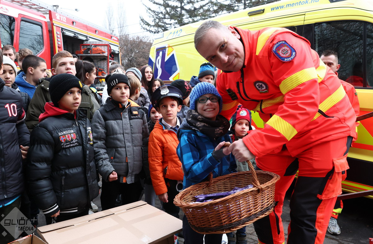 A tegnap átadott ajándékok után ma egy újabb meglepetést kaptak a Bagolyvár Gyermekotthon lakói. Felhívásunkra a rendőrség, a mentőszolgálat, és a katasztrófavédelem munkatársai is reagáltak, akik egy izgalmas délutáni "élménynapot" adtak a saját ajándékaik mellett a gyerekeknek.