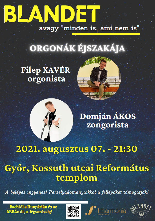 Szombaton lesz az orgonák éjszakája, ebből az alkalomból a Kossuth utcai református templomban ingyenes koncertet ad két ifjú tehetség este 21:30-tól. A kifejezetten gazdag műsorban a legendás Johann Sebastian Bach, Tomaso Albinoni mellett ismét felhangzik orgonán pár filmzene, betétdal. Nem maradnak ki a klasszikusok sem, mert az ABBA egyik közismert száma is megszólal az orgonán. Mindezek között pedig nem maradhatnak el az örökzöld, nagy klasszikus Rock N' Roll dalok sem.