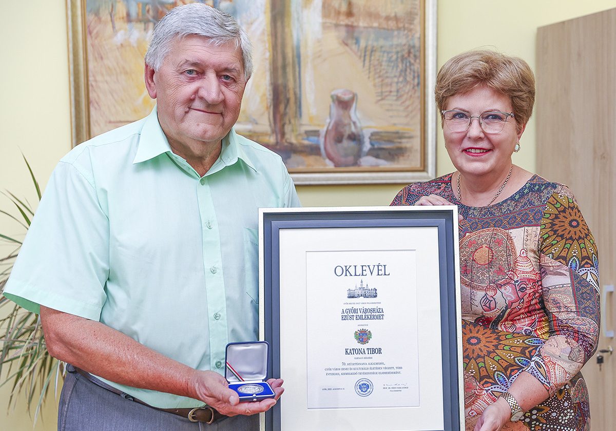 A győri egyházi zenei élet megkerülhetetlen művésze és tanára Katona Tibor karnagy, akit augusztus 10-én Pergel Elza alpolgármester fogadott a városházán. S nem csak kerek születésnapján köszöntötte, hanem Győr város ezüst emlékérmét is átnyújtotta neki.