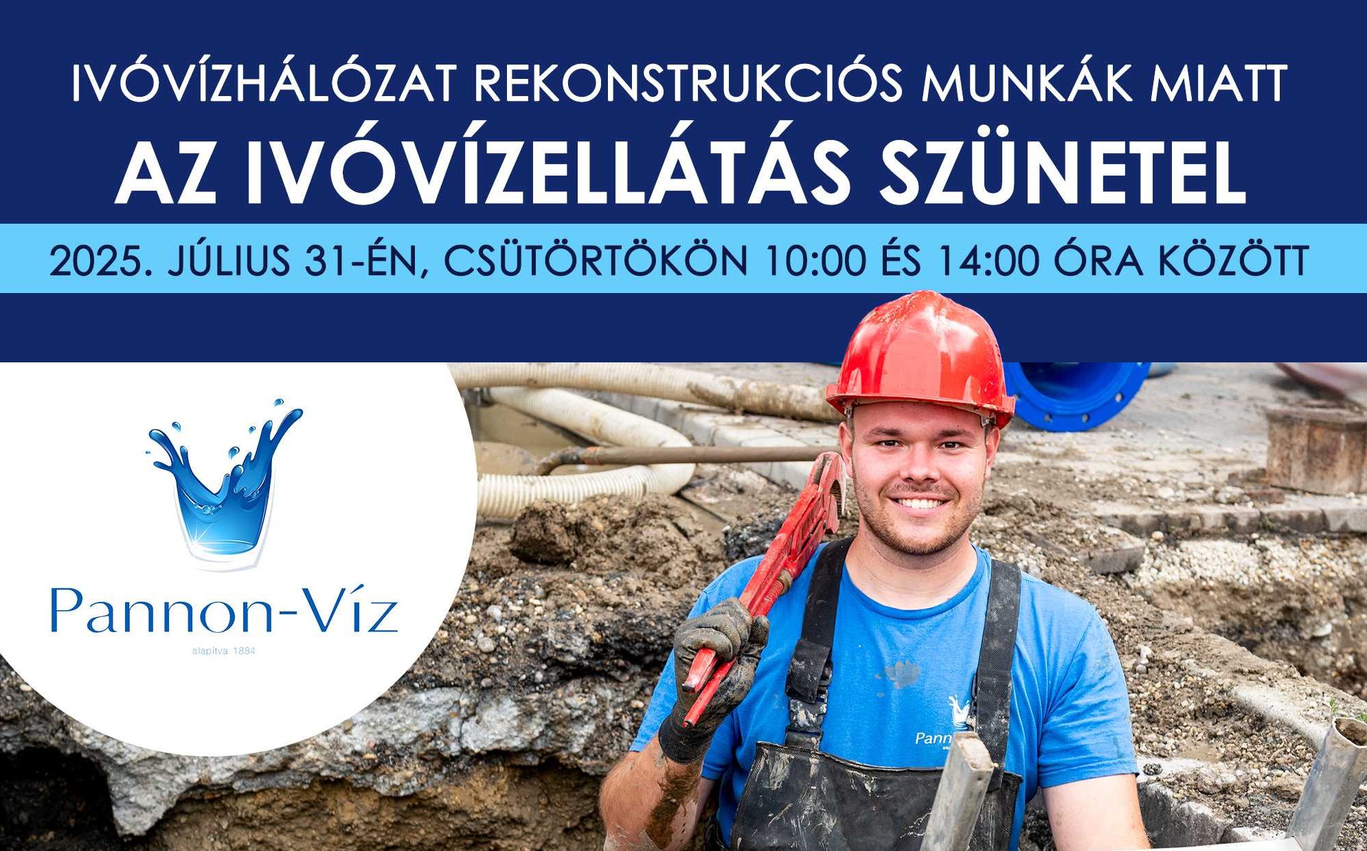 Ménfőcsanakon a Világosvár utcában és a Tenkes utcában július 31-én, csütörtökön 10:00 és 14:00 óra között az ivóvíz szolgáltatás szünetel.