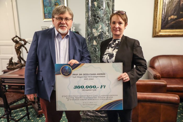 De nem csak a darts club, a Széchenyi István Egyetem Kautz Gyula Gazdaságtudományi Karának Turizmus és Vendéglátás Tanszékének képviselői is támogatásban részesültek, ugyancsak 300 ezer forintot vehettek át, a nemzetközi turizmus konferencia finanszírozására.