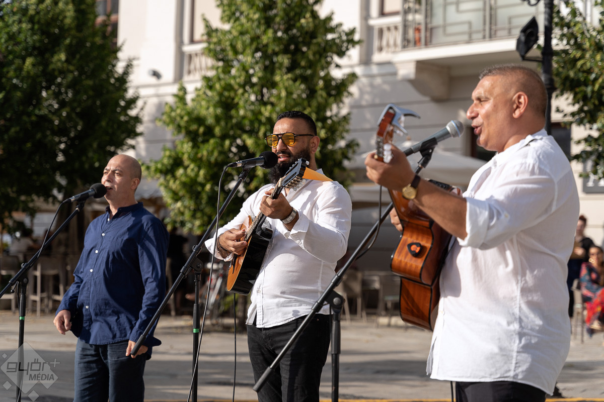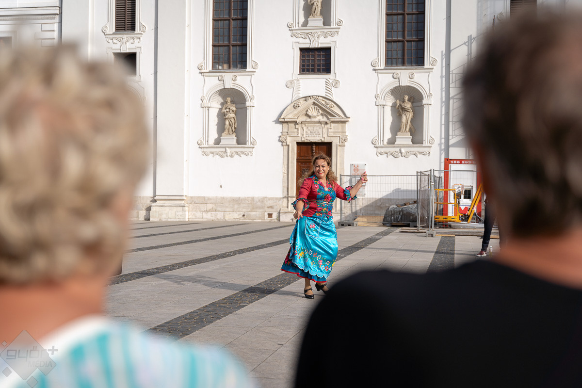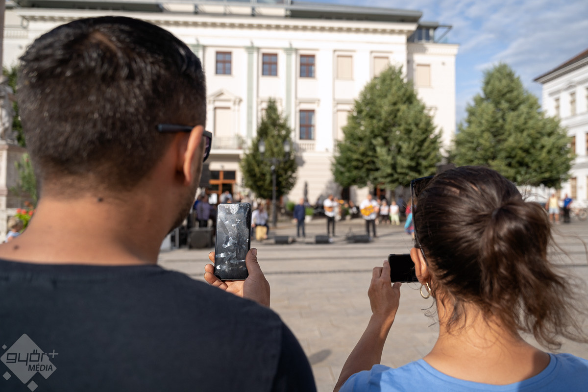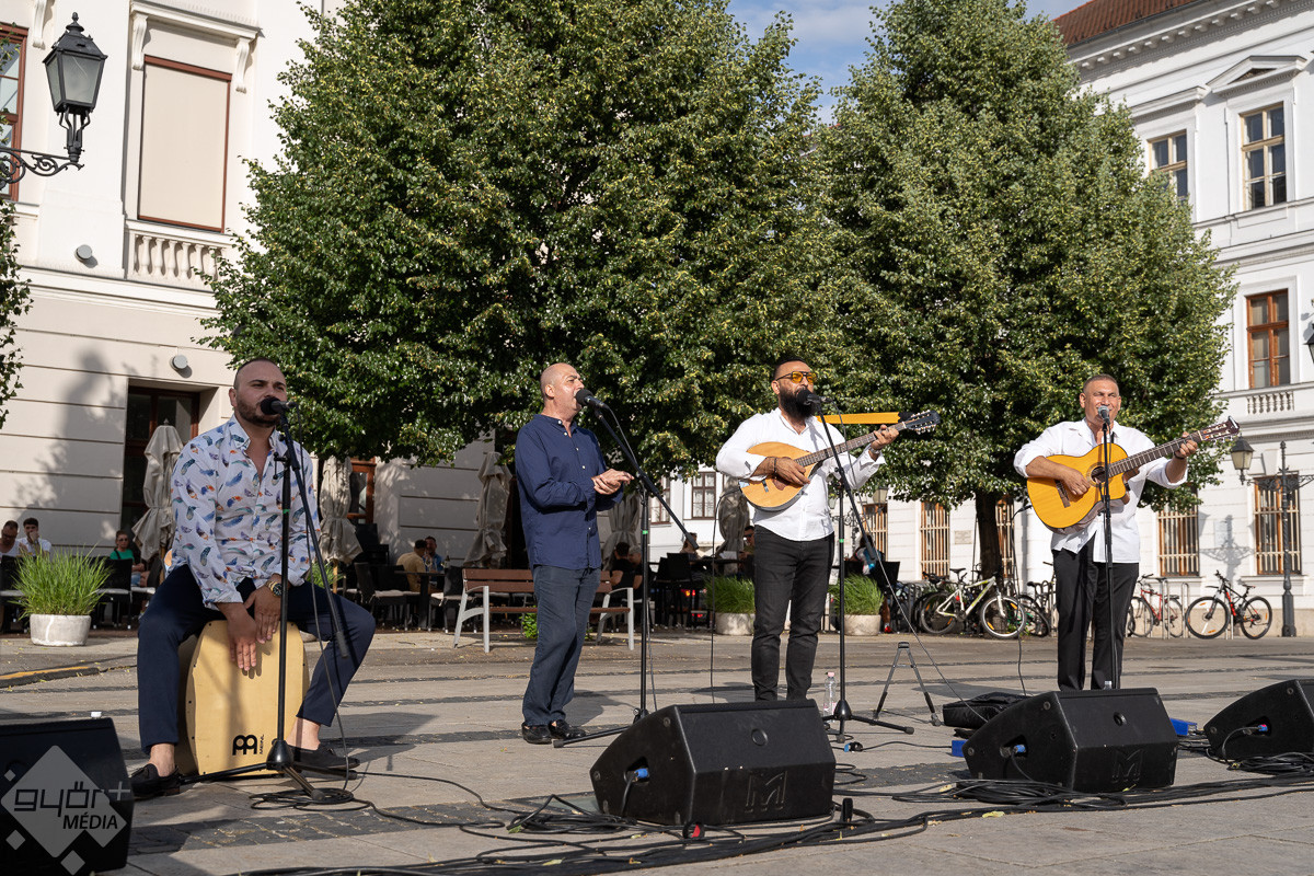 Táncparketté változott a győri Széchenyi tér, ahol zenével és tánctanítással klasszikus roma táncházat rendeztek pénteken este.