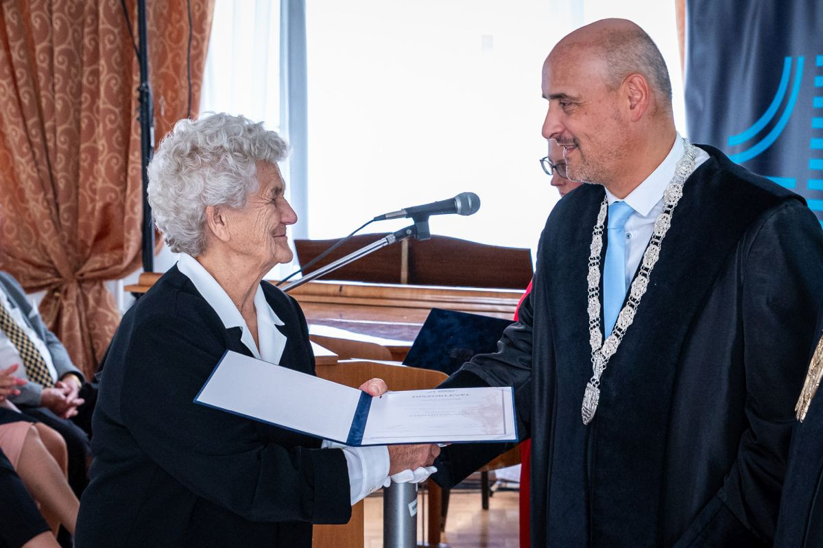 Az emlékdiploma-átadó a Széchenyi István Egyetem Apáczai-karának egyik legmeghittebb ünnepsége, amelynek középpontjában a tanítók iránti tisztelet és nagyrabecsülés áll. Az idei alkalmon összesen harminc jubilálót köszöntöttek személyesen két rubin-, egy vas-, két gyémánt- és huszonöt aranydiploma átadásával.