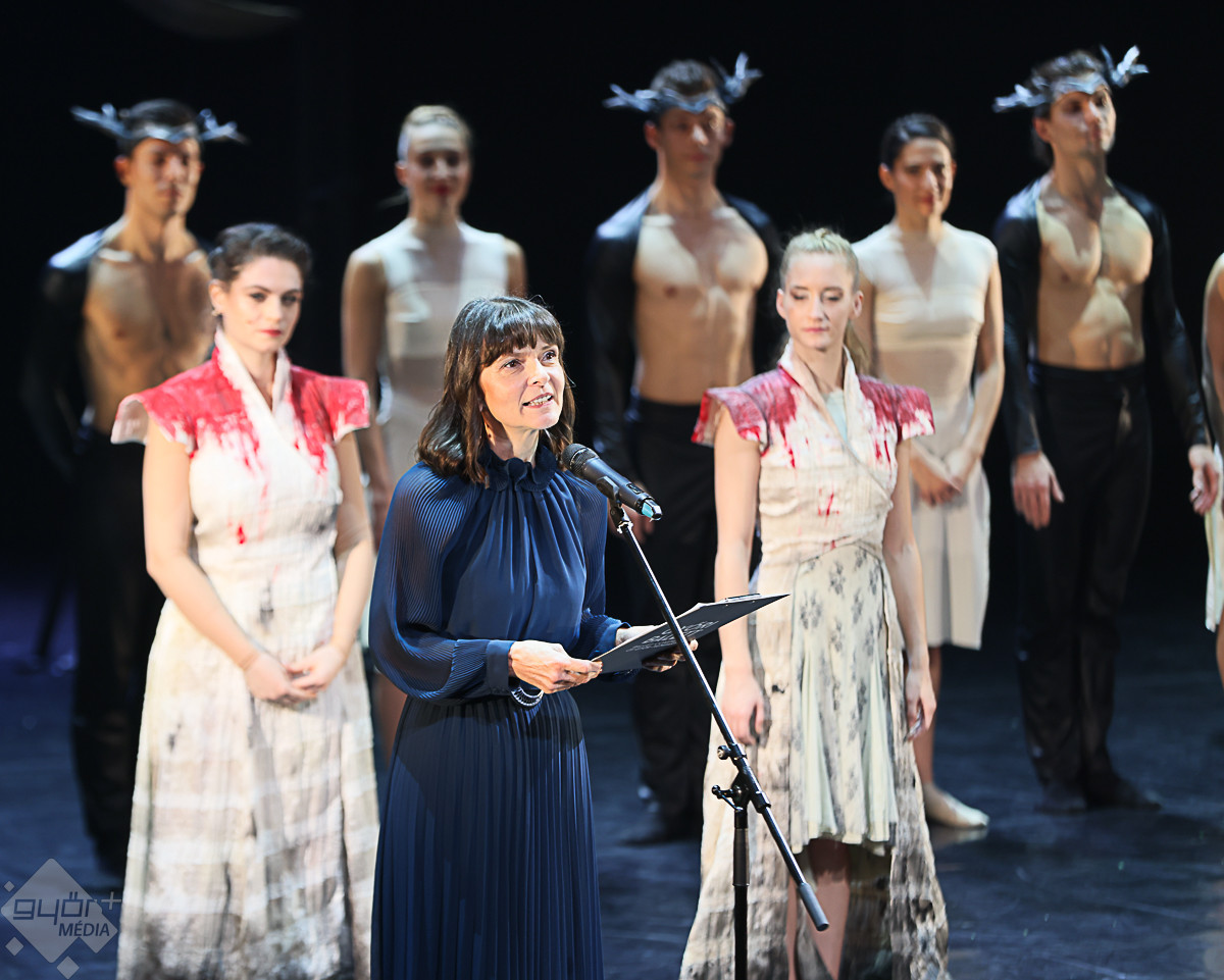 A mozgalmas hétvége következő állomása a szombati előadás volt, ahol Velekei László is szólt a társulathoz. „Az elmúlt három évben minden társulati ülést azzal kezdtem, hogy nehéz évad előtt állunk, de közben pedig nyugodt vagyok, hiszek a művészet erejében, a szónak és a mozdulatnak az erejében. Ezt igazolja a történetünk, a jelenünk. Köszönjük a hitet, a Győri Balettba vetett hitet, ez ad nekünk erőt, amíg ezt a támogatást érezzük, addig szárnyalni tudunk. Nem csak a művészetünkkel szeretnénk hatni, hanem azzal is, akik vagyunk, vagyis amivé válunk a művészetünk által” – fogalmazott az igazgató, megköszönve a szponzorok támogatását.