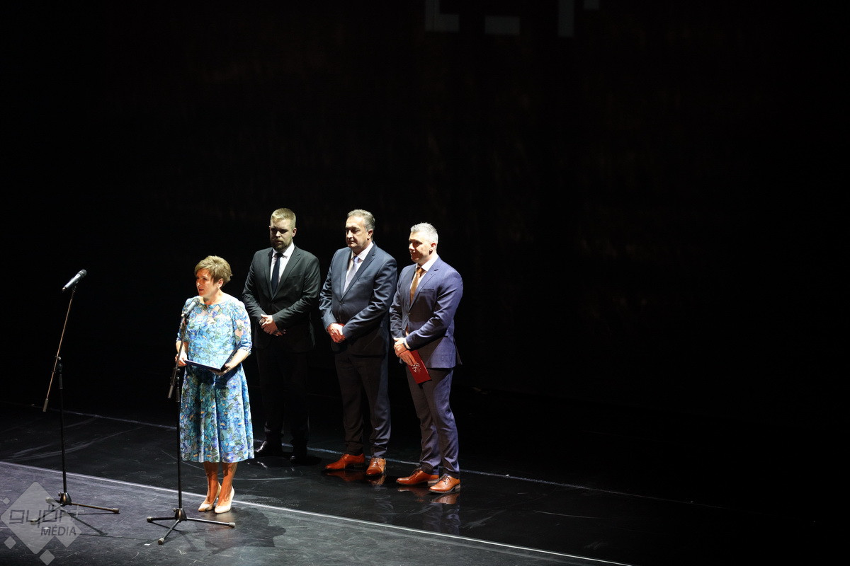 A város nevében Pintér Bence szólt az ünneplő közönséghez és a társulathoz.