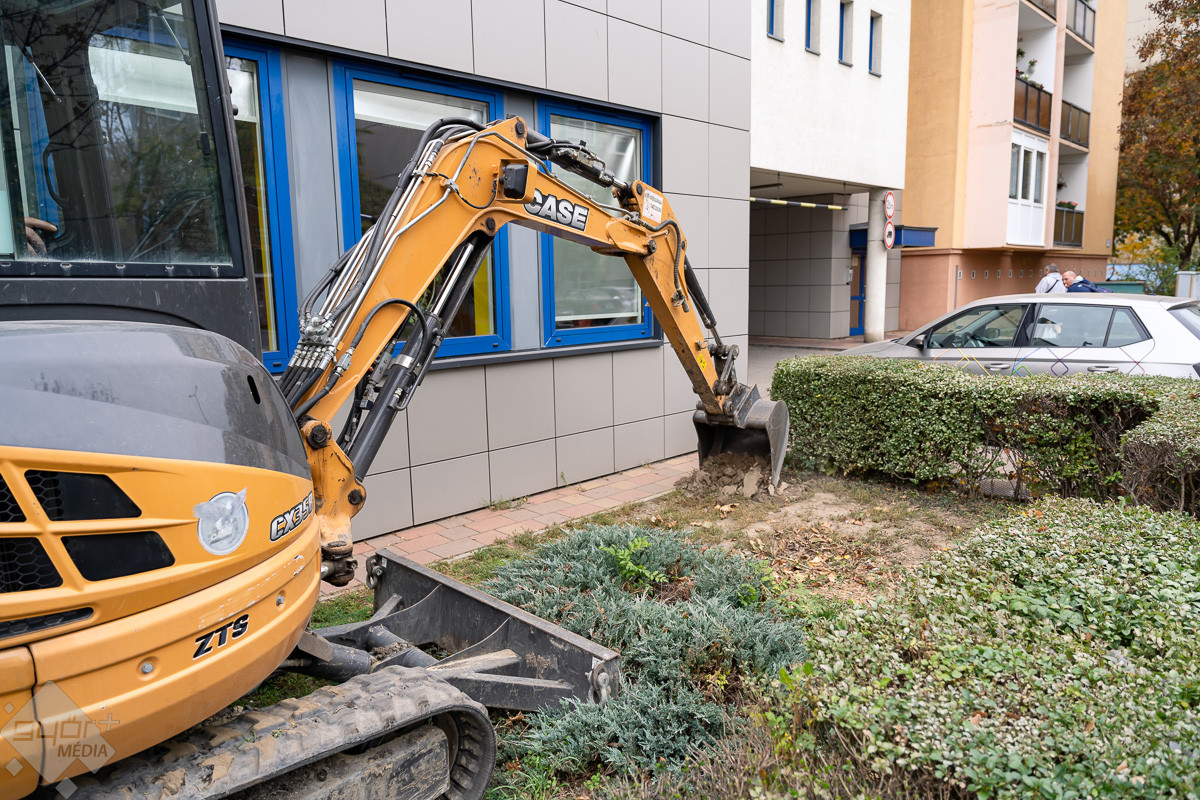 Hősiesen bevalljuk, hogy a gazos, kavicsos, elhanyagolt talajt meglehetősen nehéz volt kézi ásókkal fellazítani, bár egy ideig derekasan próbálkoztunk. A jó csapatokat pedig többnyire a szerencse és a jószándék is támogatja, így a Kultúrmérnök Kft. munkatársai a segítségünkre siettek. Ők egyébként épp a Kuopio parkban dolgoznak. Kis markolójukkal és teherautójukkal, na meg persze elsősorban az emberikkel talán nem is sejtik, mennyit lendítettek utcaszépészeti akciónkon. Köszönjük a kedves fiatalembereknek és főnökeiknek itt is!