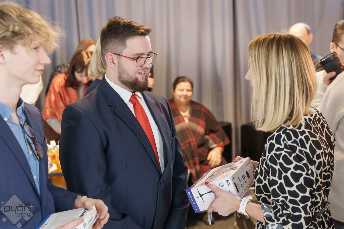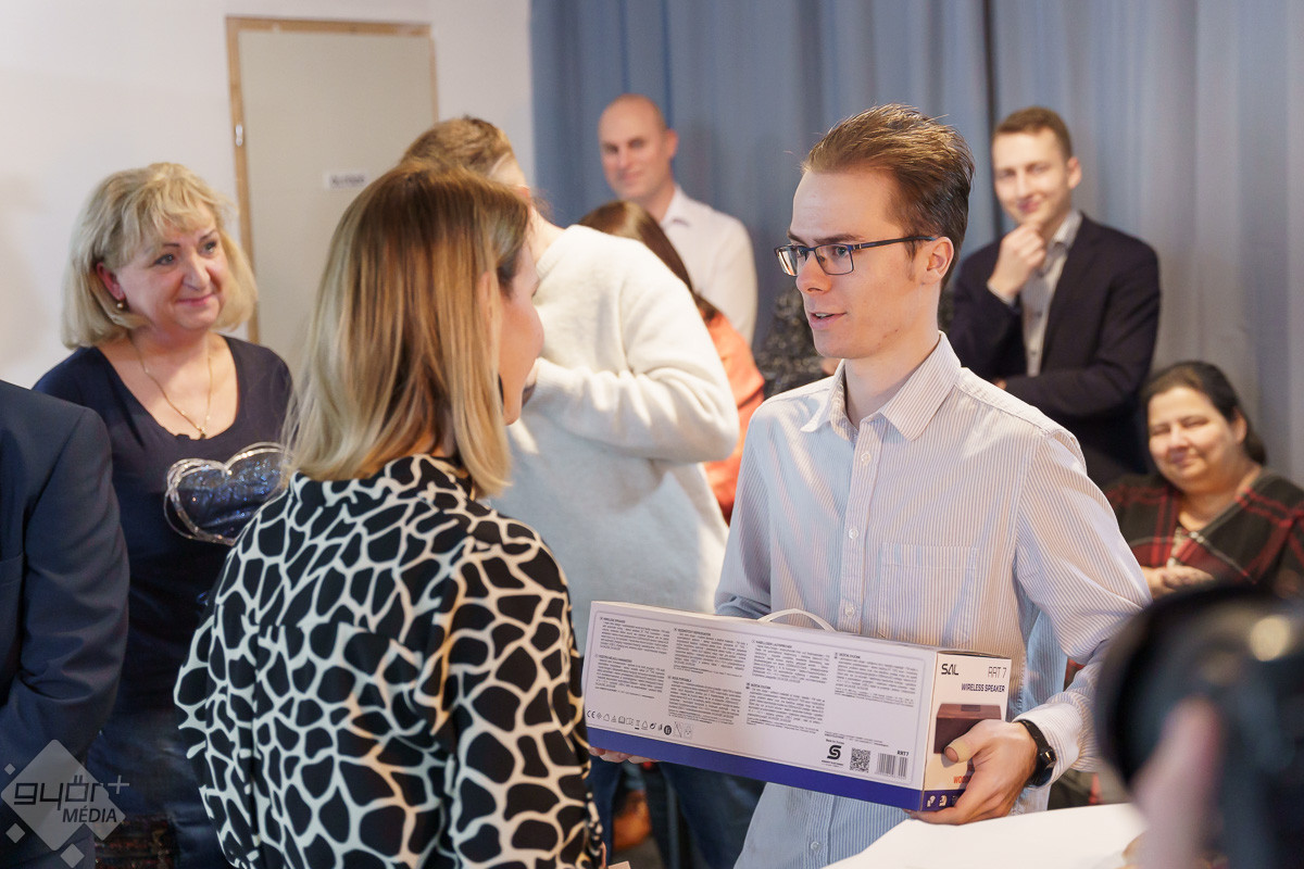 Szerdán délután tehetséges fiatalokat díjaztak a Széchenyi István Egyetem Tehetségsegítő Tanácsa és a HangBázis közös szervezésében. Utóbbi egy multifunkcionális stúdió komplexum, vagy ahogy a tulajdonos nevezi: zenei közösségi tér, mely a közelmúltban nyílt meg. „Ez nemcsak a profiknak szól, hanem azoknak a tehetséges fiataloknak, akik az iskolapadból kijőve keresik magukat a zenében, a táncban, a fotóban, a médiában. Ezért partnereket, lehetőségeket kerestünk, hogy megnyithassuk előttük a stúdiónk ajtaját.” – fejtette ki Takács András.