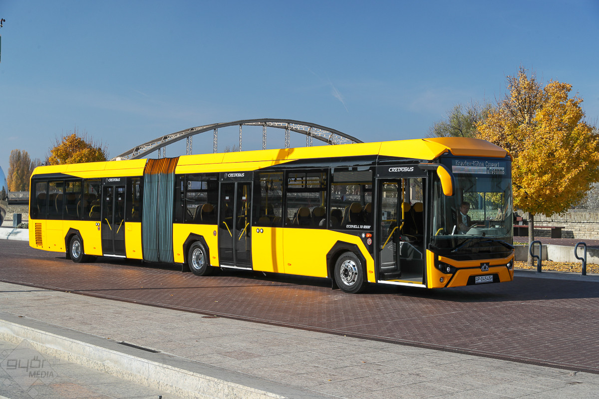 Jó hírét viszi Győrnek – ez a felirat volt látható a legmodernebb buszon. Tormássy Attila, a Kravtex Kft. értékesítési és marketingvezetője kiemelte, hogy ez az egyetlen 19,5″ kerékrendszerű csuklós busz a világon, így a megszokott 17-18 tonnás súlyt 14 tonnára tudták csökkenteni. Emellett a jármű környezetbarát, hiszen: üzemanyag-felhasználása 15 %-kal, éves CO2-kibocsátása pedig mintegy 10.000 kg-mal kedvezőbb versenytársainál.