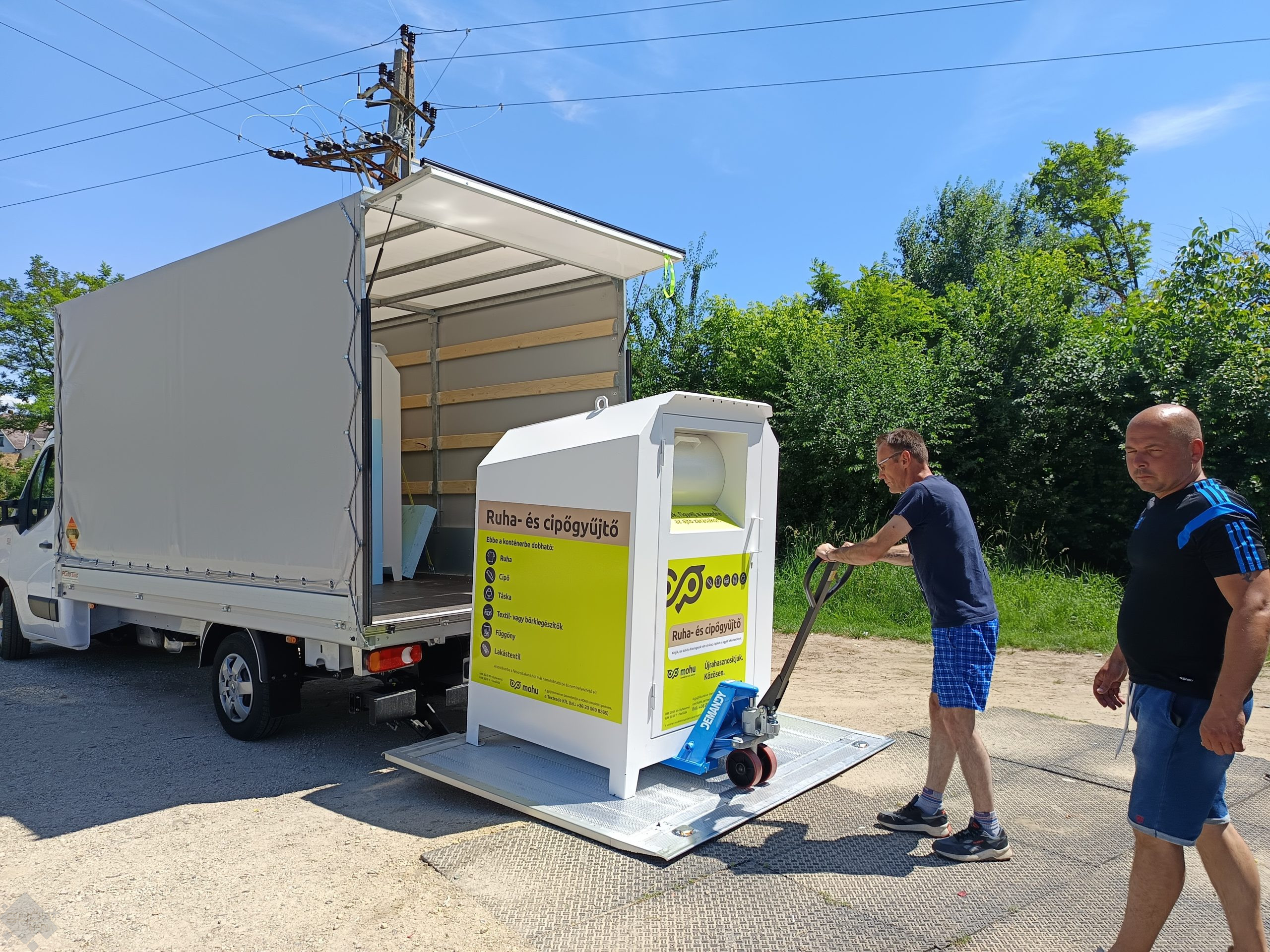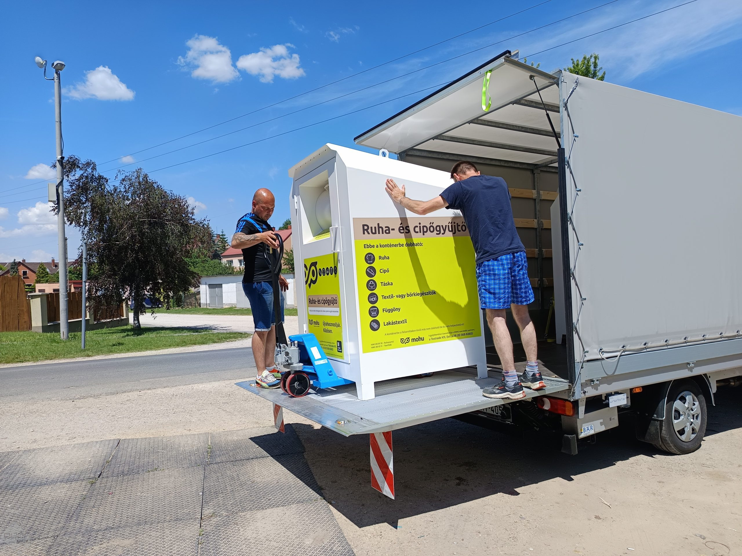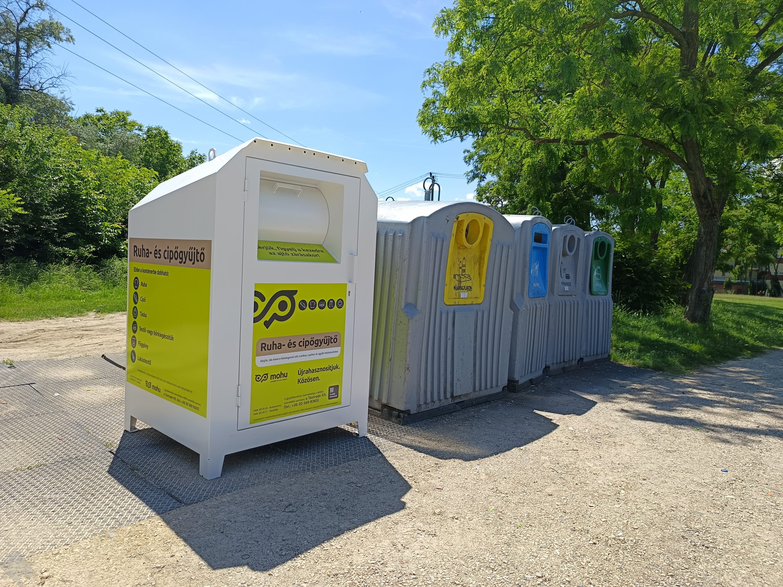 Városszerte félszáz textilgyűjtő edényt helyez ki hétfőig a MOHU. Az első ilyen szelektív gyűjtőket kedden telepítették Ménfőcsanakon, a Hármashatár úti szelektív gyűjtősziget vasút felőli részén és a Coop ABC oldalánál.