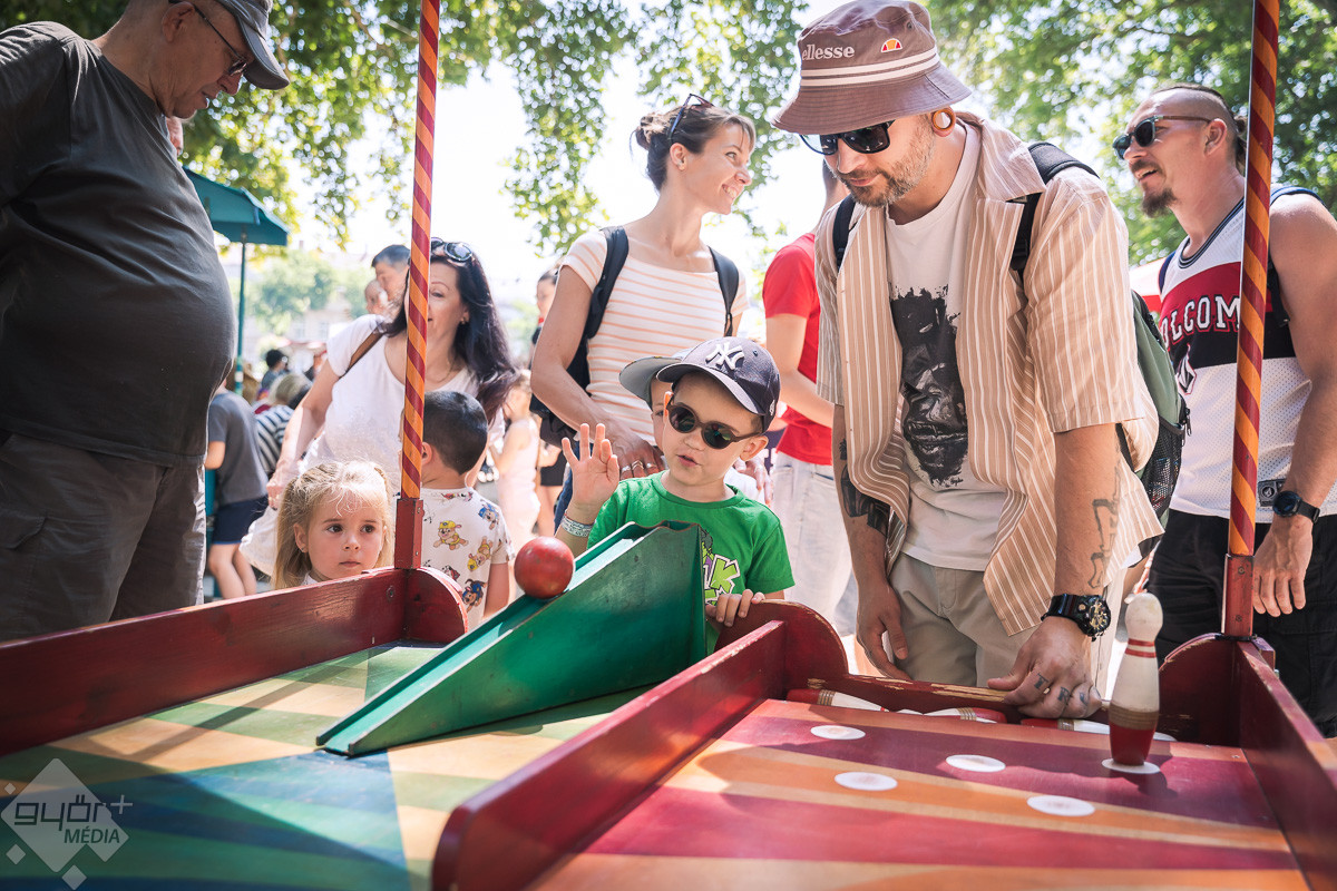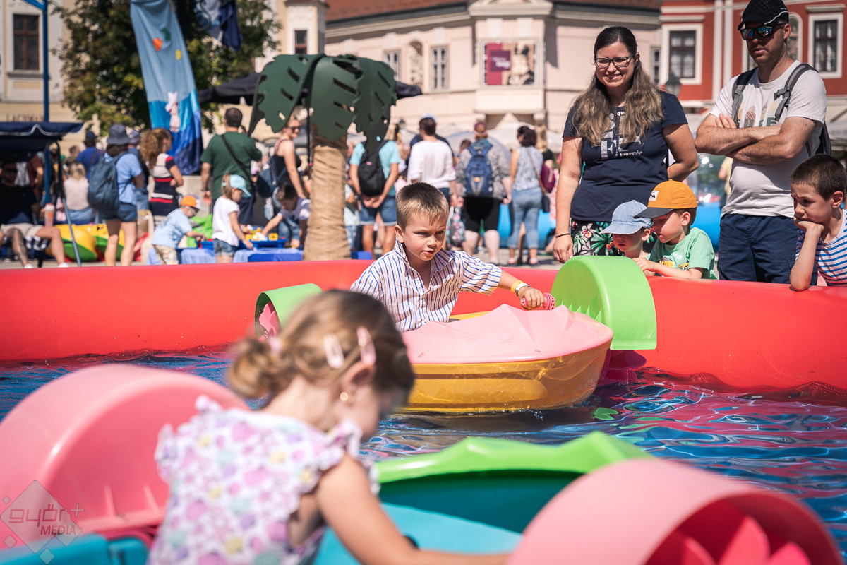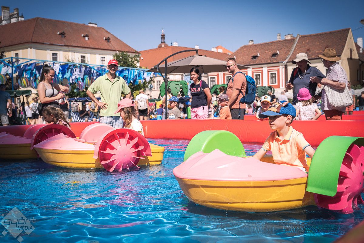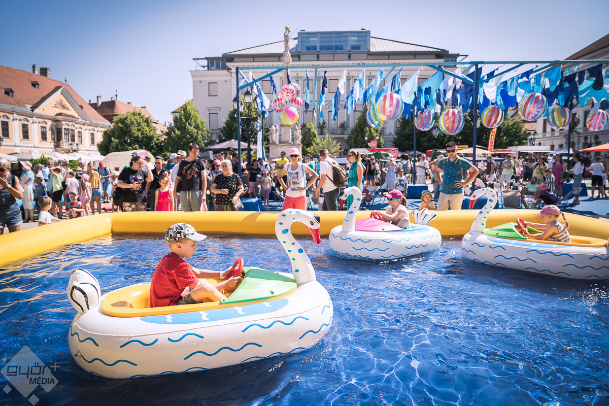 „A Széchenyi tér egy hullámzó Győrkőc tér, ezt nem lehet leárnyékolni, úgyhogy ott mindig vizes játékok vannak a gyerekeknek. „Mesevásár” van a Kazinczy utcában, ahol egy csomó kézműves terméket is meg lehet találni, ezt a szülők is szeretni szokták nagyon. A Bécsikapu tér a központ, ez egy ilyen kaleidoszkópszerű rész. Itt van bábszínház, természettudományos játék, pihenős rész is. A Király utca lett a „Fess utca”, és van ott úgynevezett újrahasznosítós játék, de a rendőrség autóit és eszközeit is ki lehet próbálni. Az ágyúknál, ha lemegyünk, itt van a „Tudós kikötő”, ahol a matematika és a tudomány minden játékos arcát megismerhetik a gyerekek.
