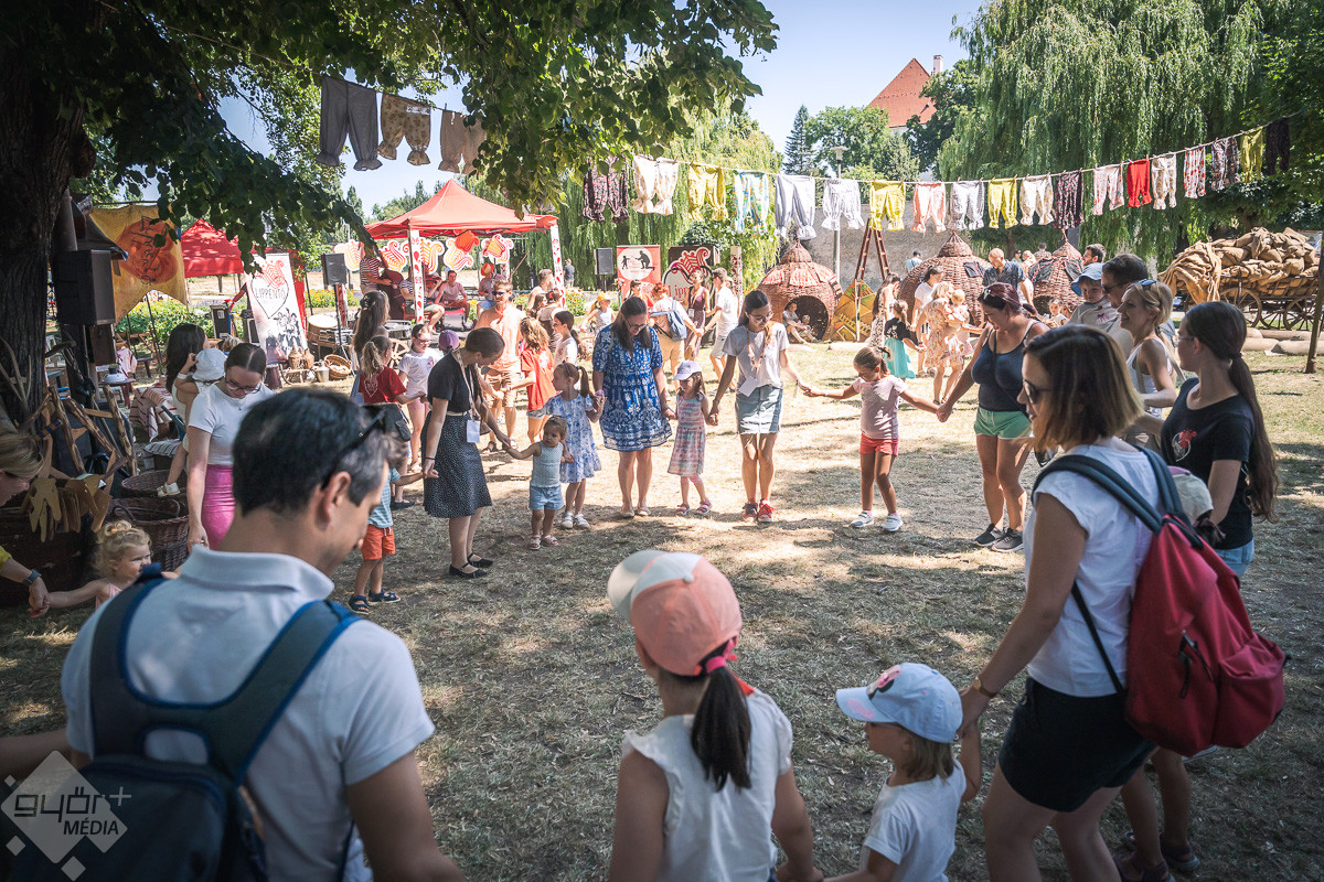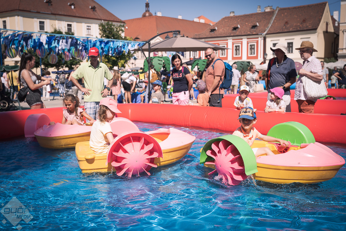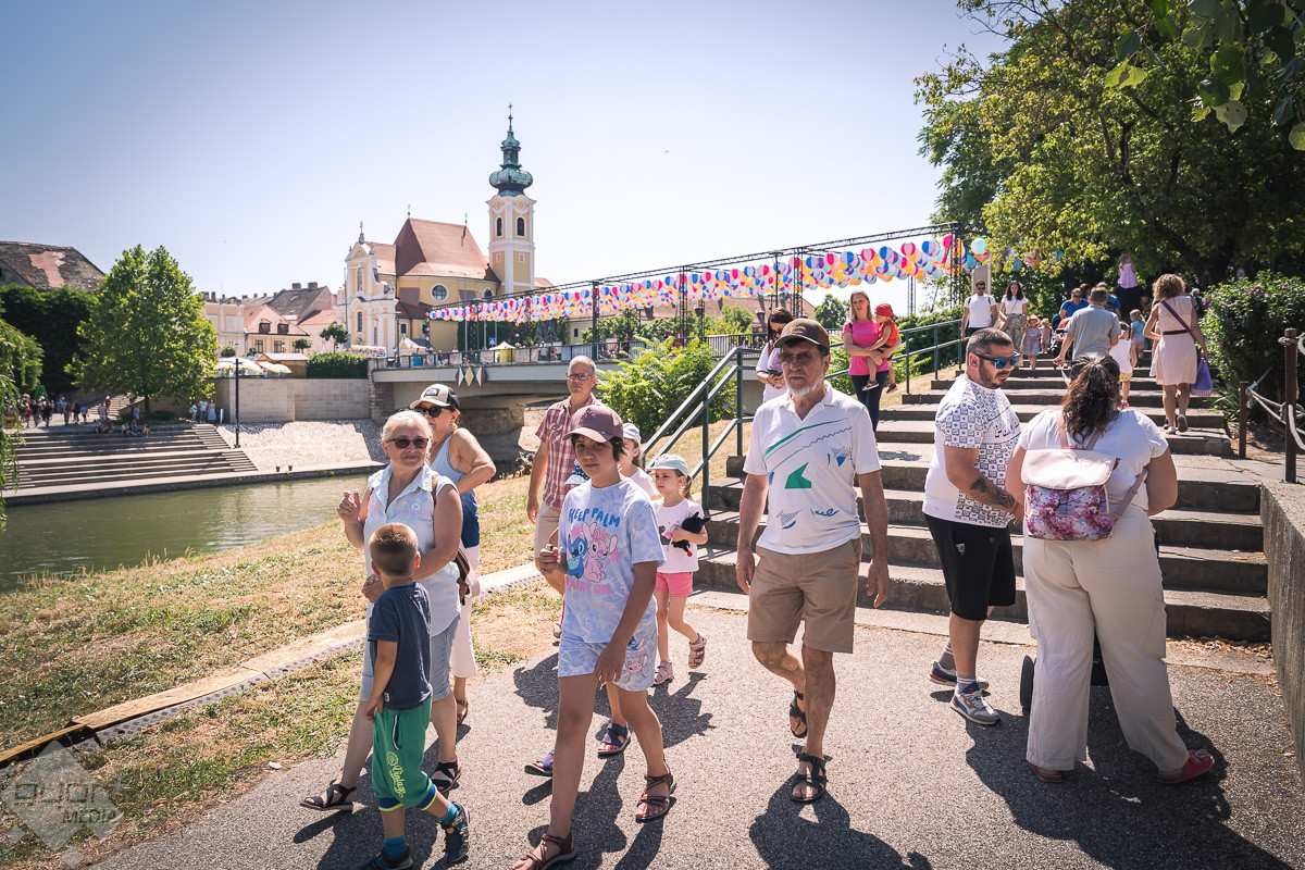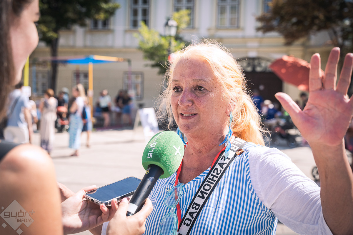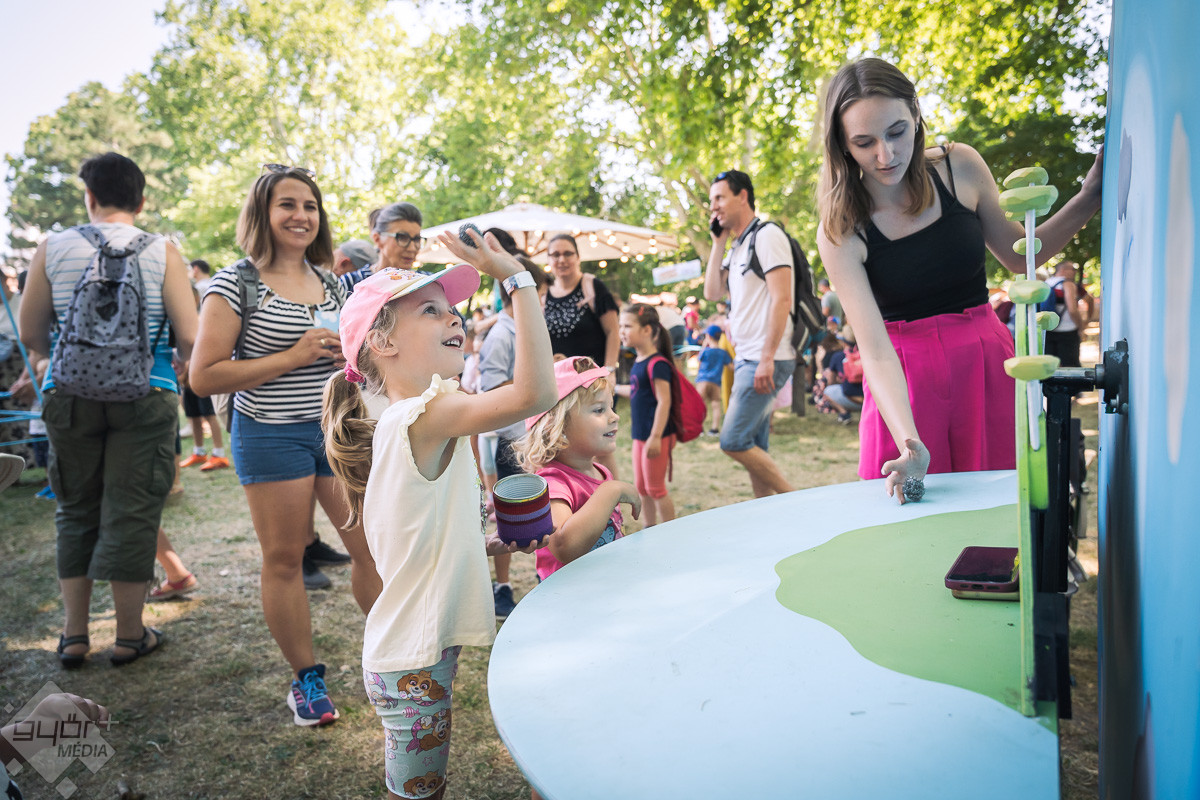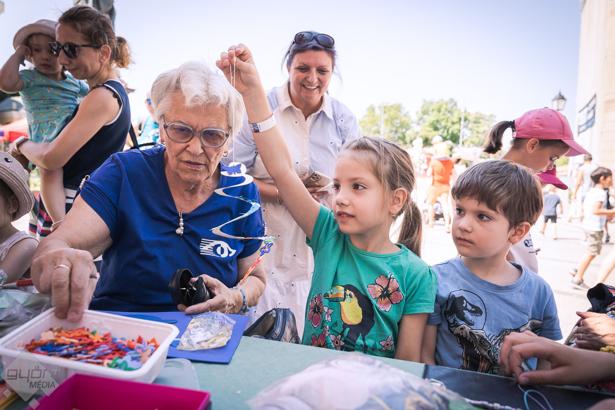 A „Varázshídon” vannak az ugrálós és társasjátékok. A Radónak a bal oldalán van a „Medenceszínpad”, mögötte a „Meseváros„ ahol előadások és még lovagi torna is található. Leghátul pedig a „Versjátszótér”, ismert költőkkel és írókkal. Nagyon fontos helyszín még a „Győrkőcfalu”, ahol a Lippentő Táncegyüttes táncházzal várja a gyerekeket, a vásártéren is előadások vannak. Velünk van a Kisalföld Népművészeti Egyesület is, akik minden évben kijönnek. Van „Babakert” és természetesen körhinta is. Egyszóval nagyon boldog vagyok, hiszen ez egy csodálatos rendezvény.” – fejtette ki a főszervező.
