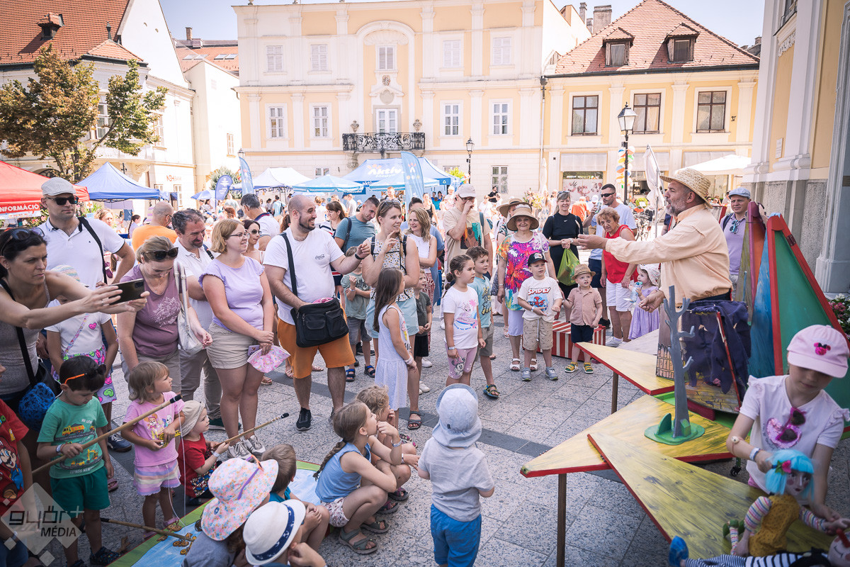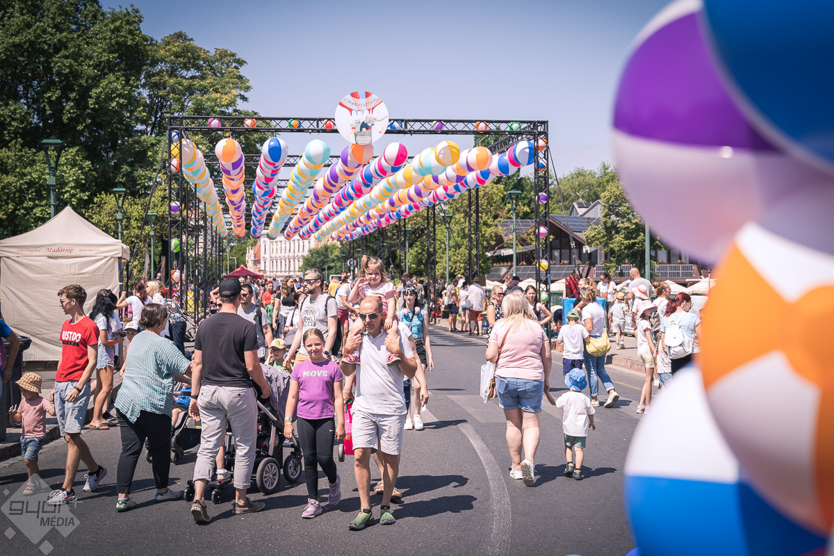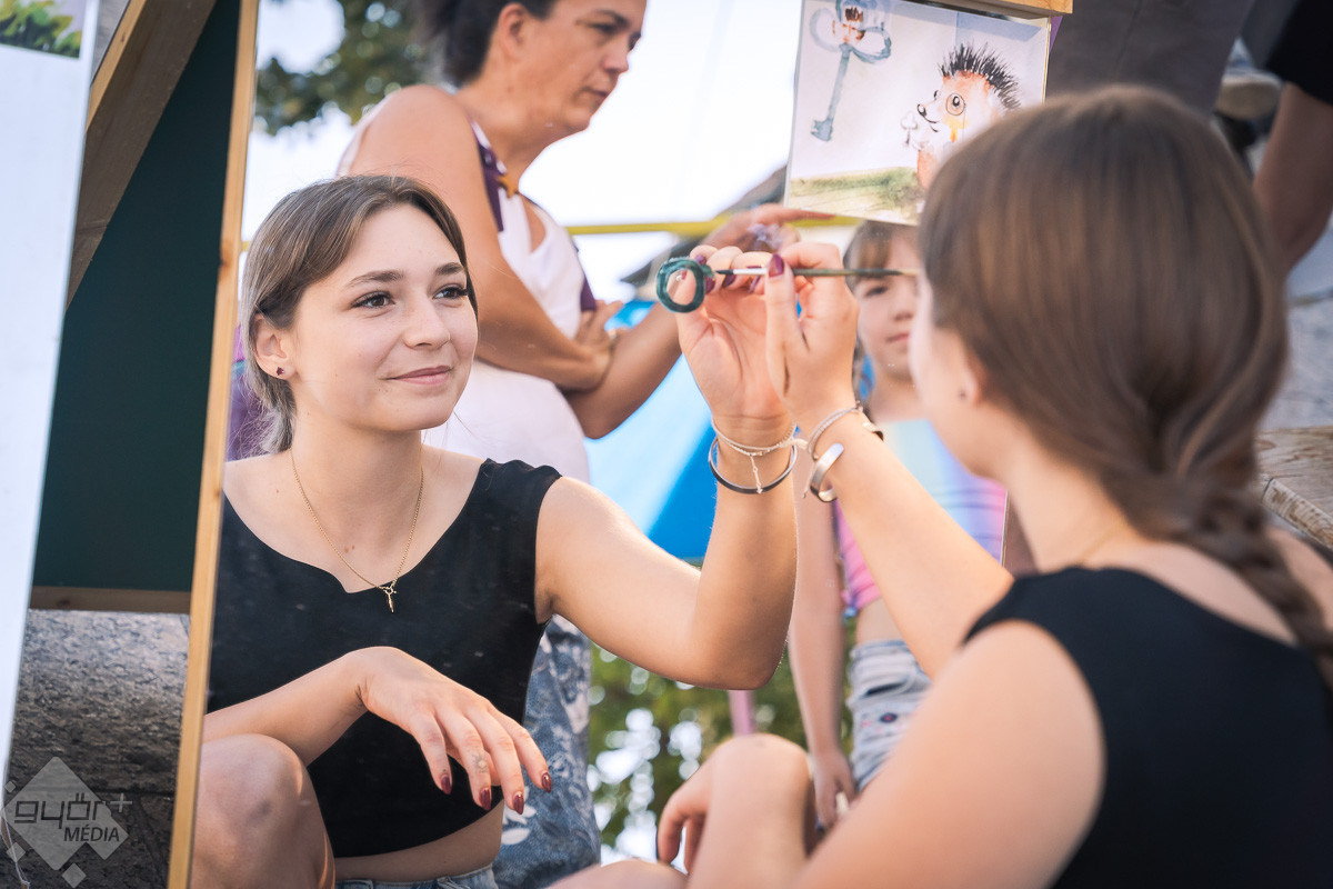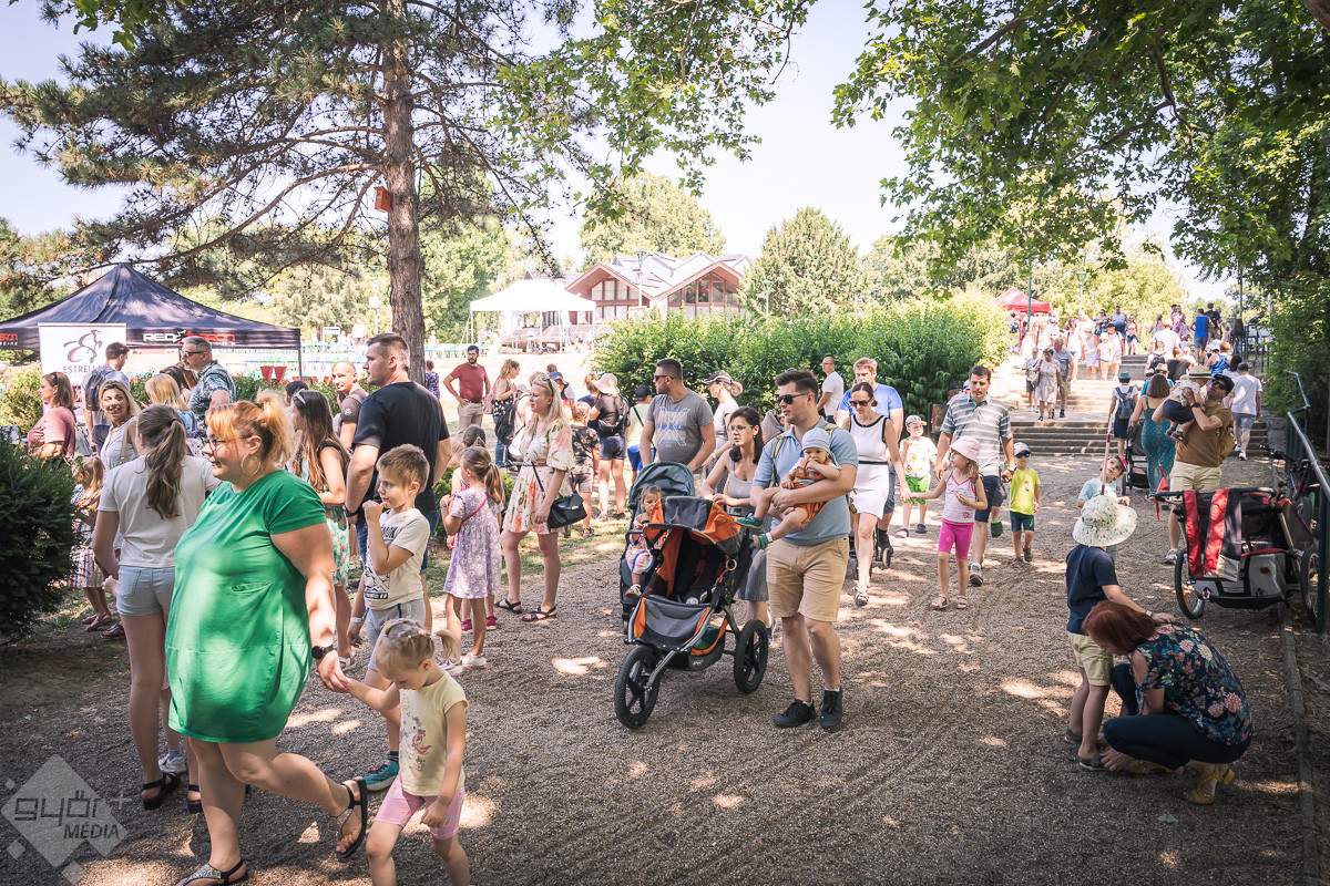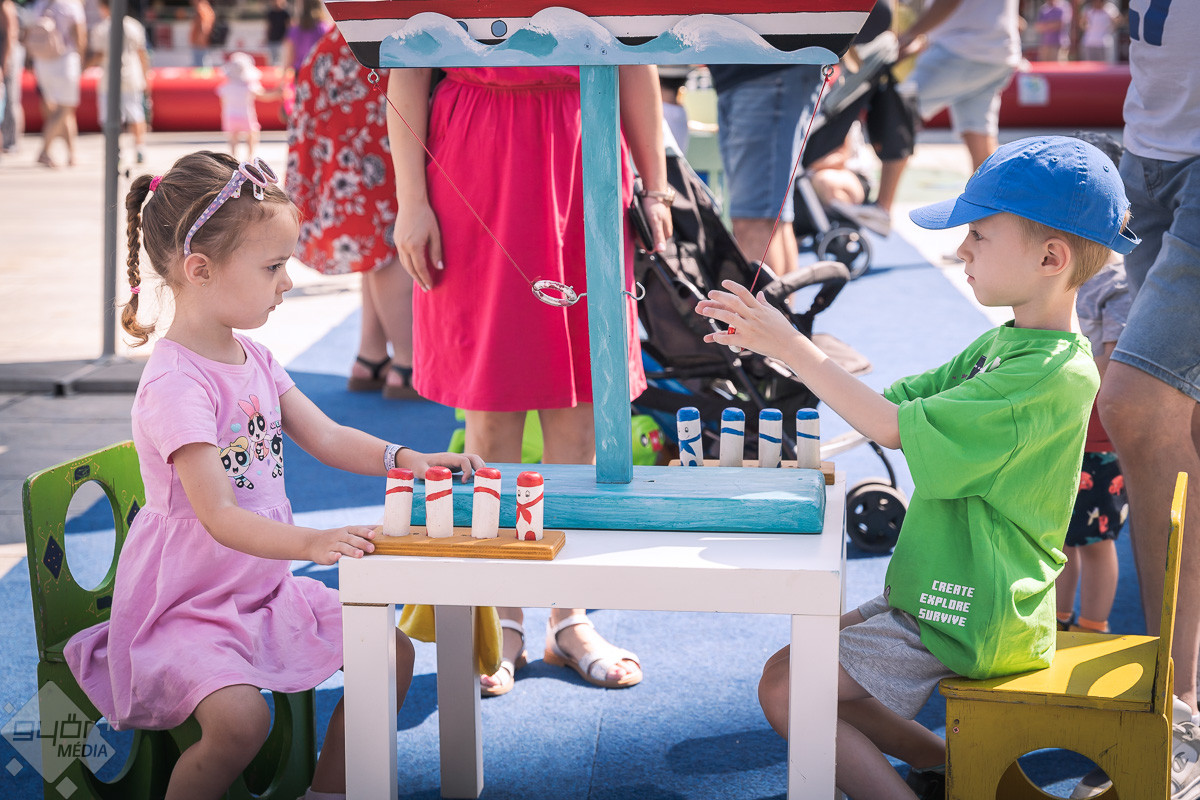 A „Varázshídon” vannak az ugrálós és társasjátékok. A Radónak a bal oldalán van a „Medenceszínpad”, mögötte a „Meseváros„ ahol előadások és még lovagi torna is található. Leghátul pedig a „Versjátszótér”, ismert költőkkel és írókkal. Nagyon fontos helyszín még a „Győrkőcfalu”, ahol a Lippentő Táncegyüttes táncházzal várja a gyerekeket, a vásártéren is előadások vannak. Velünk van a Kisalföld Népművészeti Egyesület is, akik minden évben kijönnek. Van „Babakert” és természetesen körhinta is. Egyszóval nagyon boldog vagyok, hiszen ez egy csodálatos rendezvény.” – fejtette ki a főszervező.