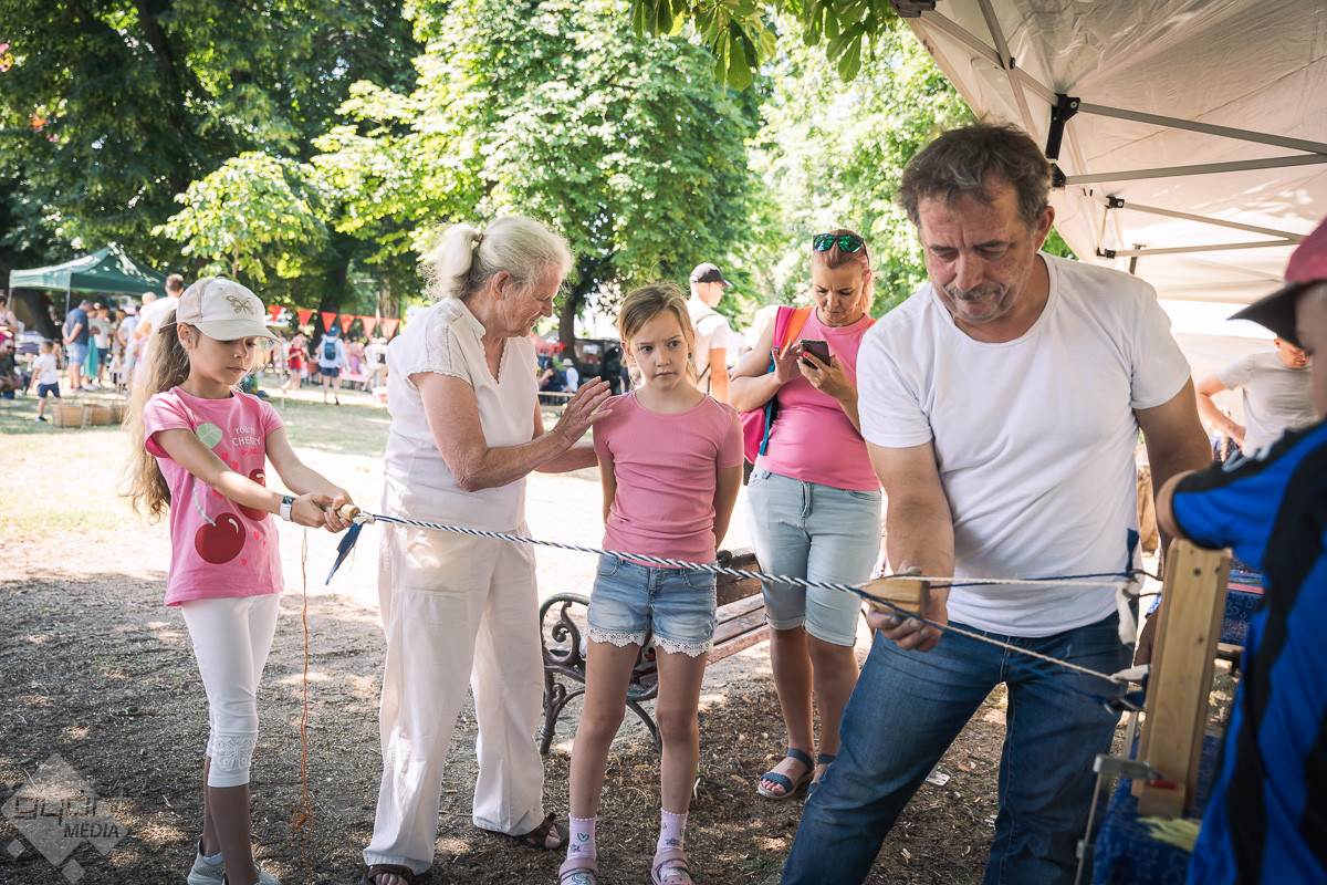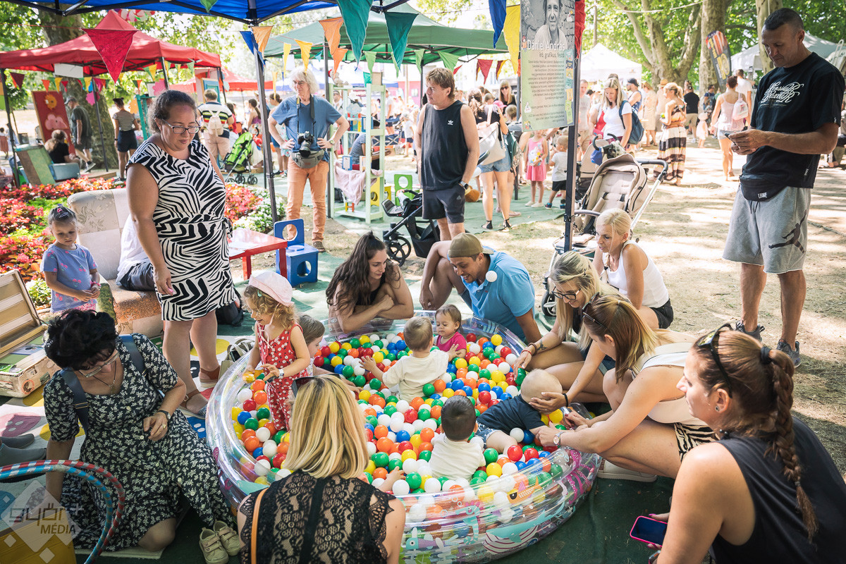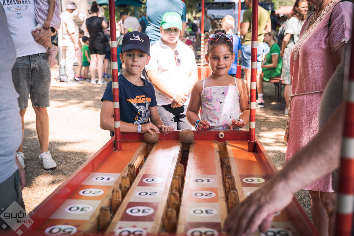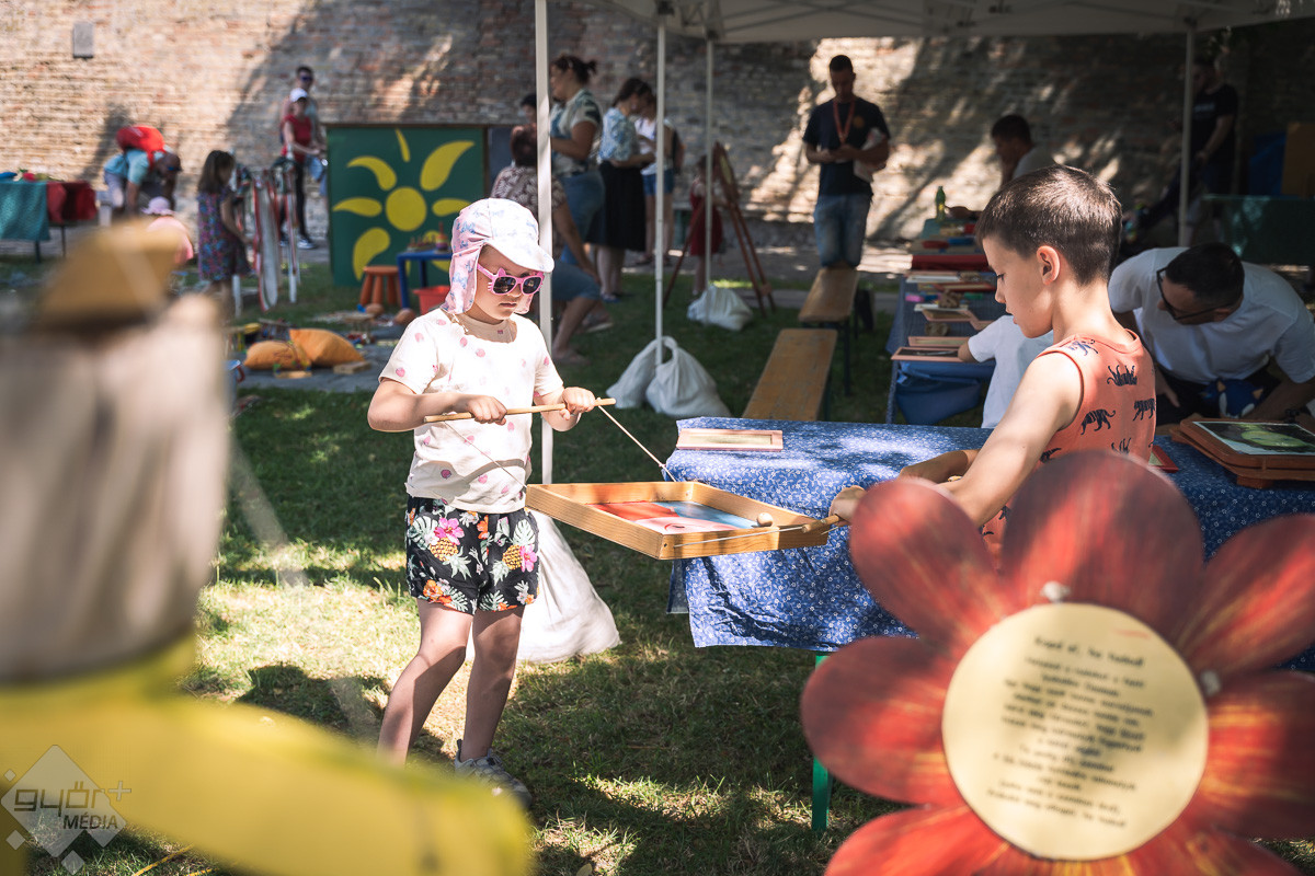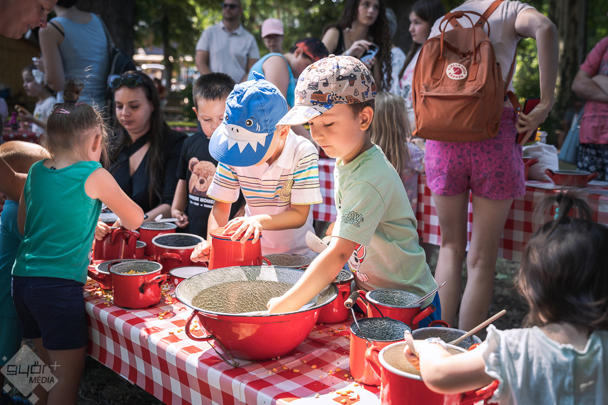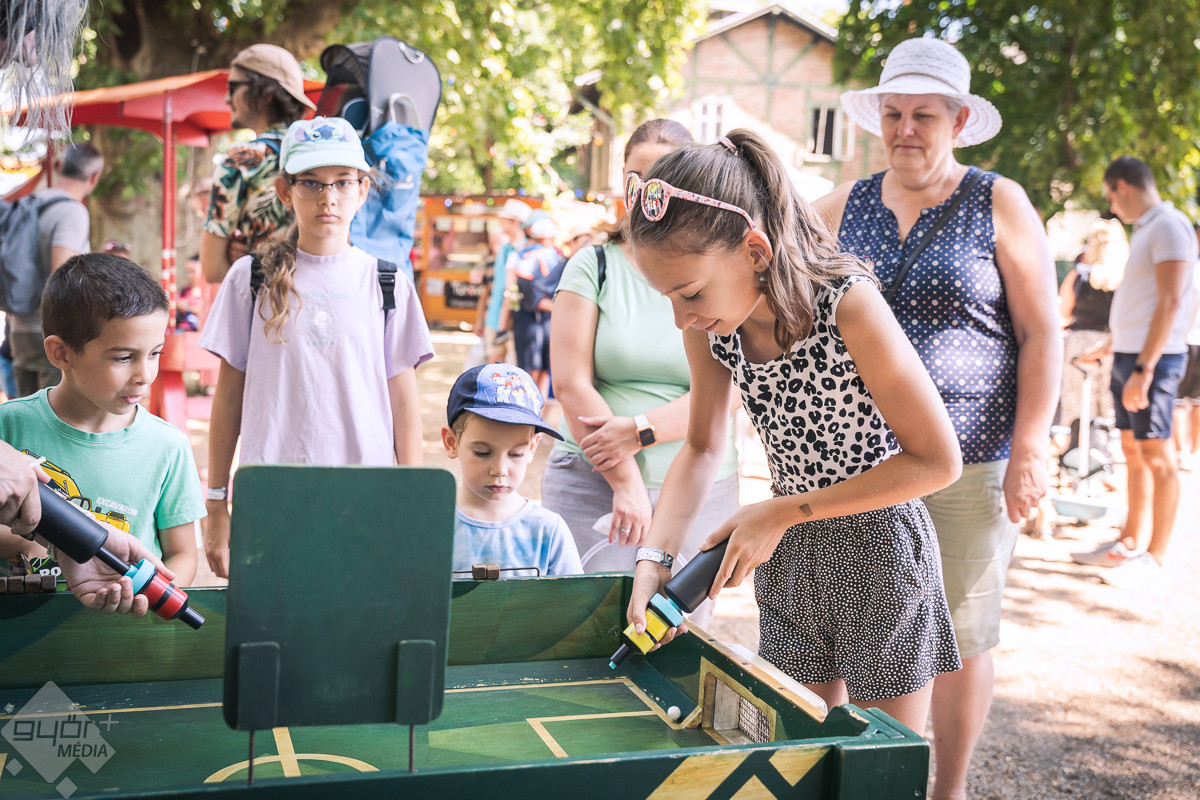 A „Varázshídon” vannak az ugrálós és társasjátékok. A Radónak a bal oldalán van a „Medenceszínpad”, mögötte a „Meseváros„ ahol előadások és még lovagi torna is található. Leghátul pedig a „Versjátszótér”, ismert költőkkel és írókkal. Nagyon fontos helyszín még a „Győrkőcfalu”, ahol a Lippentő Táncegyüttes táncházzal várja a gyerekeket, a vásártéren is előadások vannak. Velünk van a Kisalföld Népművészeti Egyesület is, akik minden évben kijönnek. Van „Babakert” és természetesen körhinta is. Egyszóval nagyon boldog vagyok, hiszen ez egy csodálatos rendezvény.” – fejtette ki a főszervező.