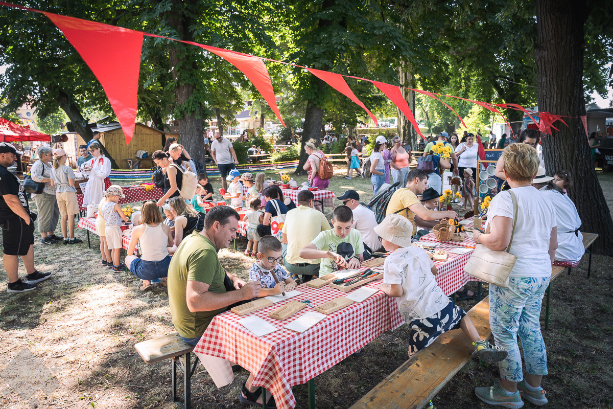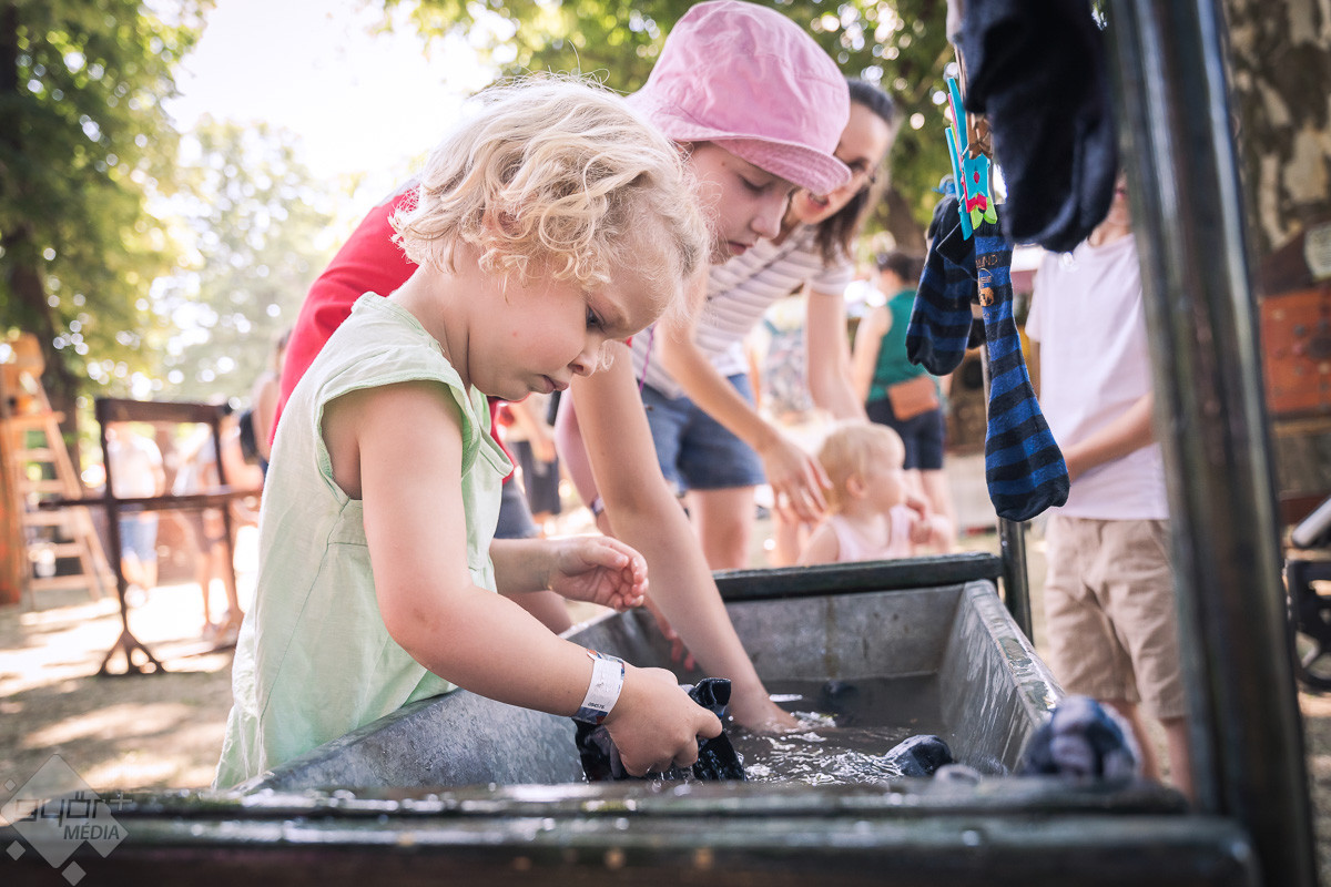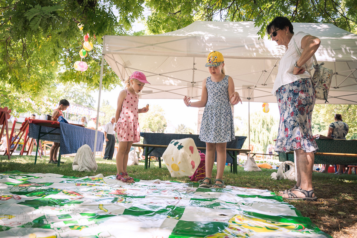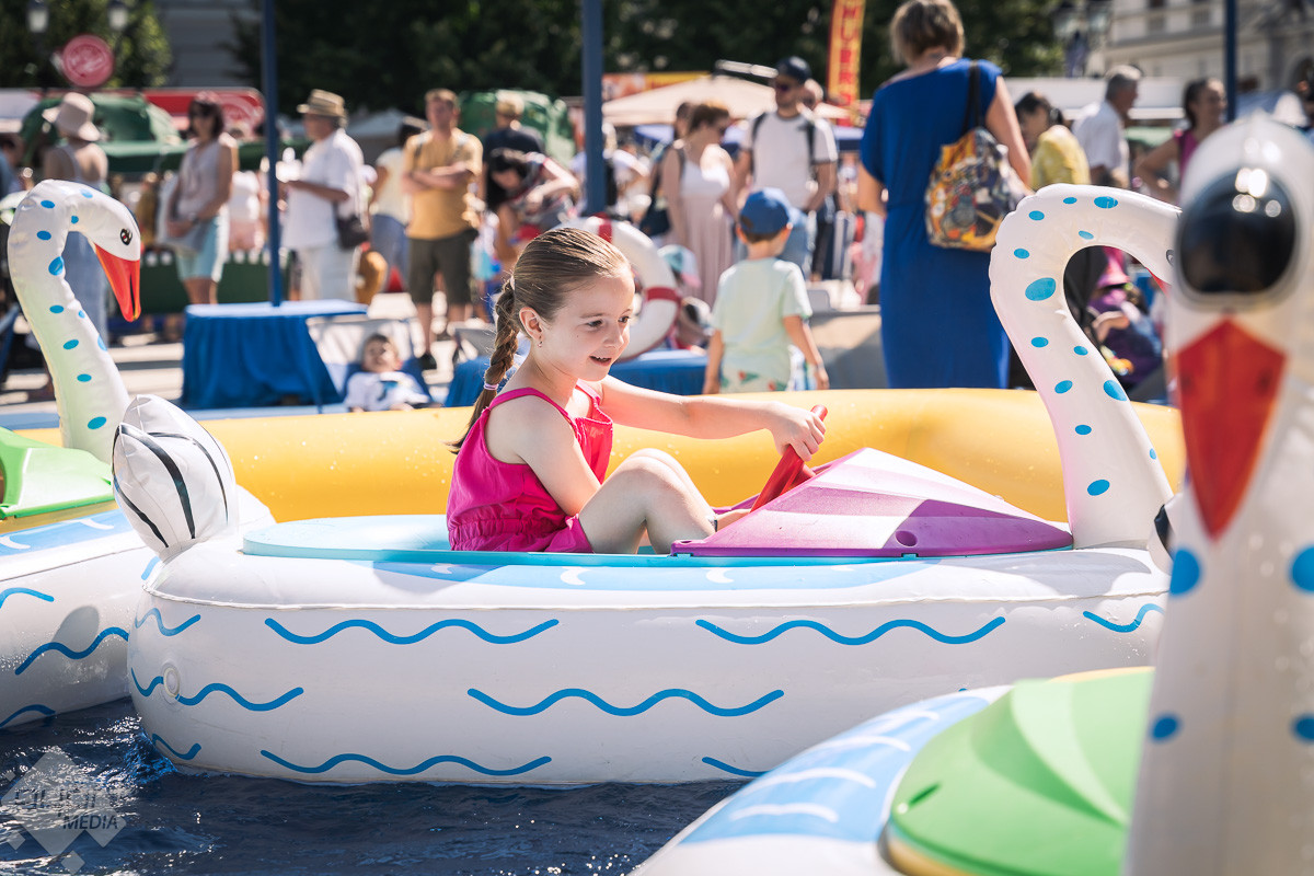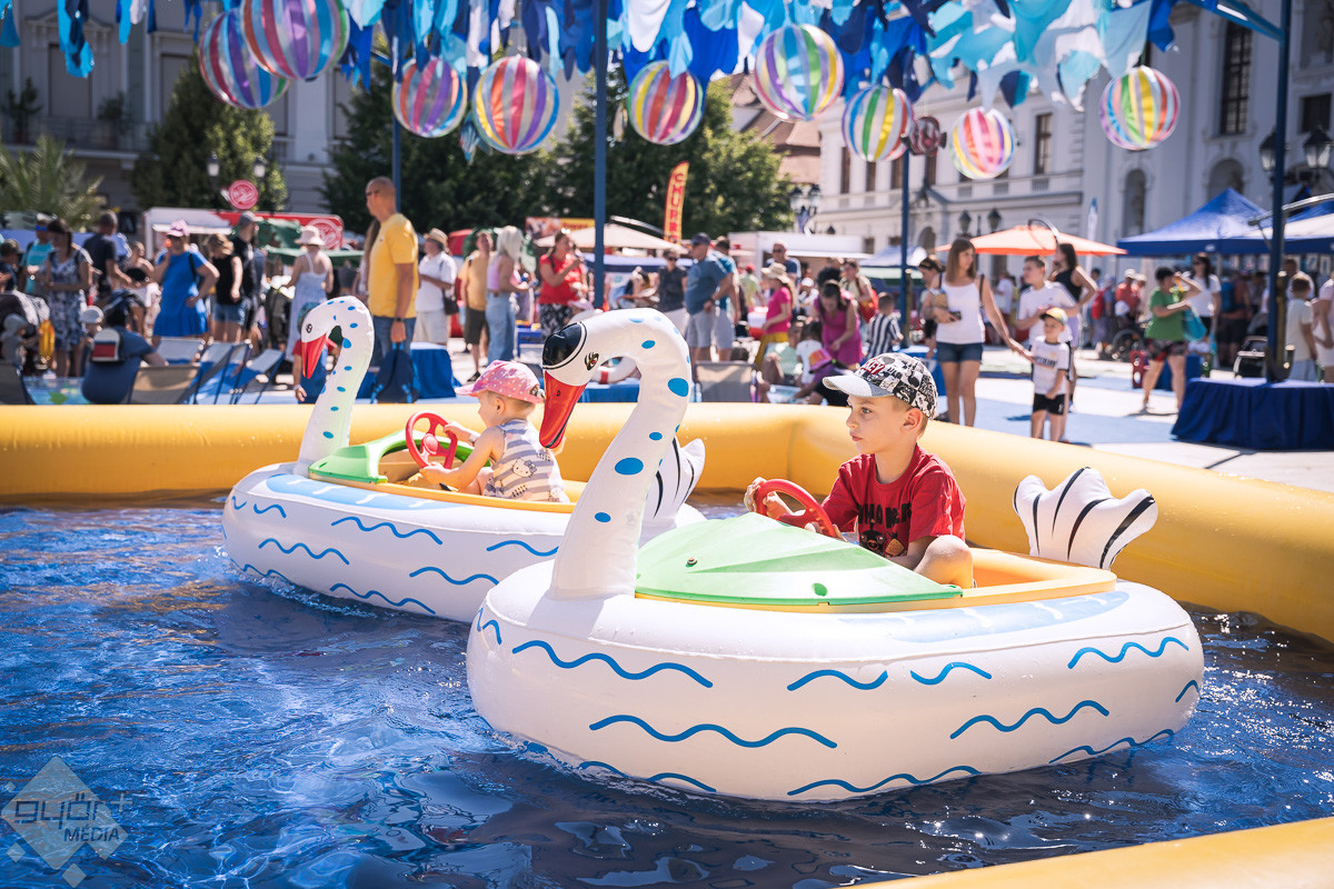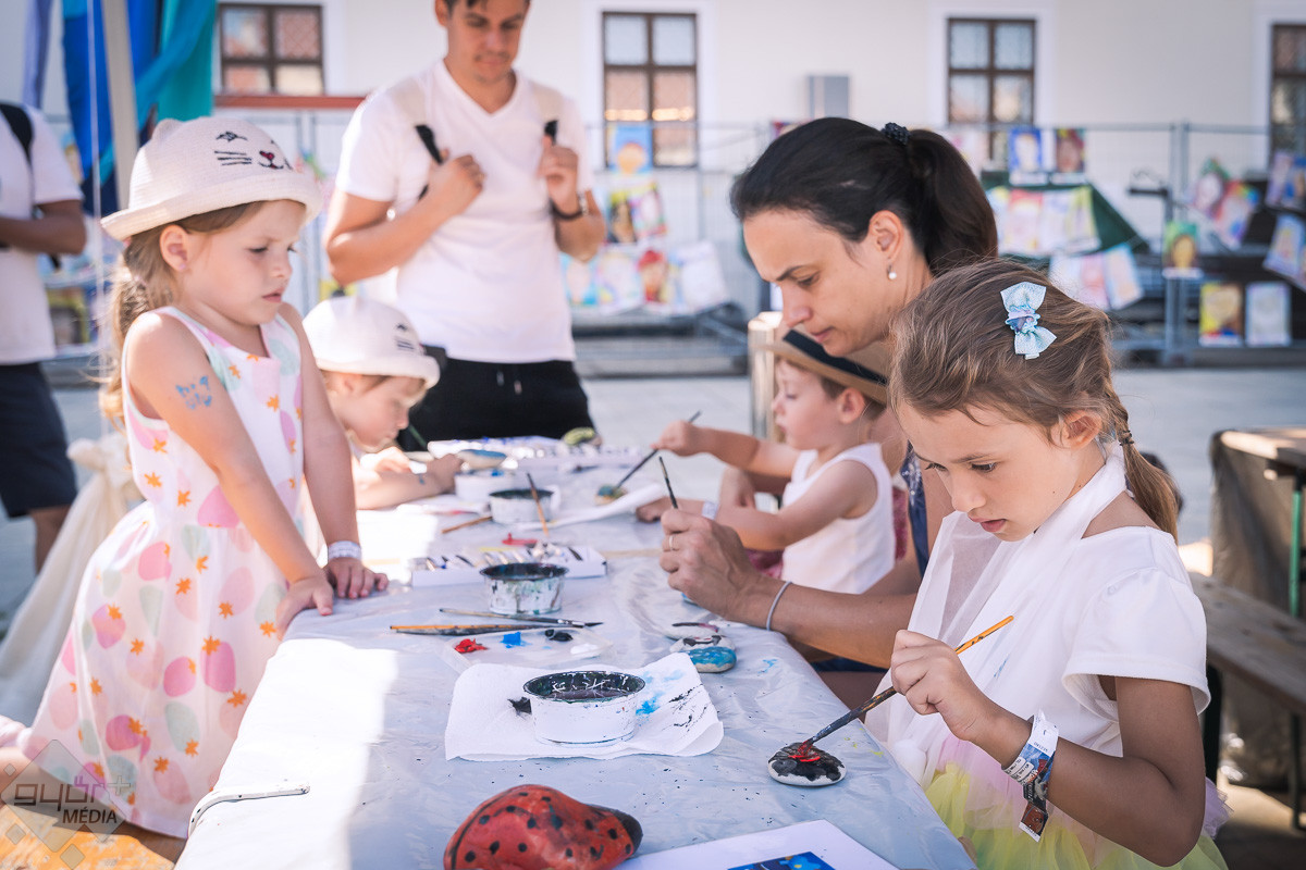 A „Varázshídon” vannak az ugrálós és társasjátékok. A Radónak a bal oldalán van a „Medenceszínpad”, mögötte a „Meseváros„ ahol előadások és még lovagi torna is található. Leghátul pedig a „Versjátszótér”, ismert költőkkel és írókkal. Nagyon fontos helyszín még a „Győrkőcfalu”, ahol a Lippentő Táncegyüttes táncházzal várja a gyerekeket, a vásártéren is előadások vannak. Velünk van a Kisalföld Népművészeti Egyesület is, akik minden évben kijönnek. Van „Babakert” és természetesen körhinta is. Egyszóval nagyon boldog vagyok, hiszen ez egy csodálatos rendezvény.” – fejtette ki a főszervező.